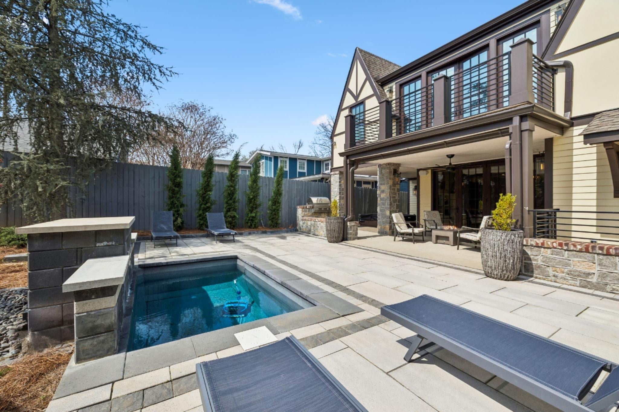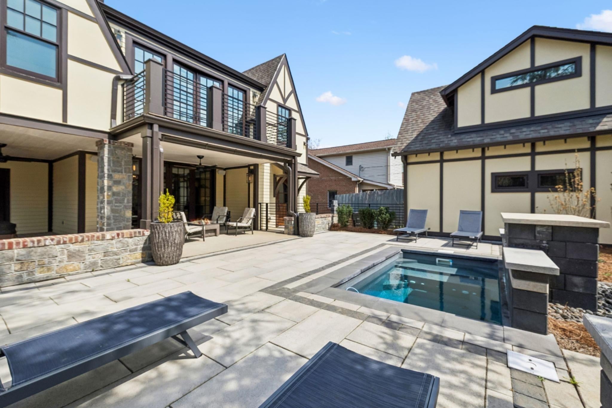 For those who value architectural significance, modern refinement, and a truly effortless lifestyle—this is the one. A masterful expression of Tudor Revival architecture, this exquisitely reimagined residence pairs timeless character with a refined, modern sensibility. Encompassing approximately 4,136SF, the home offers 5 bedrooms and 4.5 baths, thoughtfully curated for both sophisticated entertaining and effortless daily living. Sunlight pours through expansive interiors, illuminating a seamless floor plan designed with intention and flow. The chef’s kitchen serves as the heart of the home—appointed with high-performance, energy-efficient appliances, a discreet butler’s pantry, and custom NANO doors that dissolve the boundary between indoors and out. Beyond, a private outdoor sanctuary awaits, complete with a plunge pool, hot tub, and curated entertaining spaces designed for intimate gatherings or elevated evenings under the Nashville sky. The primary suite is a study in quiet luxury, offering a spa-inspired bath with heated floors and a calming, retreat-like ambiance. Integrated smart home technology, including automated window treatments, enhances both comfort and convenience throughout. Additional appointments include a statement fireplace, wet bar, generous storage, and a DADU—ideal for guests, a private office, or studio. Perfectly positioned near Vanderbilt, West End, Hillsboro Village, and Green Hills, this exceptional property offers a rare balance of architectural heritage, modern refinement, and premier location. Listed under appraised value--appraised March 2026 at $2M.