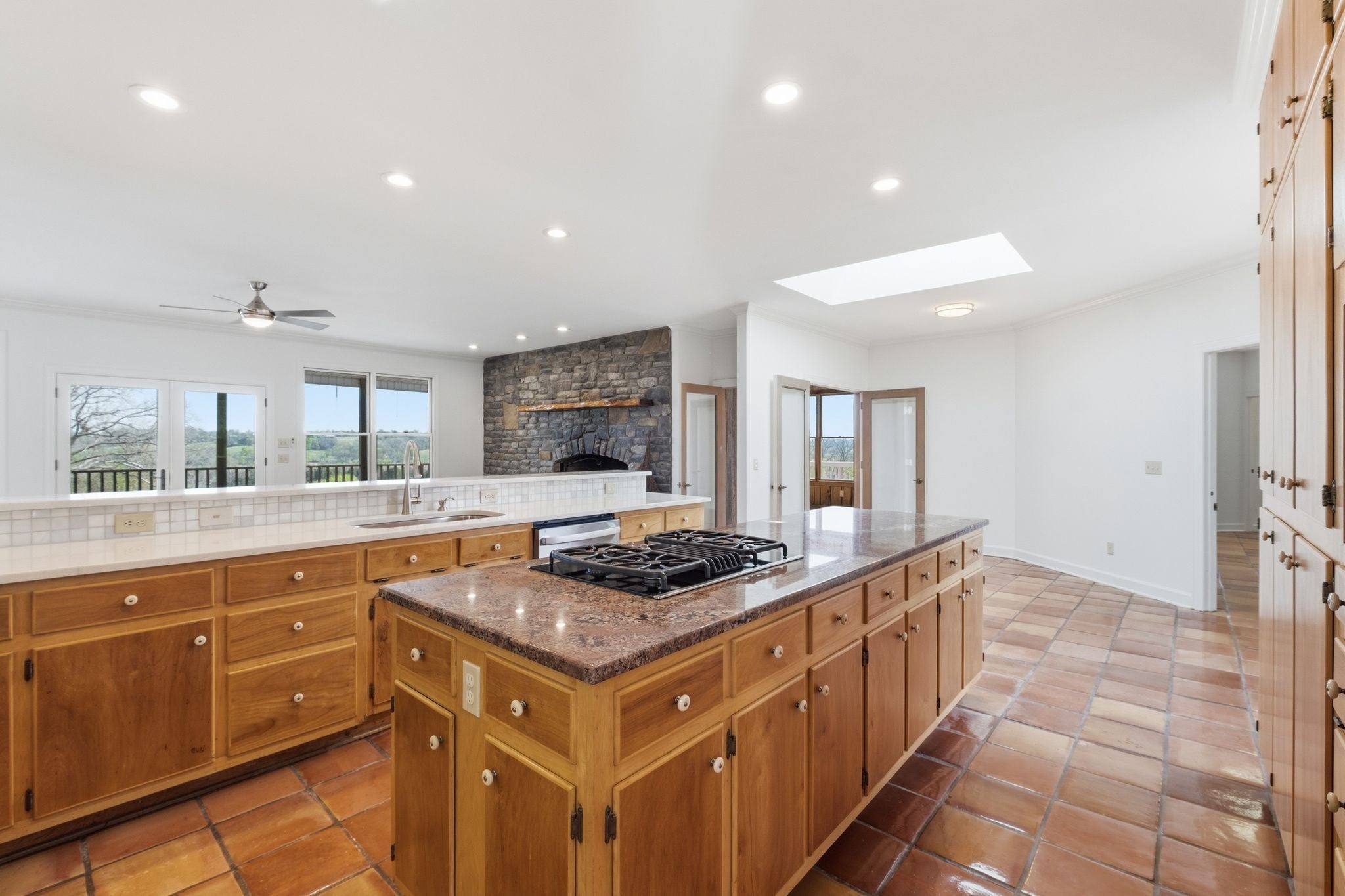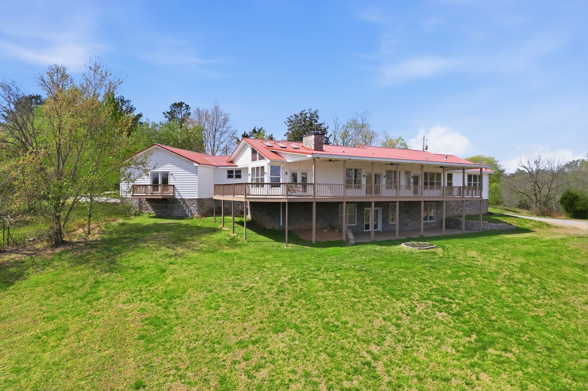 Welcome to your private retreat on 13 beautiful acres with views of the Cumberland River—offering space, functionality, and thoughtful updates throughout. This 3,973 sq ft home features 4 bedrooms, 3 full bathrooms, 1 half bathroom, 3 stone masonry fireplaces (w/ gas starters) and a 2-car garage with a versatile layout designed for everyday living and entertaining. The interior has been refreshed with brand new carpeting, updated fixtures, and new countertops in all bathrooms. The spacious floor plan includes a sunroom/library with built-in bookshelves, a formal dining area with a fold-up buffet, and an oversized primary closet with exceptional storage. The kitchen combines modern convenience with character, featuring new appliances and original wood cabinetry. A geothermal system with two units (3-ton and 5-ton) provides efficient heating and cooling while also supporting two hot water heaters. Additional features include a pass-through from the garage to the kitchen for easy grocery unloading, a central vacuum system located in the garage, and a built-in dog kennel (heated/cooled) with door to garage and separate doggie door to fenced in area. The basement offers excellent potential, already plumbed for a kitchen and complete with a separate entrance—ideal for in-law quarters, guest space, or added flexibility. Outdoor living is just as impressive with a zero-entry back porch and patio, a covered lower-level patio, and a private deck off the guest room with its own separate porch. The property has been recently improved with tree removal and fresh mulch, creating a clean and well-maintained setting. Additional highlights include 400-amp electrical service, fiber optic availability at the pole, and distinctive European/Spanish-style flooring that adds unique character. Enjoy peaceful country living with room to grow—this property truly offers a rare combination of privacy, upgrades, and versatility.