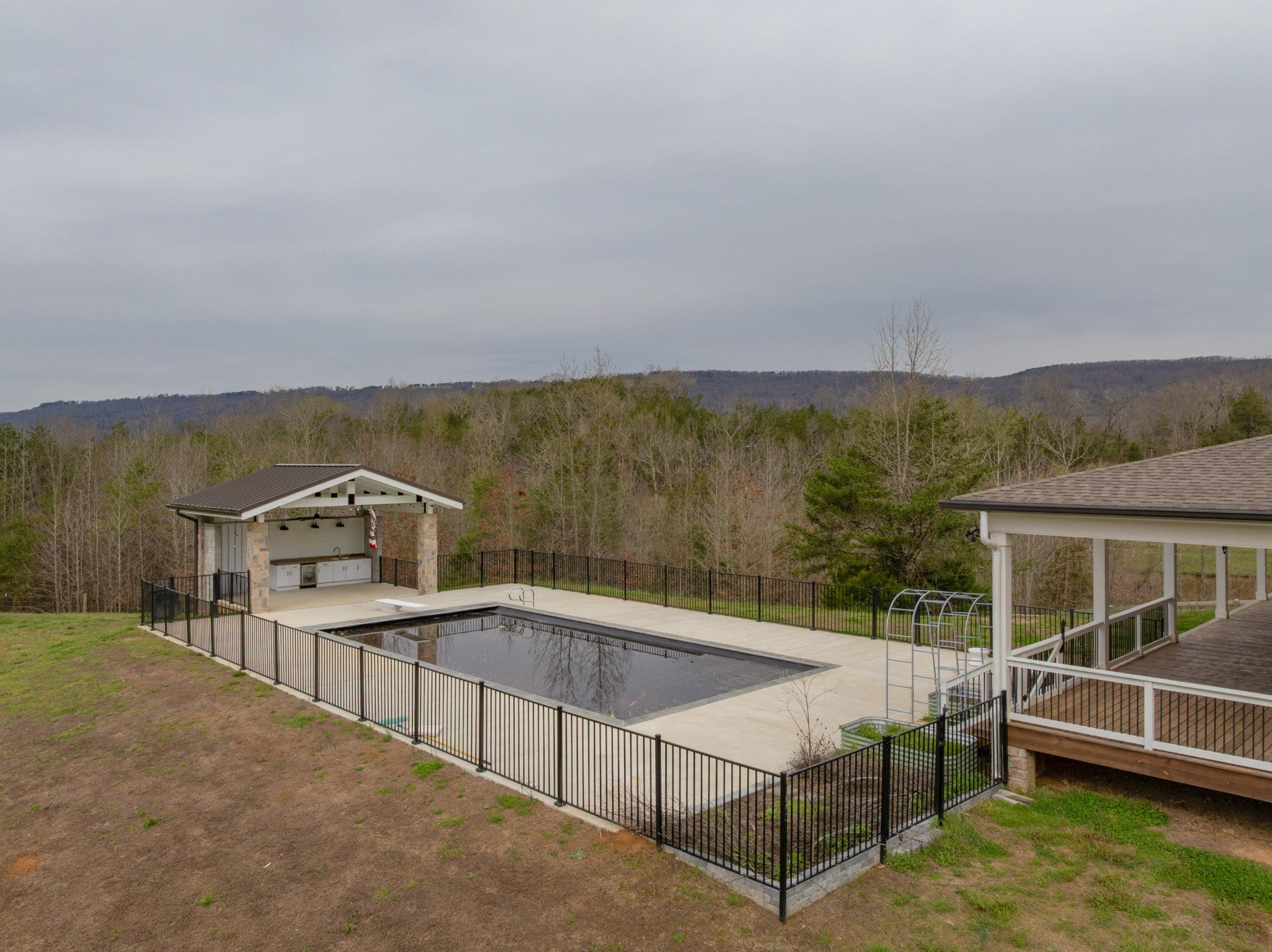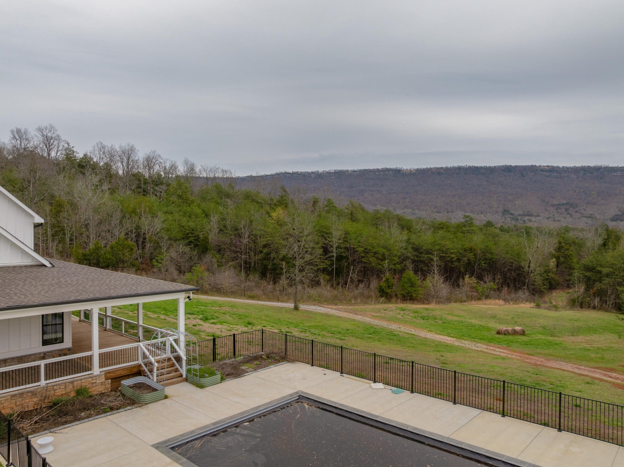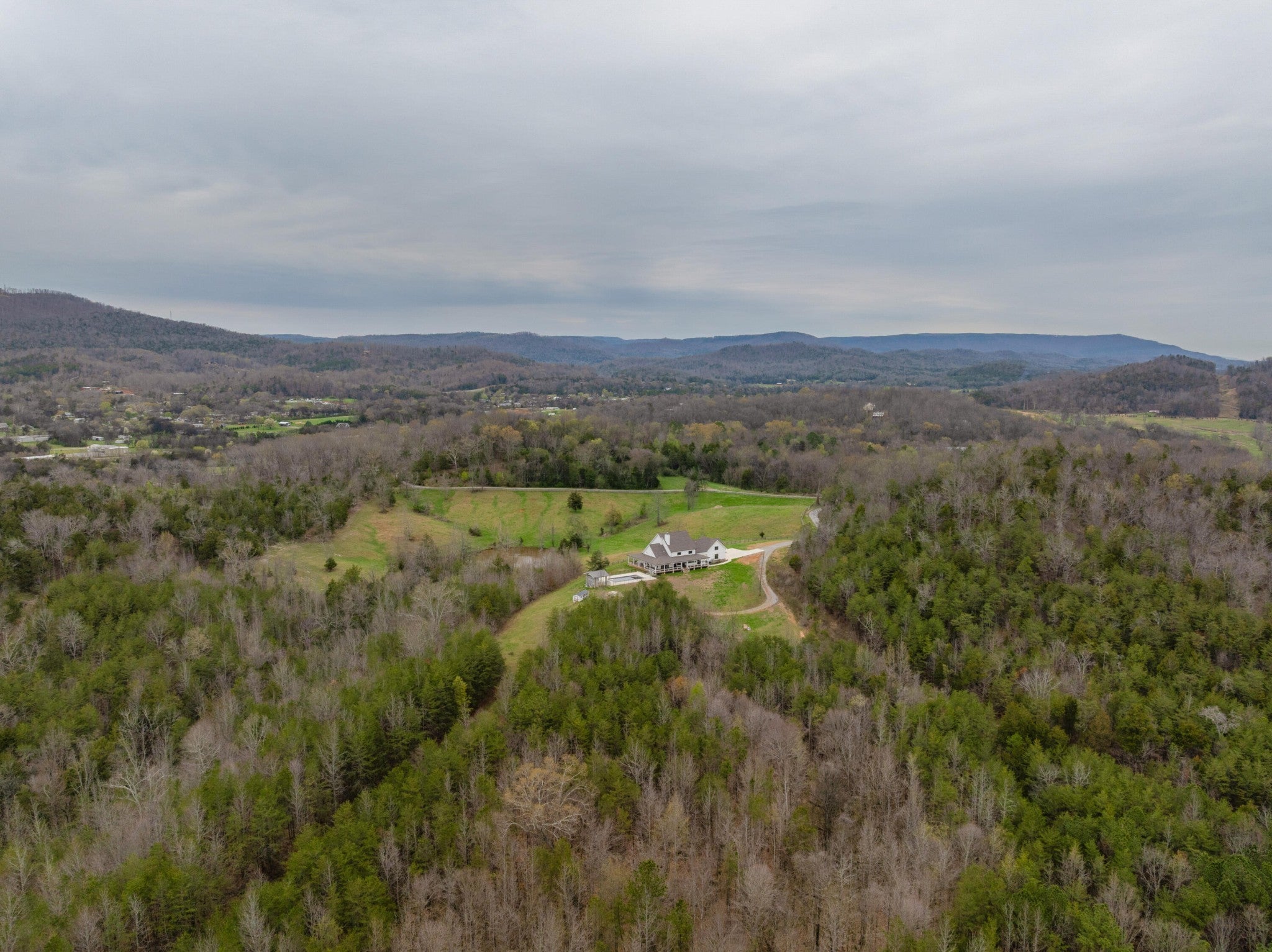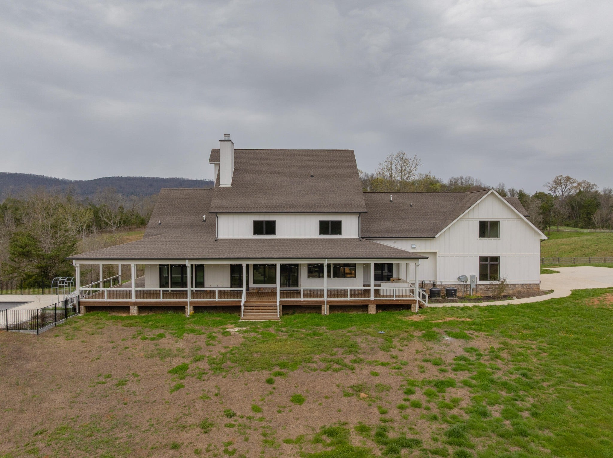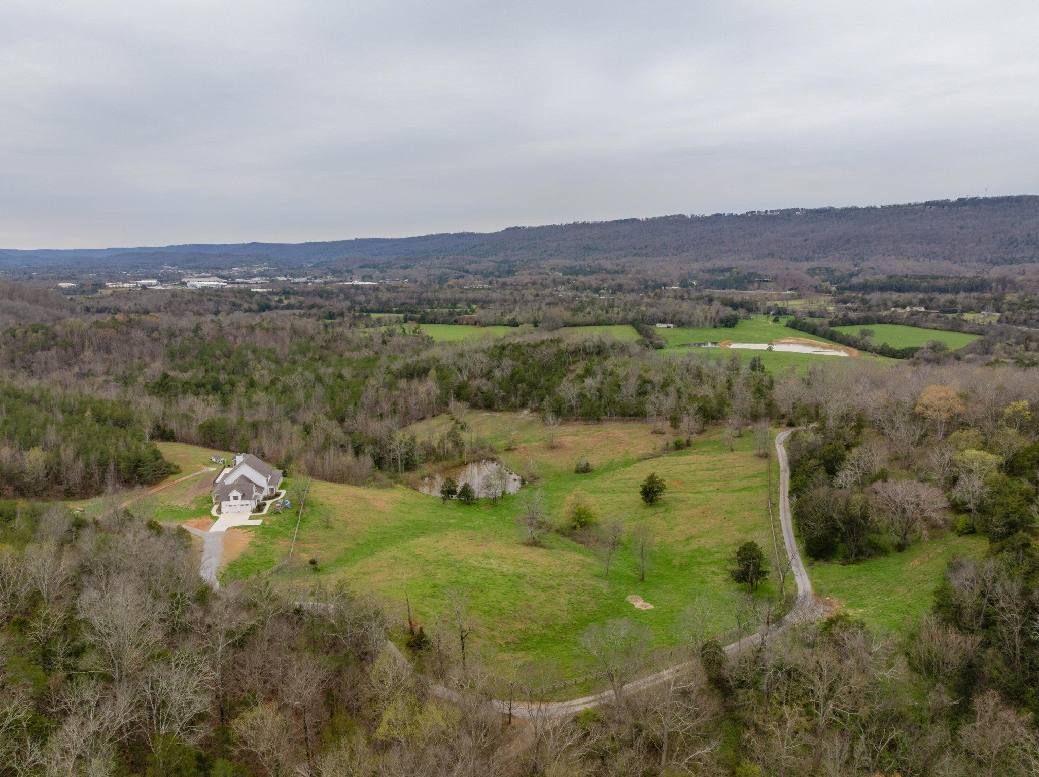 Gentleman's Farm in Wildwood, GA approximately 25 minutes from downtown Chattanooga. This gorgeous property features a custom-built modern farmhouse with a gunite pool overlooking a pond and privately positioned on 178 +/- mostly wooded acres with creeks, trails and wildlife right out your front door. This 4 or 5 bedroom, 5.5 bath home has a versatile floor plan and was well designed not only for gathering and entertaining but also to take advantage of this gorgeous setting. The home exudes exterior appeal with its Hardie and brick, and wrap-around covered porches. Inside, you will be equally delighted to find that it has just been freshly painted and boasts engineered hardwoods and tile throughout, crown moldings, spacious rooms, an open floor plan, formal and informal living spaces, 2 bedroom suites on the main, including the primary, an oversized 2-bay garage, and a separate bonus or bedroom over the garage with a private bath and 2 large closets. Your tour begins with the inviting foyer that has French doors to the office or living room on the right and opens to the dining room on the left. The heart of the home is the gourmet kitchen that has a built-in breakfast area and is open to the great room with a stacked stone fireplace and French doors to the rear covered porch. The kitchen has a center island, granite countertops, tile backsplash, custom cabinetry, under-cabinet lighting, high-end stainless appliances and access to the butler's pantry with a sink, ice maker and a walk-in pantry. The hallway to the garage has a convenient powder room, a guest bedroom with a private bath, a laundry room and a separate mudroom with built-in bench and cubbies, tons of counterspace and cabinetry and a stainless utility sink. The primary suite is on the opposite side of the house and boasts French doors to the rear covered porch, a large walk-in closet with a 2nd set of washer and dryer hook-ups and a luxurious primary bath with separate vanities, a free- standing tub, a se