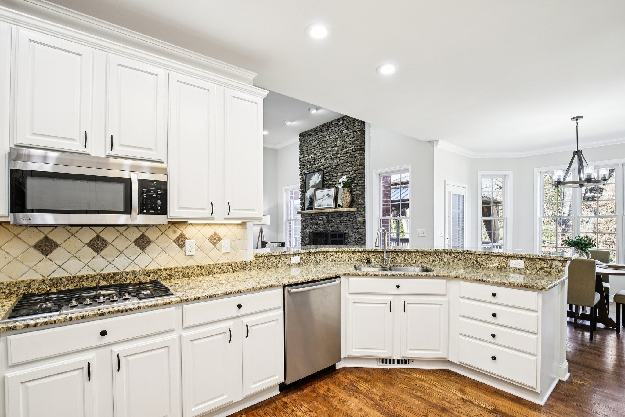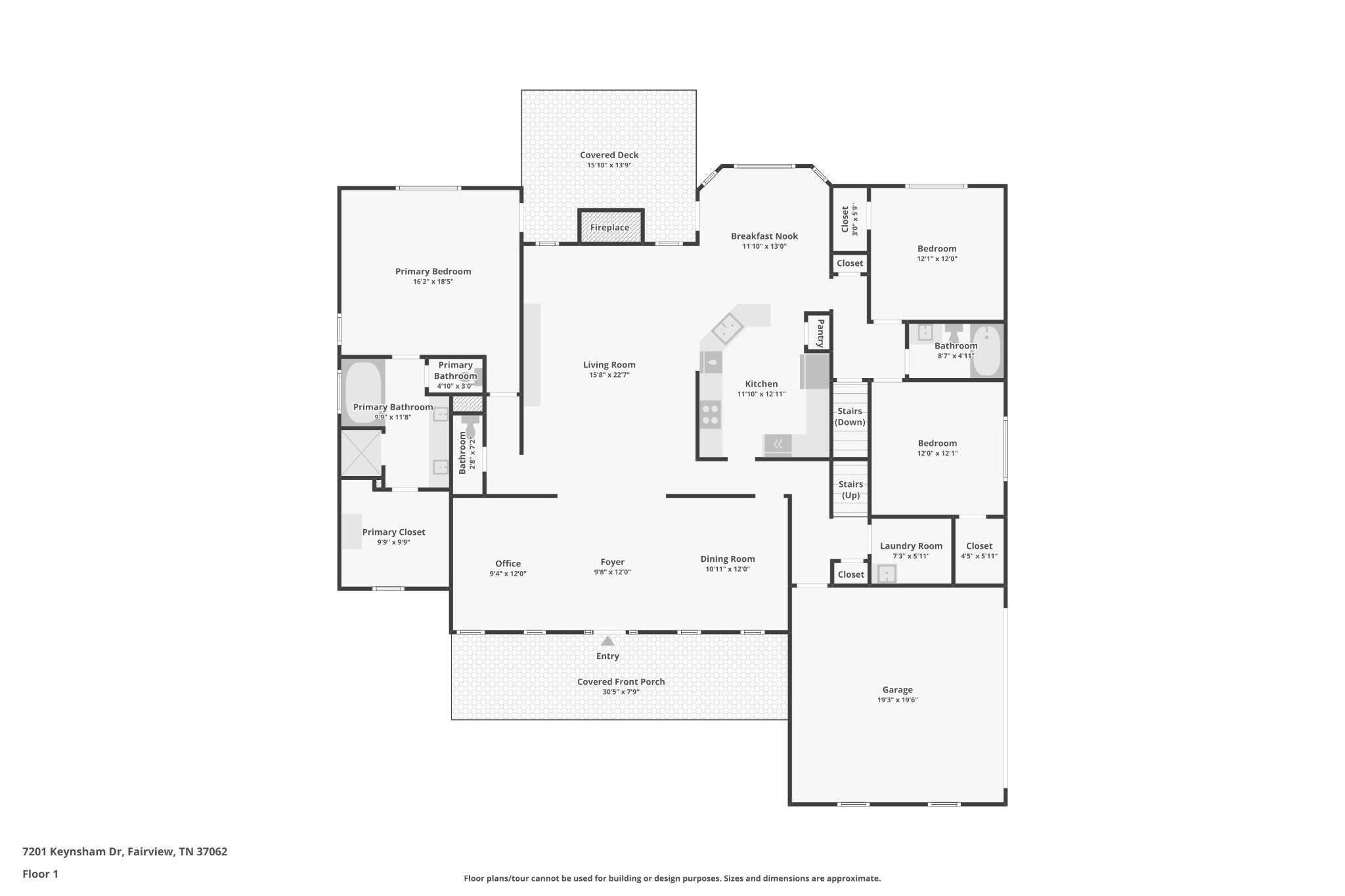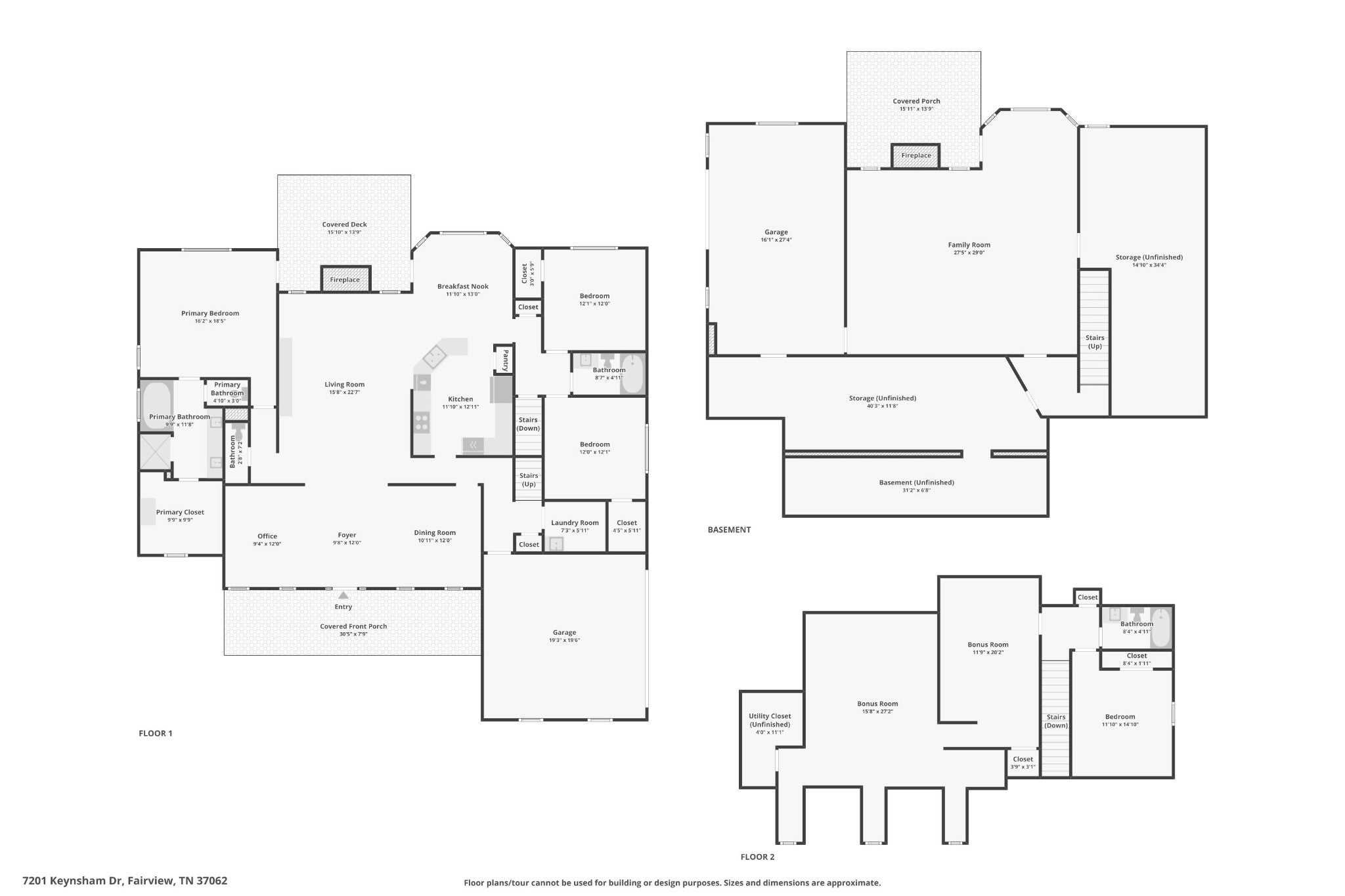 Welcome to 7201 Keynsham Drive. This stately brick home offers 4 bedrooms, 3.5 bathrooms, and an impressive 4,309 sq ft with tons of natural light and the kind of flexible space that fits every season of life. Step inside to a grand, columned entryway with a formal dining room on one side and a welcoming sitting room or dedicated home office on the other. Hardwood floors run through the main living areas with comfy carpet in the bedrooms. At the heart of the home, the kitchen shines with bright white cabinets, granite countertops, a stone backsplash, stainless steel appliances, and double ovens ready for holidays, game days, and everything in between. Gather around the stunning stone fireplace in the living room, then spread out upstairs in the huge bonus room, ideal as a teen hangout, home gym, or theater room. Downstairs, the walk out finished basement adds even more living space, complete with another impressive stone fireplace, plus plenty of unfinished basement space that can be finished to add value and build equity. When it's time to unwind, the master suite is a true retreat featuring a recessed ceiling, an oversized walk in closet with built ins, and an en suite bath with a dual vanity, a giant soaker tub, and a walk in shower with dual shower heads. Enjoy outdoor living with a covered deck off the master suite and dining room, perfect for lounging and easy entertaining. Parking is a breeze with two attached garages, two driveways, and an additional carport, giving you the space and convenience that is hard to find. This home is truly move in ready and has it all. Welcome home!