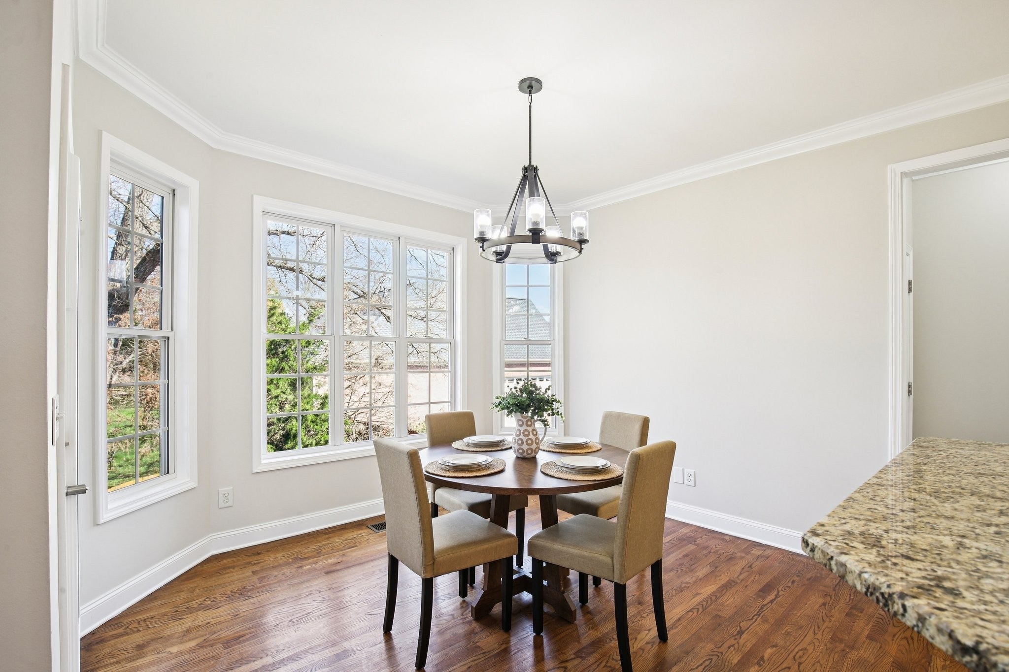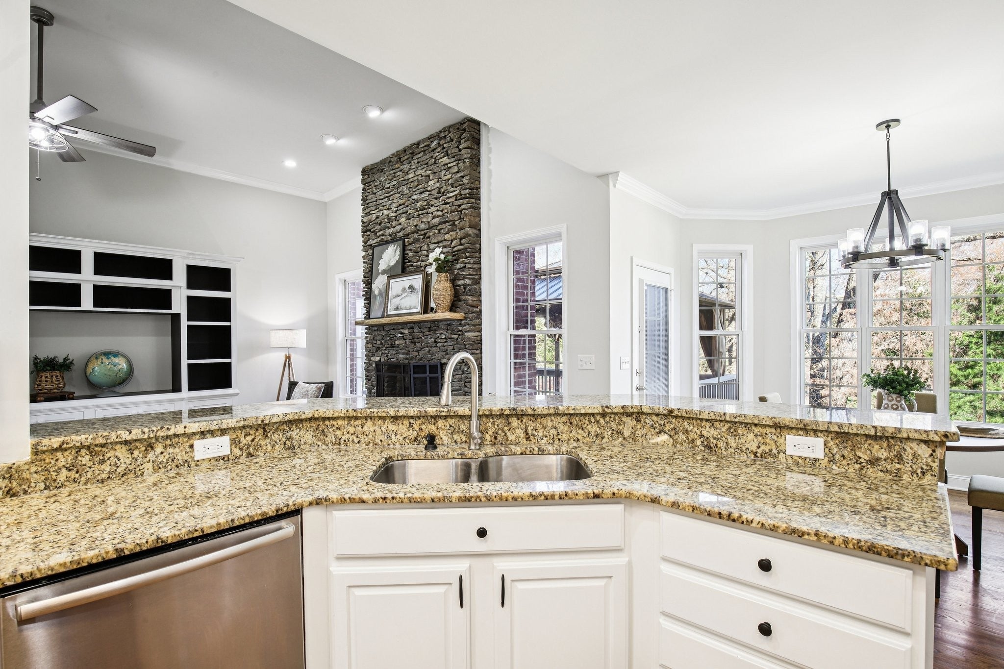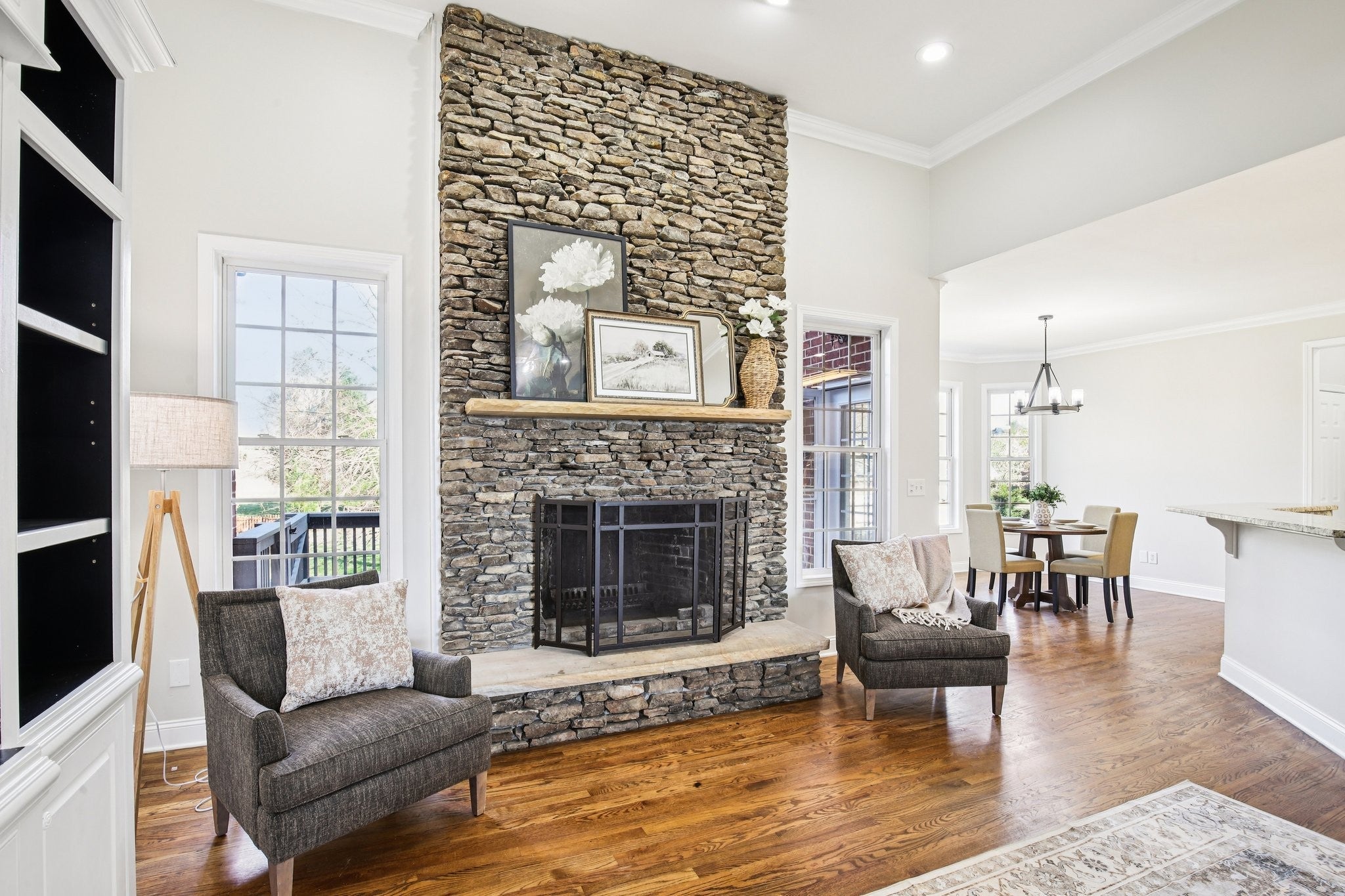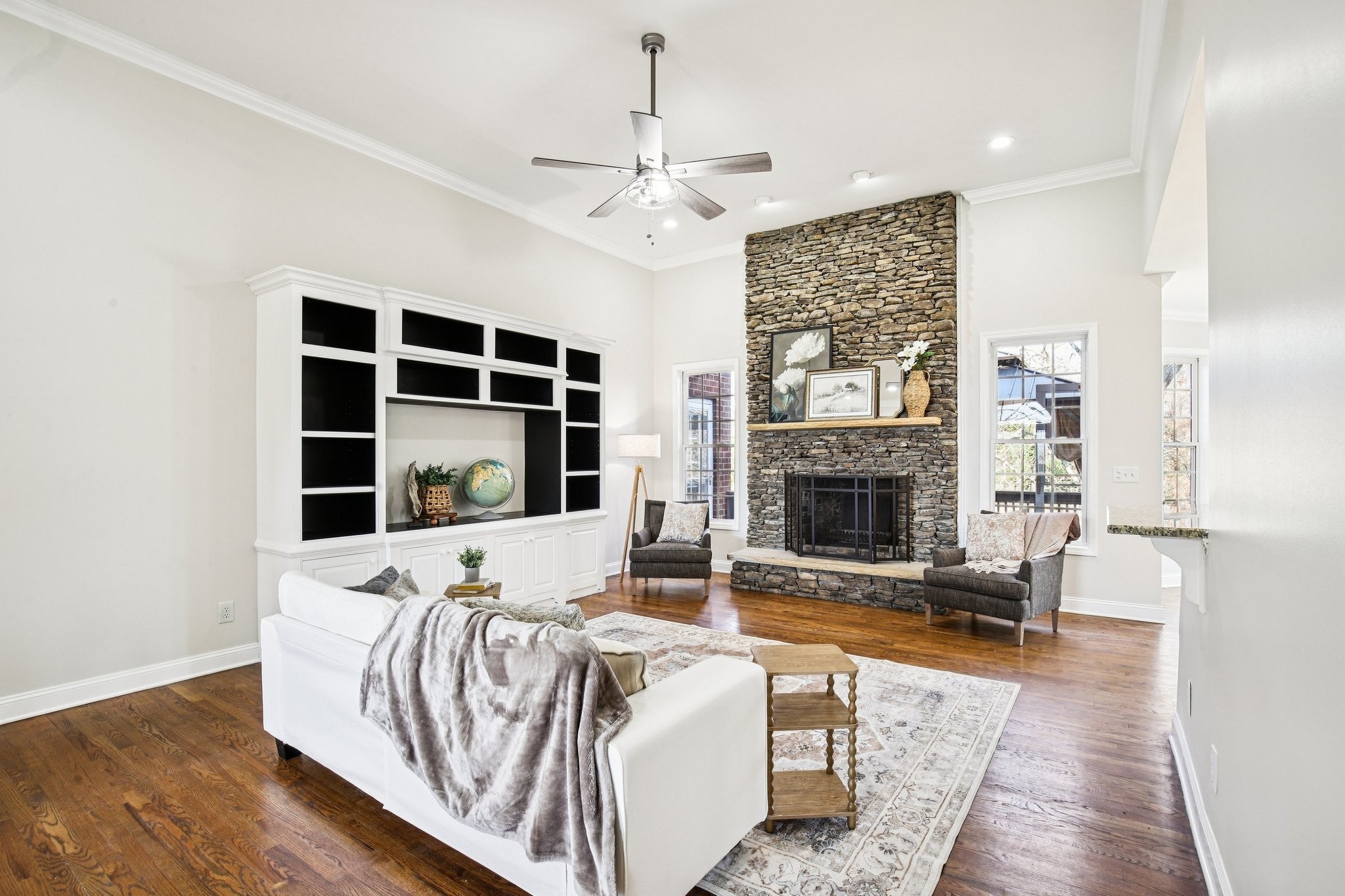 Welcome to 7201 Keynsham Drive. This stately brick home offers 4 bedrooms, 3.5 bathrooms, and an impressive 4,309 sq ft with tons of natural light and the kind of flexible space that fits every season of life. Step inside to a grand, columned entryway with a formal dining room on one side and a welcoming sitting room or dedicated home office on the other. Hardwood floors run through the main living areas with comfy carpet in the bedrooms. At the heart of the home, the kitchen shines with bright white cabinets, granite countertops, a stone backsplash, stainless steel appliances, and double ovens ready for holidays, game days, and everything in between. Gather around the stunning stone fireplace in the living room, then spread out upstairs in the huge bonus room, ideal as a teen hangout, home gym, or theater room. Downstairs, the walk out finished basement adds even more living space, complete with another impressive stone fireplace, plus plenty of unfinished basement space that can be finished to add value and build equity. When it's time to unwind, the master suite is a true retreat featuring a recessed ceiling, an oversized walk in closet with built ins, and an en suite bath with a dual vanity, a giant soaker tub, and a walk in shower with dual shower heads. Enjoy outdoor living with a covered deck off the master suite and dining room, perfect for lounging and easy entertaining. Parking is a breeze with two attached garages, two driveways, and an additional carport, giving you the space and convenience that is hard to find. This home is truly move in ready and has it all. Welcome home!