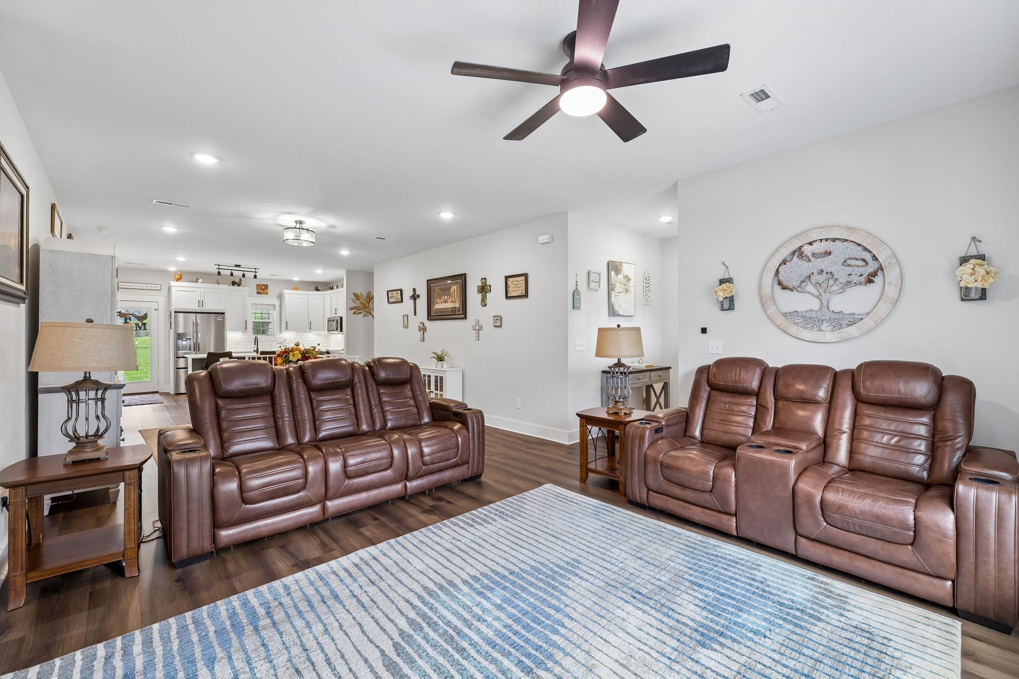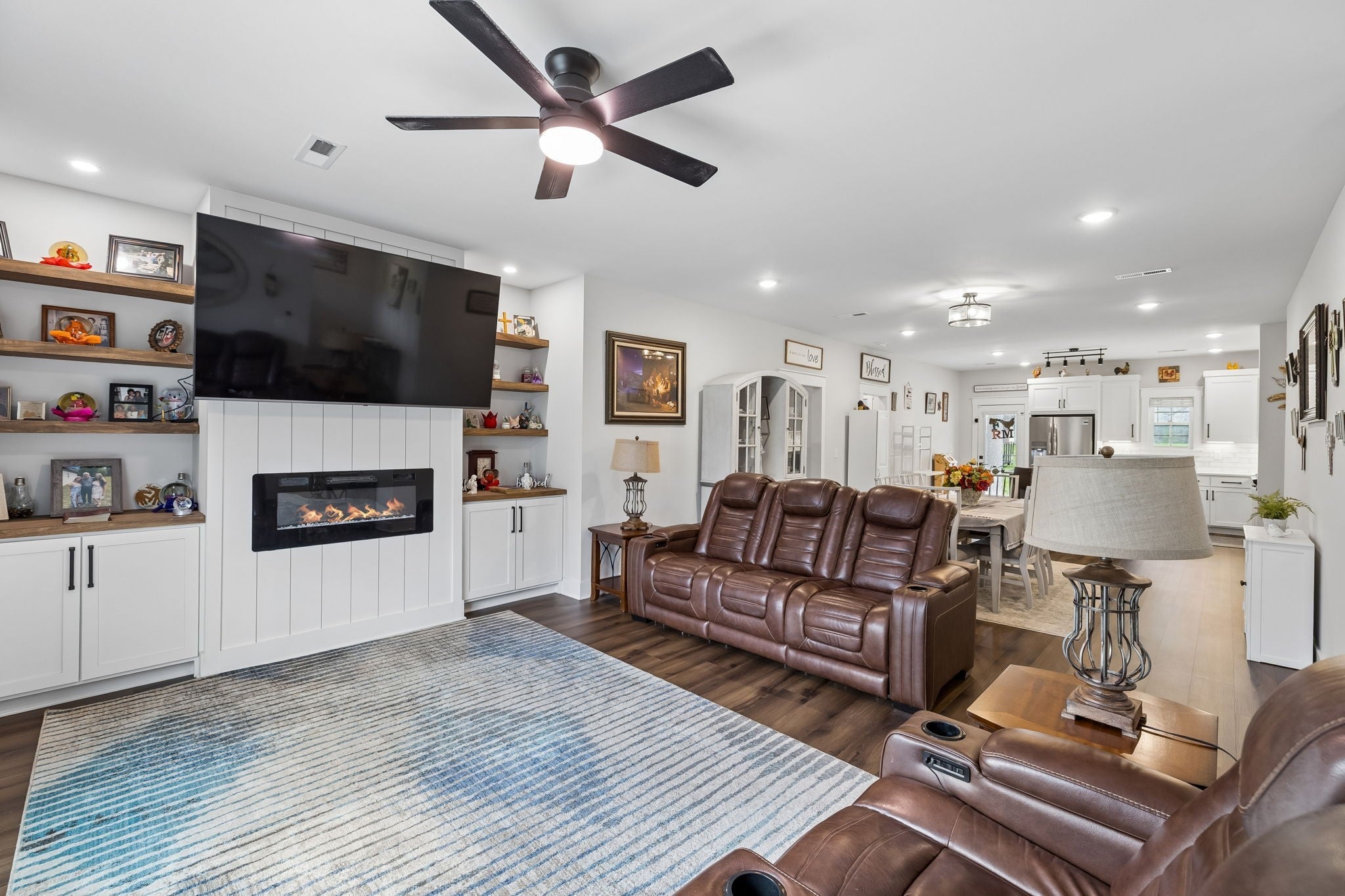Welcome to this beautifully designed home that truly offers the best of both worlds—privacy and convenience, just minutes from the heart of Tullahoma. Tucked away with no close-by neighbors, this is one of those properties that just feels peaceful the second you pull in. Inside, the layout is both functional and easy to live in, with all bedrooms on the main level, 9-foot ceilings, and an open-concept design filled with natural light. The living room is such a standout space, featuring a cozy fireplace and custom built-in bookshelves that add so much character, all flowing seamlessly into the dining area and kitchen. The kitchen is set up perfectly for both everyday living and entertaining, with a large island, quartz countertops throughout, custom cabinetry, tile backsplash, stainless steel appliances, and a spacious walk-in pantry. The primary suite feels like its own retreat with vaulted ceilings and a spacious bathroom complete with double vanities, a tile shower, private water closet, and a large walk-in closet. You’ll also love the LVP flooring in the main areas, walk-in attic storage, and covered front and back porches that give you great space to relax or entertain. The fully fenced backyard is perfect for pets, and the extended concrete pad gives you extra parking or the option to add a detached garage or carport down the road. With a mostly brick exterior, side-entry 2-car garage, tons of windows bringing in natural light, and a setting that doesn’t feel cookie-cutter—this home really does stand out. Schedule your private showing today and be sure to ask about the 1% credit toward closing costs when using the preferred lender.