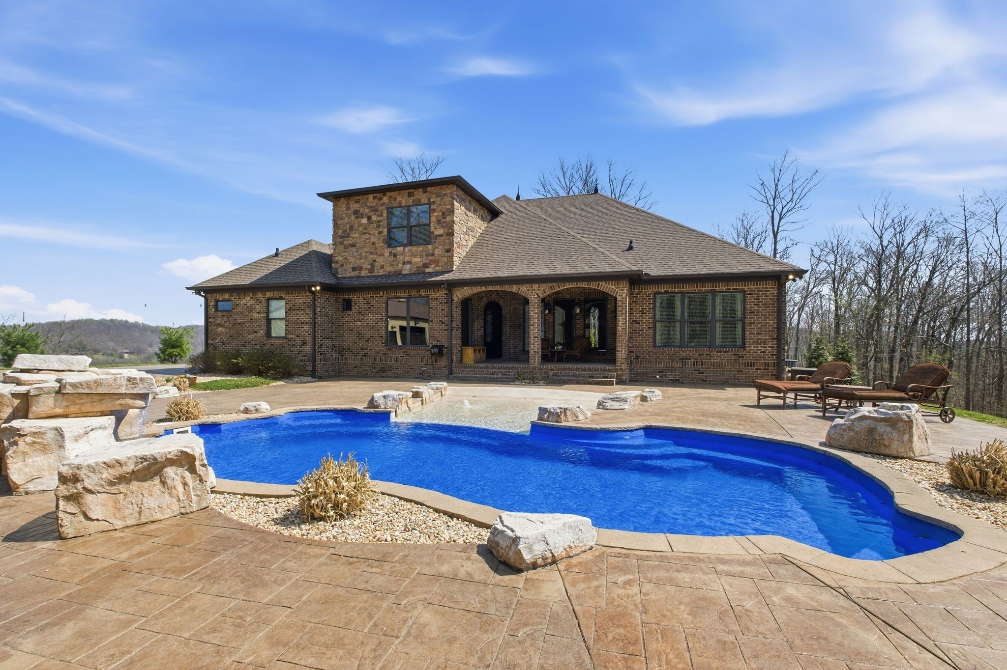 Escape to your private paradise on 10+ breathtaking acres, where luxury meets tranquility in this exceptionally crafted estate. A meandering concrete drive leads through mature trees and past your private pond before opening to reveal this stunning all-brick custom home. The solid iron doors welcome you into a thoughtfully designed main-level living layout featuring 4 bedrooms + private study. The chef’s kitchen is equipped with a new Wolf range and opens to warm, inviting living spaces accented by wood beams, gold leaf detailing, Brazilian teak hardwoods, and copper sinks—each element curated for a one-of-a-kind finish. The primary suite offers a true retreat w/ a copper soaking tub, oversized walk-in shower & expansive walk-in closet. Upstairs, enjoy a spacious bonus room, walk-in attic, and a hidden safe room discreetly tucked behind the bookshelf. This home includes smart automation lighting, whole-home generator, & a full water filtration and softener system. Car enthusiasts will appreciate the attached 3-car garage w/ Racedeck flooring and an impressive 3-car detached, climate-controlled shop complete with a private office/ gym. Outdoors, indulge in your own resort-style oasis featuring a heated saltwater pool w/ a beach ledge, a covered pavilion with an outdoor kitchen, and a fireplace—perfect for entertaining or unwinding in total privacy. All of this, just minutes from the heart of Hendersonville and a short drive to downtown Nashville. Inquire for full list of upgrades and features. 1% lender credit with use of preferred lender. Interior photos to come