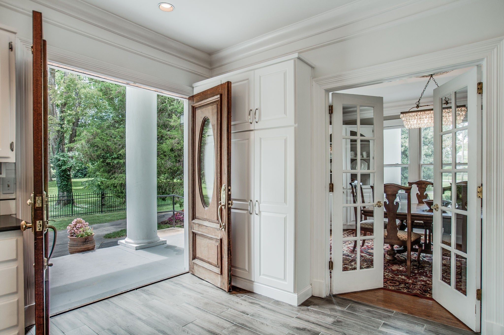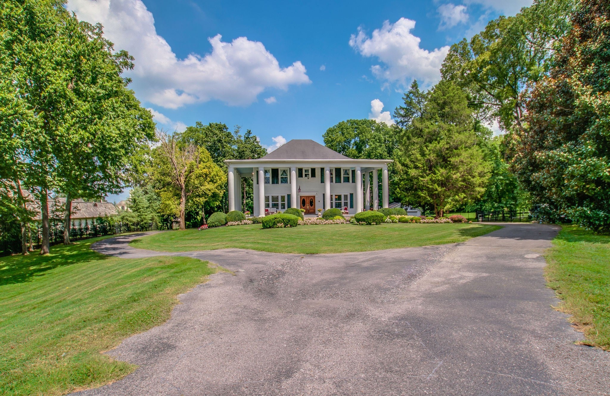 Experience the grandeur of a bygone era with this stately 1922 Colonial estate, perfectly situated on a sprawling 1.88-acre level lot in the heart of Oak Hill. The exterior is a masterclass in classic architecture, featuring a grand pillared facade and an expansive, manicured front lawn. With over 5,700 square feet of living space, the residence retains its original soul with soaring ceilings, intricate crown molding, and formal rooms that provide a magnificent canvas for a luxury restoration. The home offers generous proportions throughout, headlined by a massive primary suite that includes a separate sitting area and an incredible, oversized walk-in closet with custom built-in shelving. This is a rare opportunity to restore a historic landmark on one of Nashville’s most prestigious corridors. The truly exceptional feature of this property is the spectacular backyard oasis. Step out onto an incredible, deep covered back porch that spans the length of the home, creating the ultimate setting for outdoor living. This space is beautifully finished with white tongue-and-groove ceilings and dual cooling fans, all accessible through multiple sets of classic French doors. The porch overlooks a massive, tree-lined level yard and a pristine in ground swimming pool, complete with a broad sun shelf and a wide concrete surround perfect for lounging and poolside dining. This property also includes a detached two car garage and a finished basement, offering the space and character required for a premier legacy renovation.