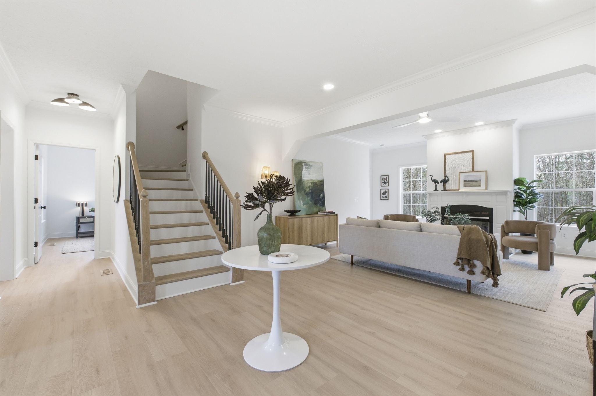 Beautifully renovated home on a quiet cul-de-sac sitting on 2.3 acres! Very private lot that backs up to a wooded tree line- Open floor plan with a fireplace and lots of natural lighting, 3 bedrooms on the main floor including the master. High end finishes throughout with all new luxury LVP flooring, custom master closet shelving, quartz kitchen countertops, HVAC and ductwork, tile, inside/outside paint, lighting/plumbing fixtures & vanities, gutters, Frigidaire stainless steel appliances, water heater, and much more. No HOA and a two car garage with plenty of parking- welcome home!