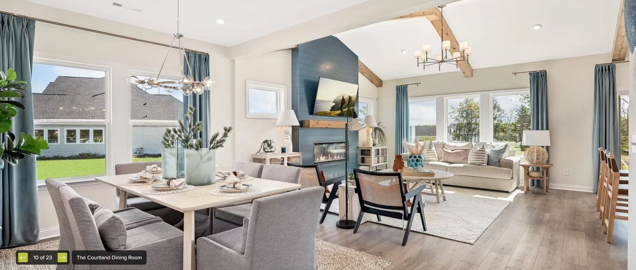 NEW DREES Community. Courtland Plan 4 beds, 3 baths. 2 Car Side Entry Garage with Optional 3 Car. KITCHEN.42" Kitchen Cabinets with crown molding. Quartz Countertops, Tile Backsplash, Combo Microwave and Wall Oven. Gas Cooktop. Under Cabinet Lighting, Soft Close doors and drawers, Kitchen Pendant Pre-wires, Wood Pantry Shelving. PRIMARY Primary suite with ceramic tile shower glass door and oversized drop in tub w/ceramic tile and wood closet shelving. SECONDARY baths have ceramic tile and quartz countertops, tile bath surrounds and elongated comfort height commodes. FLOORING Mohawk Revwood Flooring in main living areas, Tile in baths and laundry and carpet in bedroom. EXTERIOR 8' Stained wood front door, fully sodded yards with landscape package, covered rear porches and broom finished drives and sidewalk. ADDITIONAL FEATURES Hardwood Stairs with spindles or iron balusters, Tankless Water Heater, Lighting/Electrical Allowance. Smart Thermostats. Zwave lock and video doorbell. Capped wireless access point pre-wire. Sealed and conditioned crawl space with insulated foundation walls.