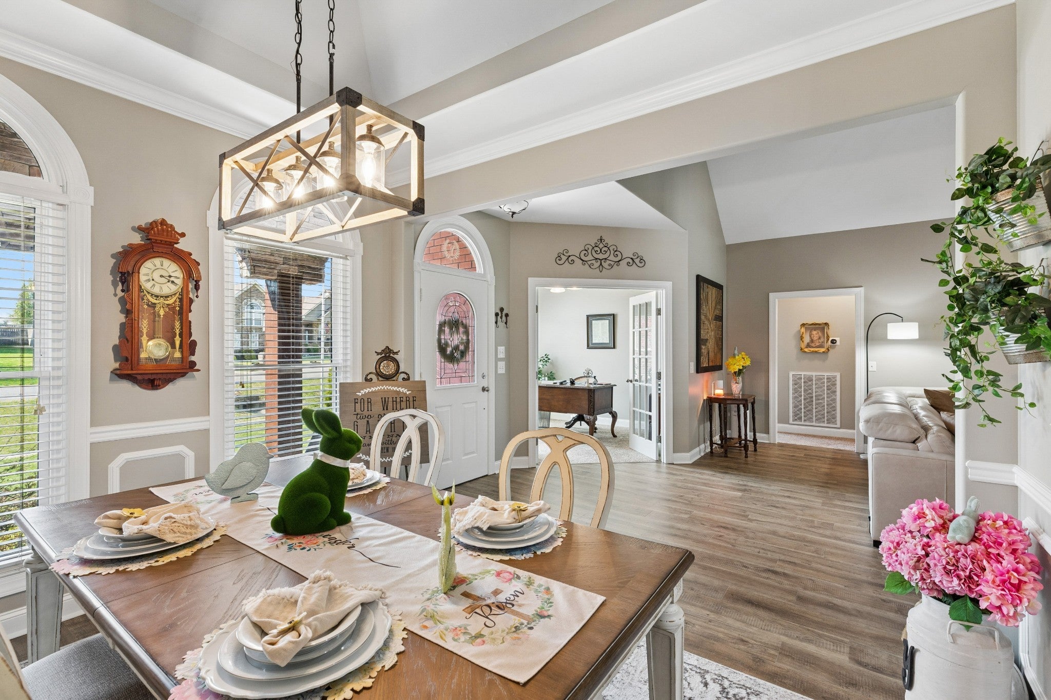 ** Meticulously Maintained, Renovated with Upgrades Galore, 1 Level Living & Move in Ready ** 4 Car Garage - A Car Lover's or Hobbyist's Dream, 3 BR, 2 Full BA, 2 Half BA, 2854 Sq. Ft., Office/4th BR, Formal Dining Room, Bonus Room & Outdoor Living on 1.89 AC. All Kitchen Appliances Stay inc. Refrigerator. Private & Peaceful with An Abundance of Natural Light! Next to 5 AC of Common Area on Right Side of House. Enjoy Your Morning Coffee or Evening Cocktails on your Serene Front Porch & Screened in Backyard Oasis. Perfect Blend of Tranquility & Luxury. **NEW** Roof 2 yr, LVP 1 yr, Windows 3 yr w/Transferable Warranty, Wall & Trim Paint 2 yr, 2 HVAC's 6 yr, Nest Thermostats, Stainless Steel Appliances w/Double Dishwasher, Backsplash & Granite Countertops, Painted Kitchen Cabinets w/Under Cabinet Lighting, Island Shiplap, Faucet & Soap Dispenser 5 yr, 20x30 Detached 2 Car Garage/Workshop w/Pedestrian Door, Attic Storage, Electric & Heat on 30x30 Pad & Extended Driveway 5 yr. Extended Screened Deck w/Shade Pull Downs, Electric Fireplace & Barnwood Accent Wall 7 yr, Water Heater/Softener 1.5 yr, Septic System 5 yr, Front Porch Stone & Fiberglass Columns 5 yr., Ceiling Fans 1.5 yr. Retreat to the Primary Suite w/Access Door to Deck, Sitting Area & Accent Wall, Spa Like Ensuite Bathroom with New Floor, Trim & Shiplap Around Tub, Accent Shiplap Wall, Frameless Shower Door, Heat Lamp in Shower & Soft Close Vanity w/Quartz Countertop. Access to Jetted Tub Pump in Closet. Laundry Room with Cabinets & Shelving. Mud Room Bench with Storage & Hooks. Bonus Room with Half BA, Custom Desks, Built In Shelving, New Ceiling Fans & Bamboo Accent. 2 Huge Attic Storage Spaces w/Flooring. Craft Room/Guest BR with Built in Desk with Cabinets. Attached Garage has Upper & Lower Built-In Cabinets, Insulted Garage Door & Pedestrian Door. Encapsulated & Insulated Floor in Crawl Space. A MUST SEE WITH MUCH MORE TO SEE!!