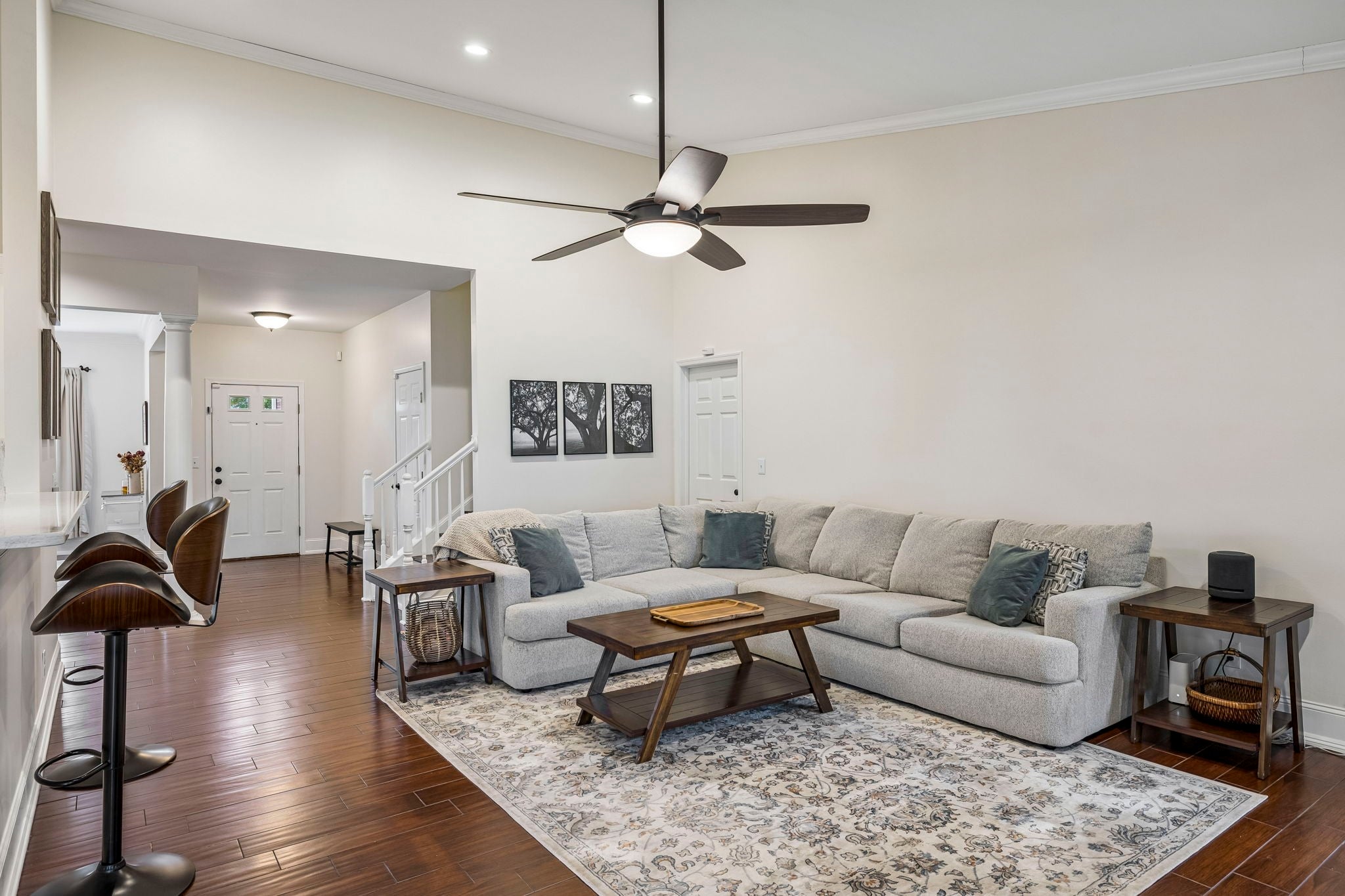 Welcome to this thoughtfully designed 3‑bedroom, 2‑bath home in the Boone Trace subdivision, ideally located in Bellevue on Nashville’s desirable west side. A home designed for indoor-outdoor living with a rare, oversized covered back deck perfect for your year round enjoyment and lifestyle. The open‑concept living area creates a natural flow between the kitchen and main living space, making it perfect for entertaining or enjoying a relaxing night at home. This home offers zero carpeting throughout with cohesive flooring for a clean, modern feel. All bedrooms and laundry are on the main level, with a split-bedroom layout offering a private primary suite on one side and two additional bedrooms on the other. Upstairs, you will find a bright & spacious bonus room which provides a valuable flex space that easily adapts to your life – whether you need a workout area, media or game room, or a much needed secluded home office. The standout feature of this home is the expansive covered back deck—finished with Trex decking— and features a gate and three ceiling fans. Whether you're hosting game days, enjoying early, peaceful mornings or unwinding after a long day, this outdoor space offers versatility rarely found at this price point. With its thoughtful layout, flexible spaces, and prime Bellevue location close to shopping, dining, parks, and major roadways, this home delivers both comfort and convenience. I‑40 is just minutes away making for a quick commute to downtown Nashville and all the vibrant venues and events the city offers. Boone Trace also features wonderful neighborhood amenities, including a dog park, playground, basketball court and nearby walking trails. Schedule your showing today and see for yourself how perfectly this home blends comfort, privacy, and convenience.