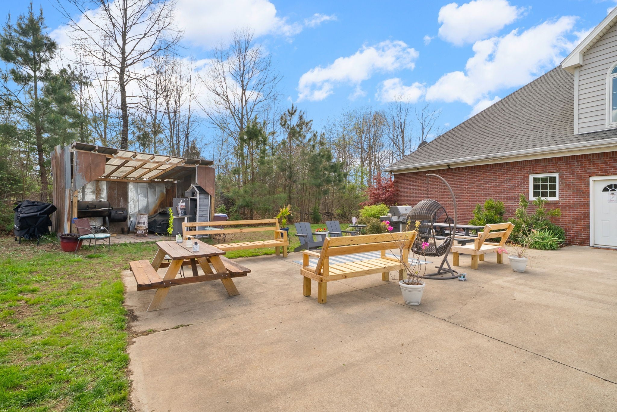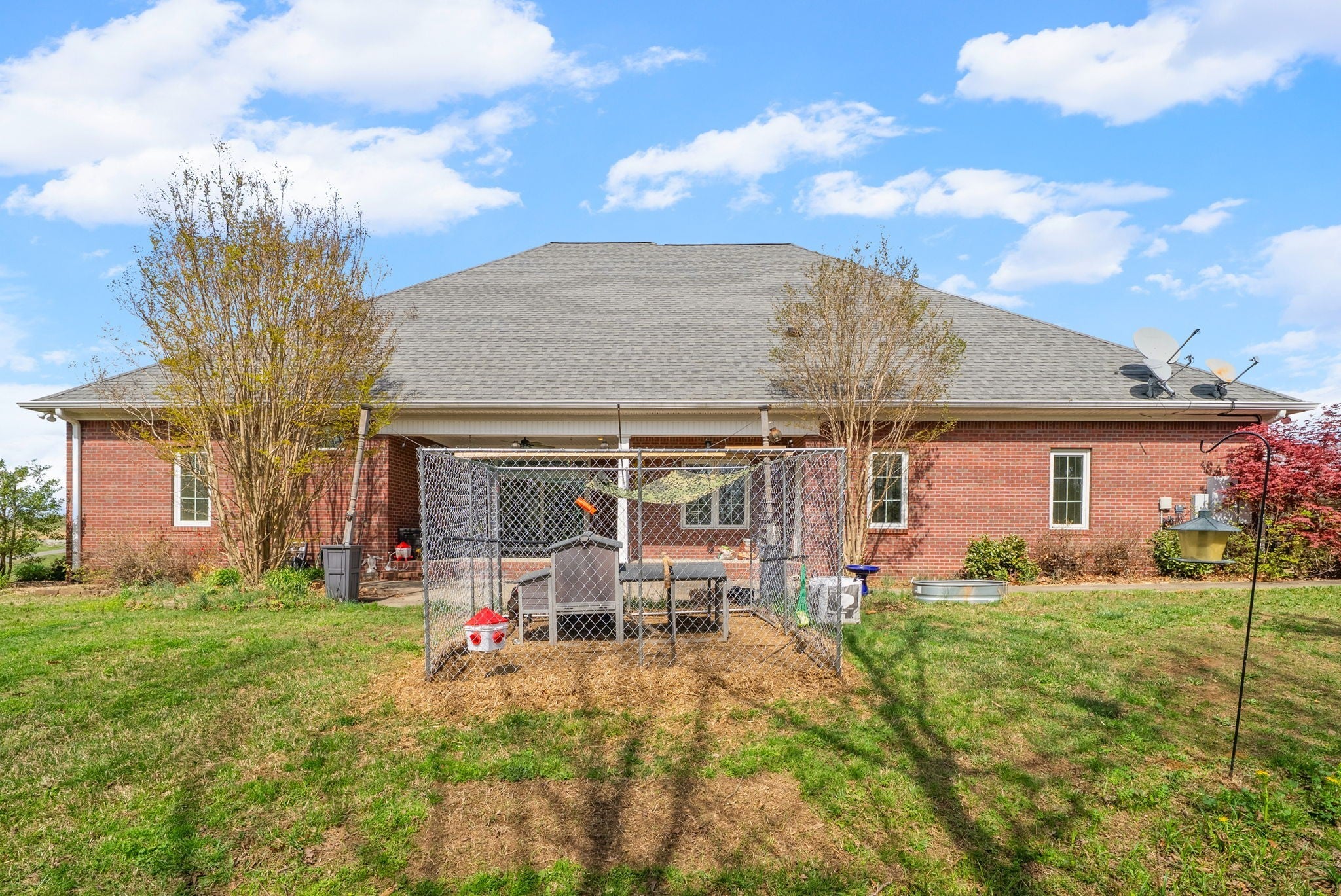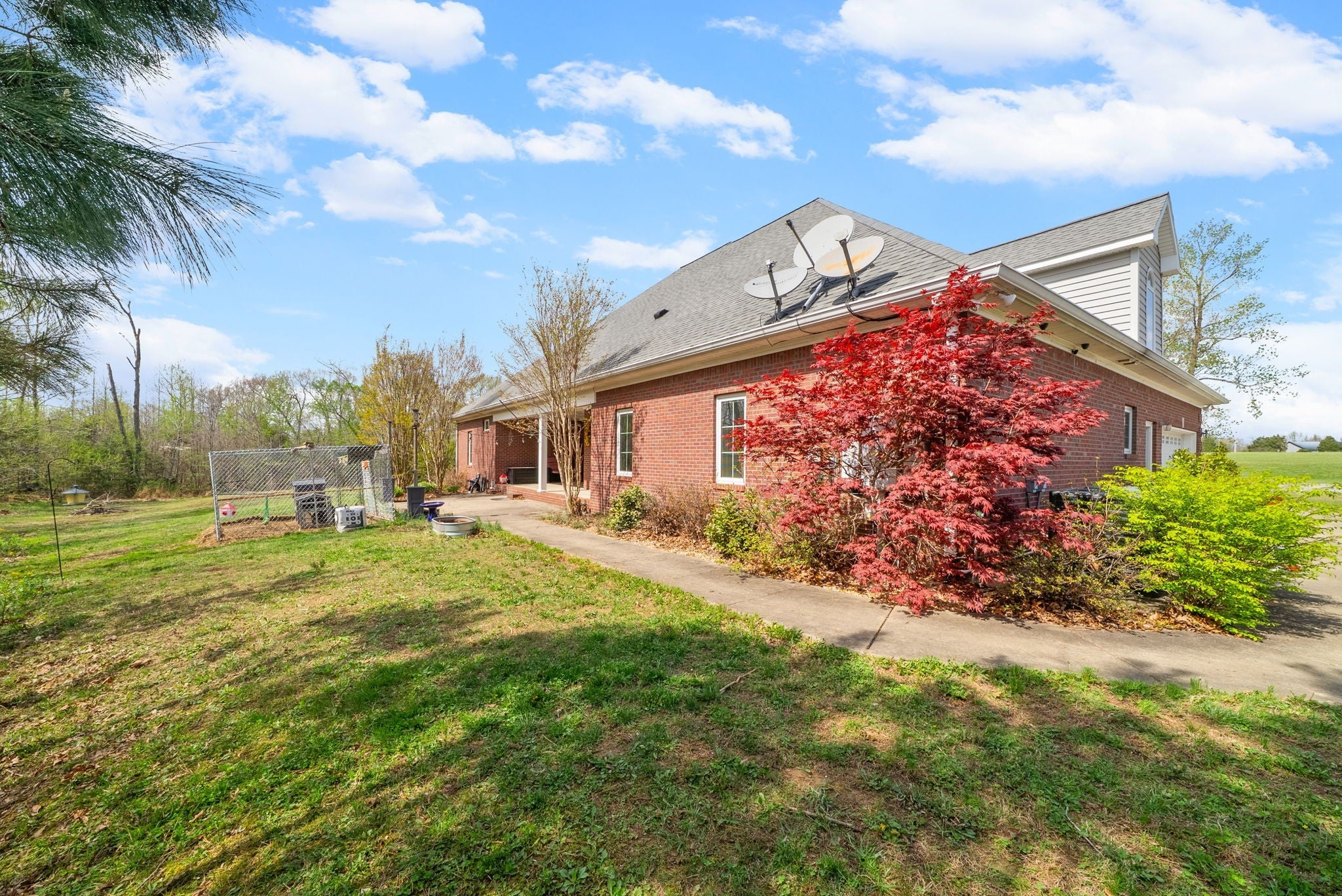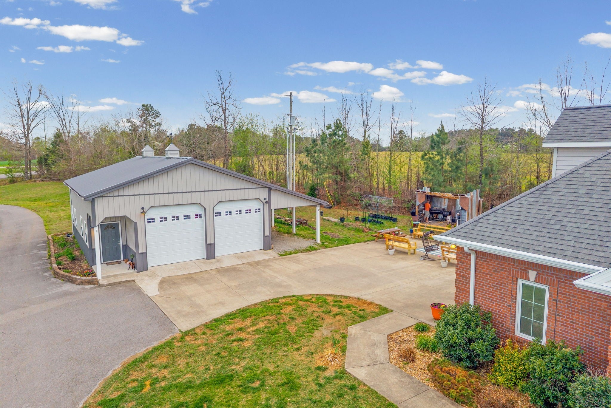 Stunning executive brick home set on nearly 3 private acres, offering space, efficiency, and thoughtful design throughout. This 5 bedroom, 5 full bathroom home features a functional layout with room to live, work, and entertain. The main level showcases heated ceramic tile floors powered by an energy-efficient electric tankless water heater, creating both comfort and long-term efficiency. The open concept living area is anchored by a beautiful stone fireplace, flowing seamlessly into a fully equipped kitchen with granite countertops, gas range with hood, built-in oven, ice maker, wine cooler, and ample cabinetry. Formal and casual dining spaces provide flexibility for everyday living and hosting. The primary suite offers a spacious retreat with a spa-like feel. Additional bedrooms are well-sized, and a bonus room provides added flexibility for a home office, media space, or guest accommodations. Hardwood flooring carries throughout the second level. Outside, enjoy privacy along with a 30x40 shop. The property also includes a 1,000-gallon owned propane tank. Fireplace and stove are connected to propane. Scenic views are enhanced by a Vineyard located just across the street. This property offers a rare blend of space, functionality, and efficiency in a peaceful setting.