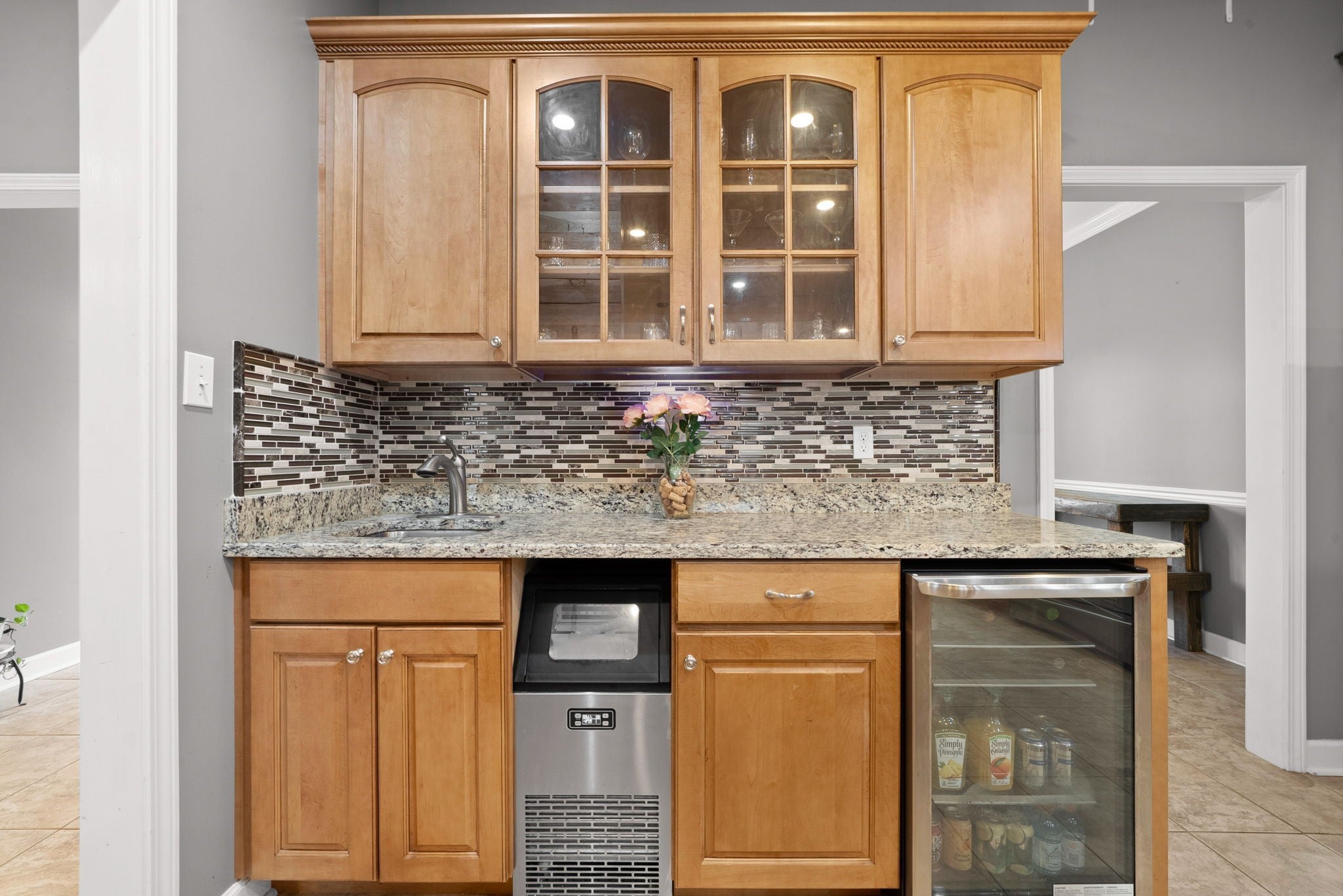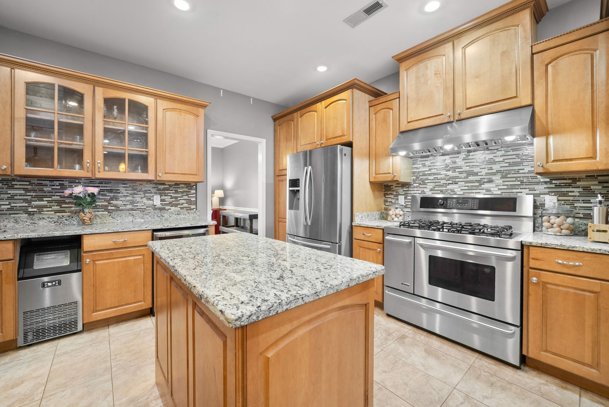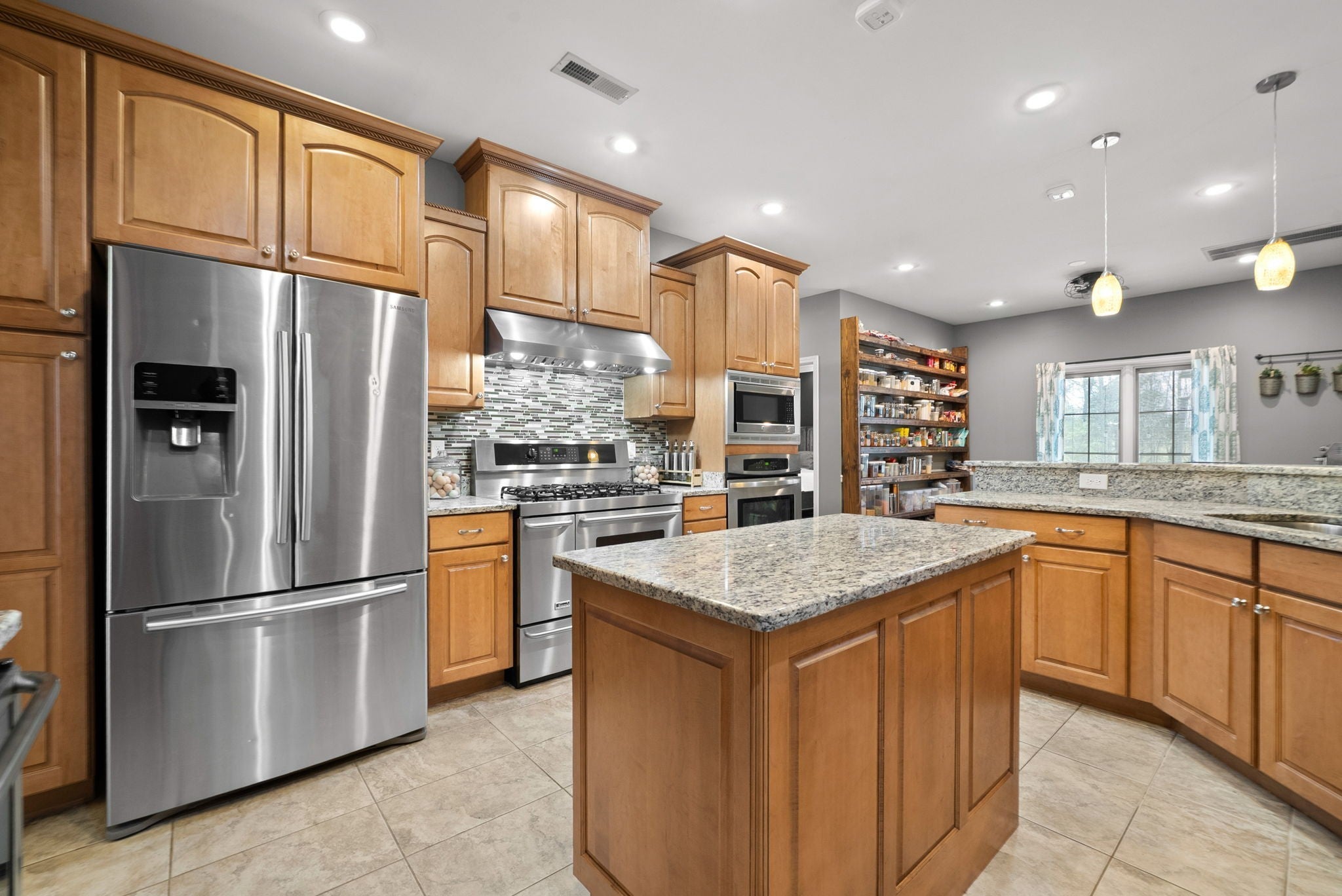 - Built-In Electric Oven, Gas Oven, Gas Range, Dishwasher, Disposal, Ice Maker, Microwave, Refrigerator, Stainless Steel Appliance(s)