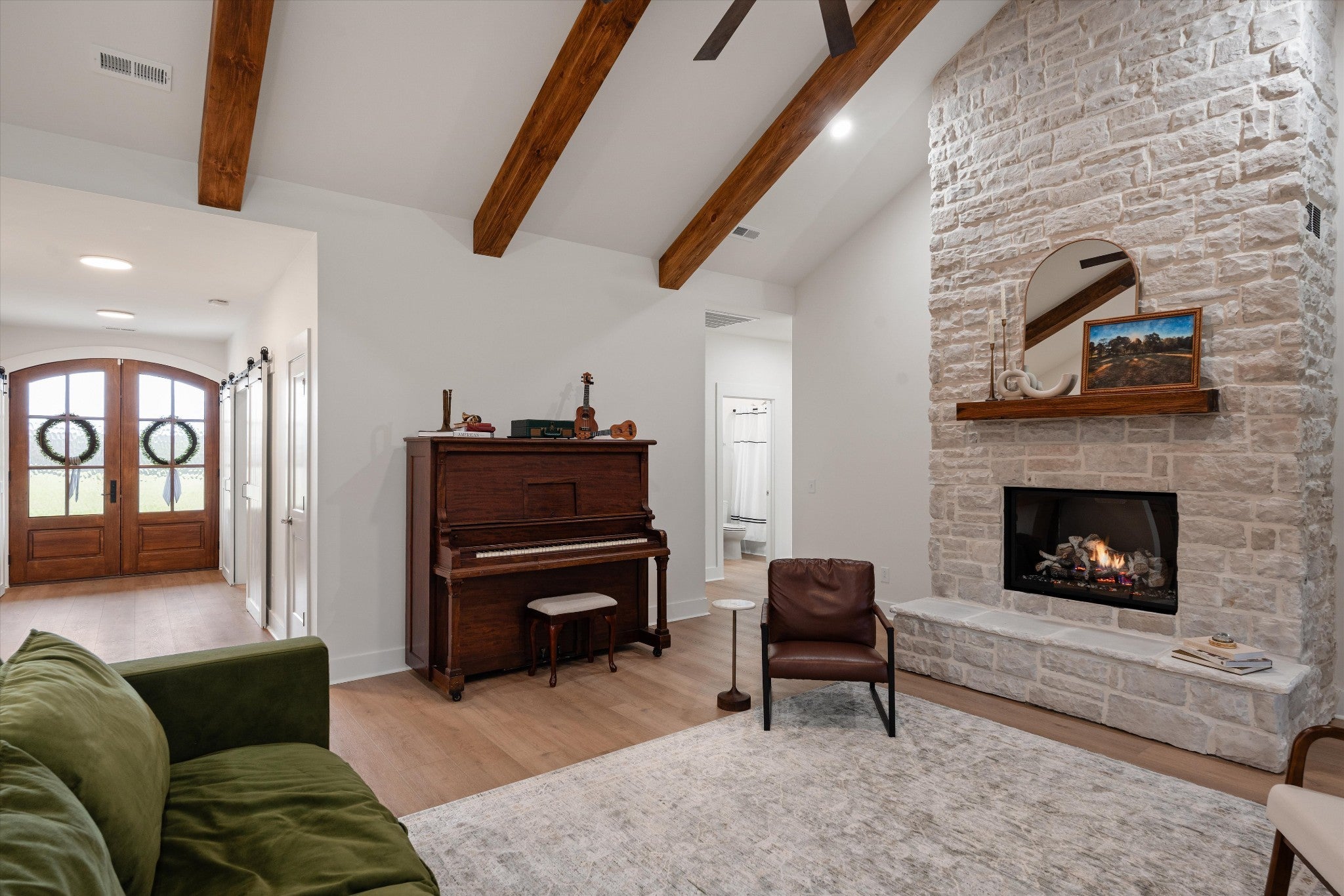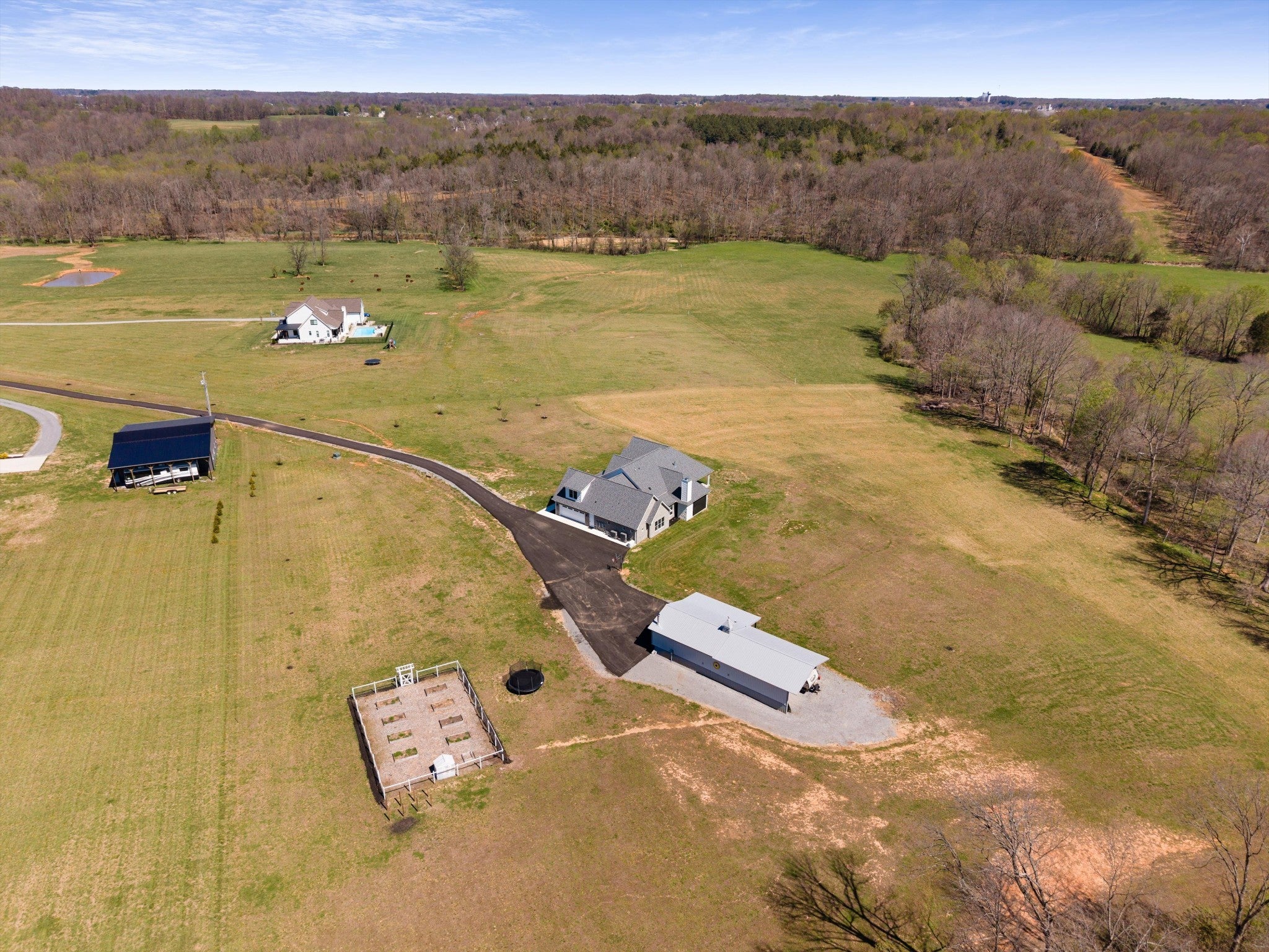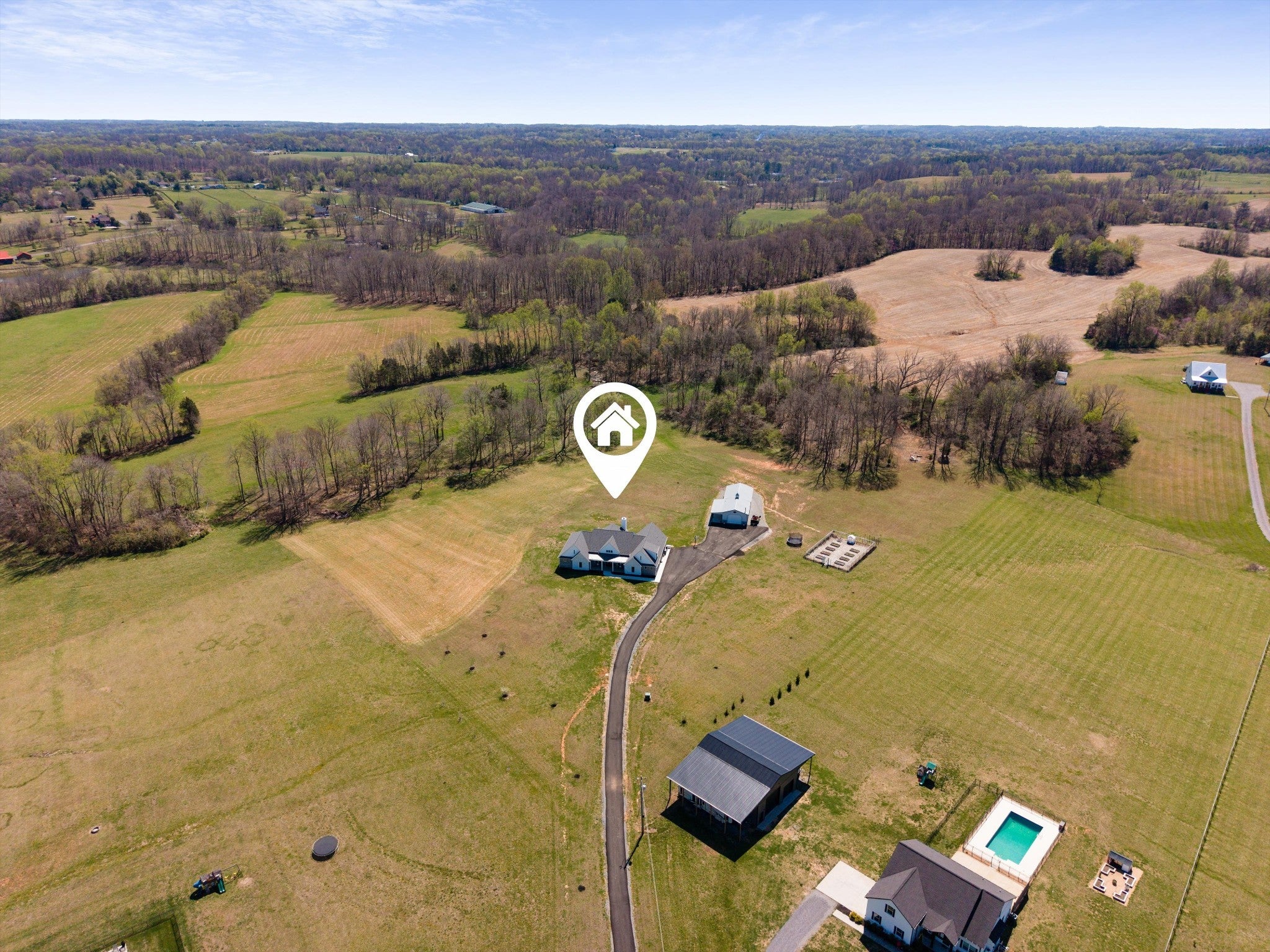 WOW! Privacy, power, and craftsmanship define this extraordinary 4-bed, 6-bath luxury estate on over 15 pristine acres. Every detail signals a home built to perform as beautifully as it lives. Infrastructure is unmatched: 24kW GENERAC whole-home generator, 400-amp electrical service (200 to house, 200 to shop), fiber optic internet up to 3,000 Mbps, and 2,000+ feet of CAT6 cabling throughout. Dual Rheem high-efficiency heat pumps with gas backup furnaces and dual ActivePure Air Scrubbers eliminate contaminants, bacteria, and odors at the source. Navien tankless water heater with recirculating pump delivers instant hot water to every shower. The kitchen features a Samsung dual-zone steam oven, convection air fryer combo, and 1,300 CFM professional range hood. App-controlled HVAC, garage, ovens, and 49 Philips Hue smart lights integrate with Google Home, Alexa and Apple HomeKit. Nest Protect smart detectors with motion path lighting throughout. Two vented American-made fireplaces with natural gas connections for the outdoor fireplace and grill. A hidden attic media room and secret pantry pass-through to the office add rare character. A tornado proof underground 6-person storm shelter provides safety and peace of mind. The fully plumbed shop includes bathroom, laundry, floor drain, reinforced floor for a future car lift, and dual 30-amp RV hookups inside and out. Outside hosts a fenced garden, raised beds, 3-year established orchard with apple, peach and pecan trees, apiary site for up to 5 hives, seasonal stream, deer, and wild turkeys. Local farmer maintains rear fields via hay arrangement. Pipeline easement permanently preserves rear views. A fully equipped, future-ready retreat unlike anything else in Middle Tennessee.