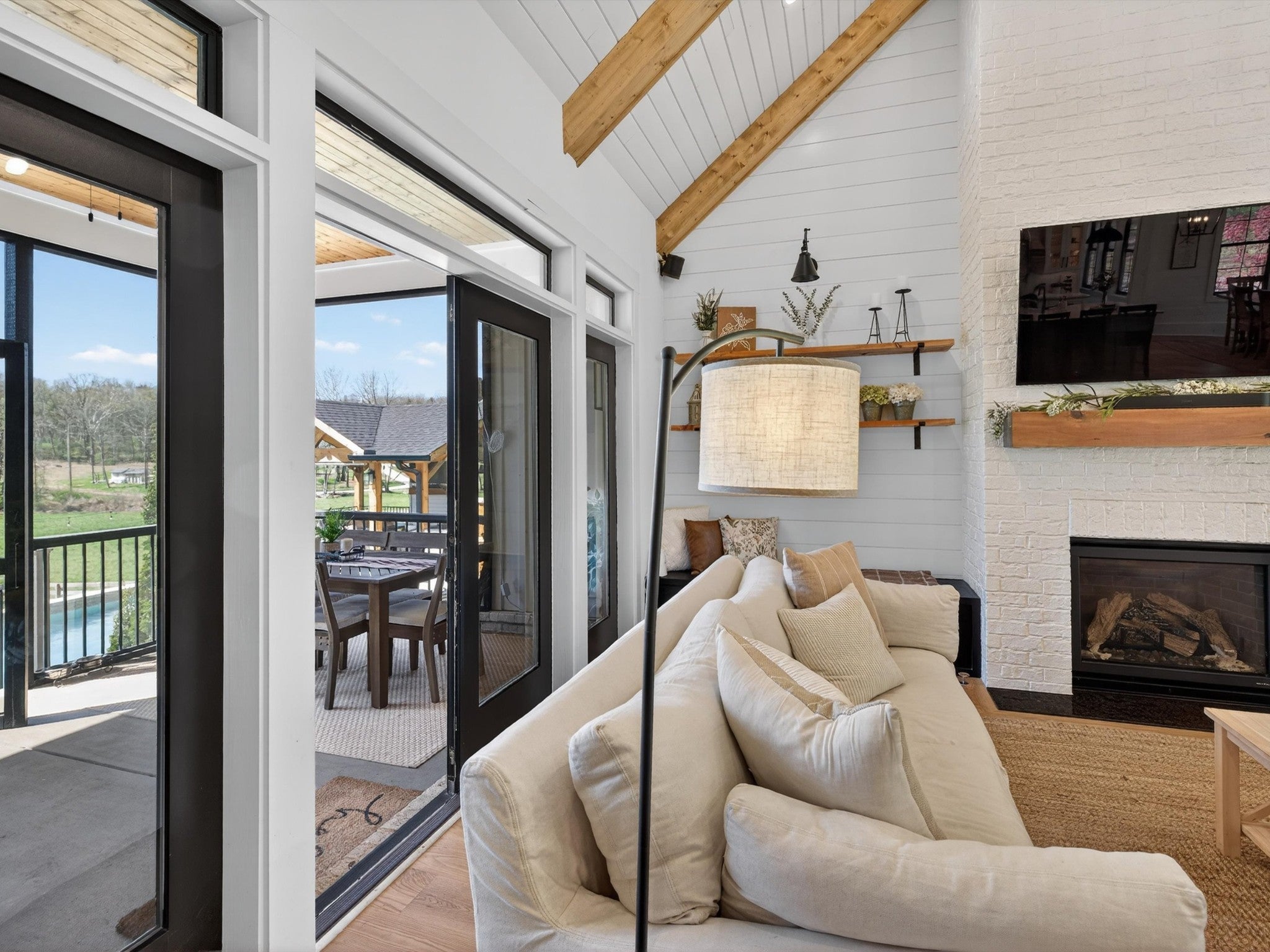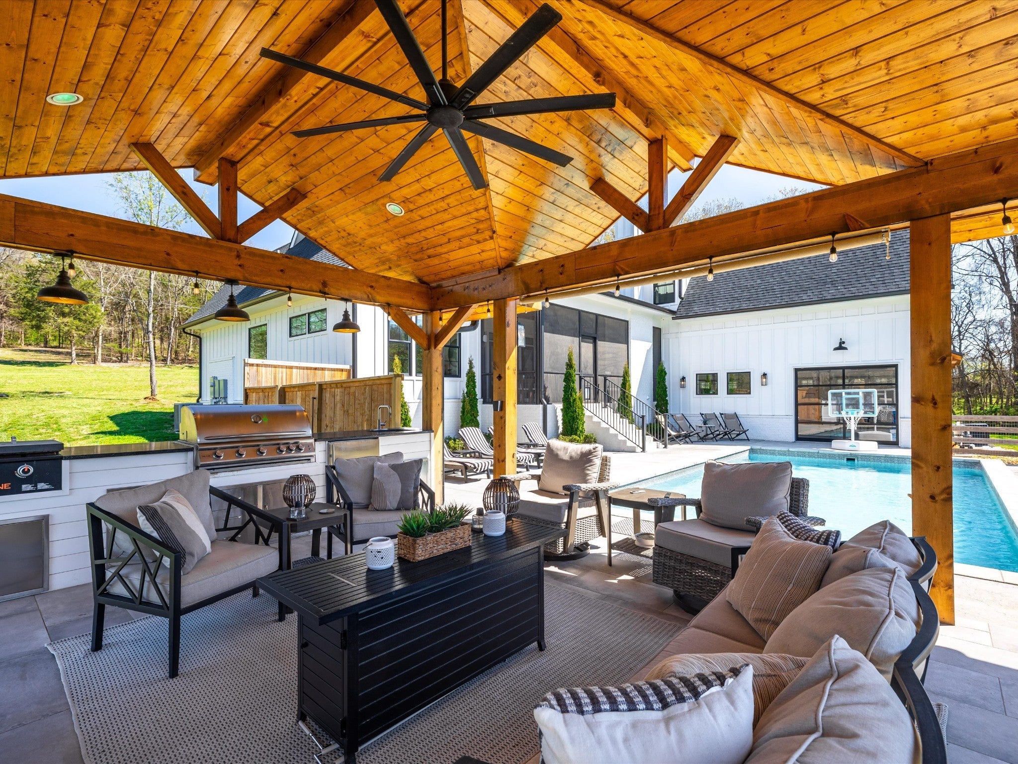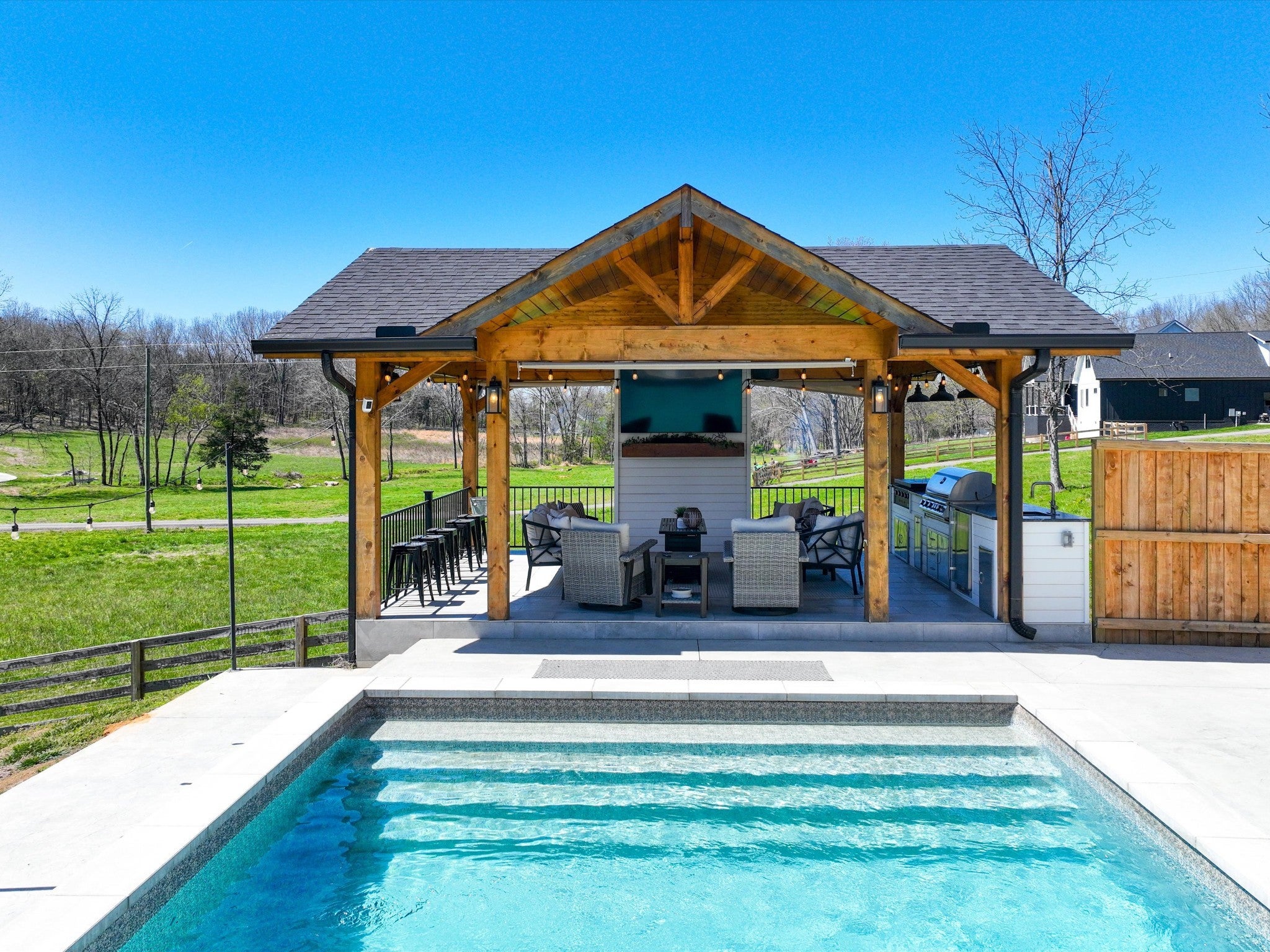 Welcome to your private retreat on 5.02 beautiful acres—where modern luxury meets everyday convenience. Built in 2023, this stunning 3,496 sq ft home offers 4 spacious bedrooms and 3.5 baths, thoughtfully designed with both comfort and functionality in mind. Step inside to an open-concept layout featuring a chef’s kitchen equipped with a gas stove, double ovens, and a convenient butler’s pantry—perfect for entertaining and everyday living. The living spaces flow seamlessly to a screened-in back porch complete with a cozy wood-burning fireplace, creating the ideal spot to relax year-round. Outdoors, the property truly shines. Enjoy your own backyard oasis with an in-ground concrete pool and a pavilion featuring a full outdoor kitchen—perfect for hosting gatherings or unwinding in style. Need extra space? The 30x40 shop with water and electric offers endless possibilities for hobbies, storage, or a home business. Additional highlights include a 3-car attached garage, high-speed fiber internet, and a prime location just minutes from Interstate 40 and Interstate 840, providing easy access while still enjoying the peace and privacy of country living. This is a rare opportunity to own a nearly new home with acreage, premium amenities, and unbeatable convenience.