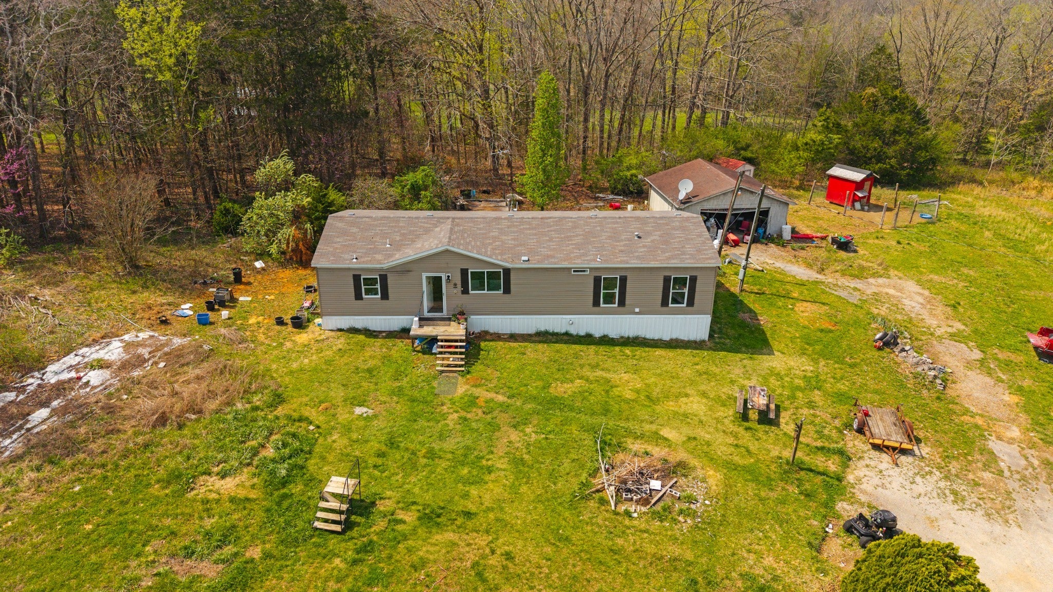 Beautiful 6.7± acres nestled in a serene country setting with easy access to I-65, offering the perfect blend of privacy and convenience. A long, private driveway leads you into a peaceful landscape surrounded by mature trees and open space. The property features established grapes, blackberries, blueberries, cherry trees, and pear trees, creating a charming, garden-ready setting. A 2022 manufactured home is already in place, providing immediate livability while allowing room to dream and plan. Additional features include a chicken coop and a garage, adding to the property’s character and versatility. With privacy all around and generous acreage, the land offers flexibility for future possibilities, whether envisioning a small family compound, an additional homesite, or a builder exploring potential for new construction, subject to approvals. A truly beautiful piece of country property in a desirable area with room to grow.
