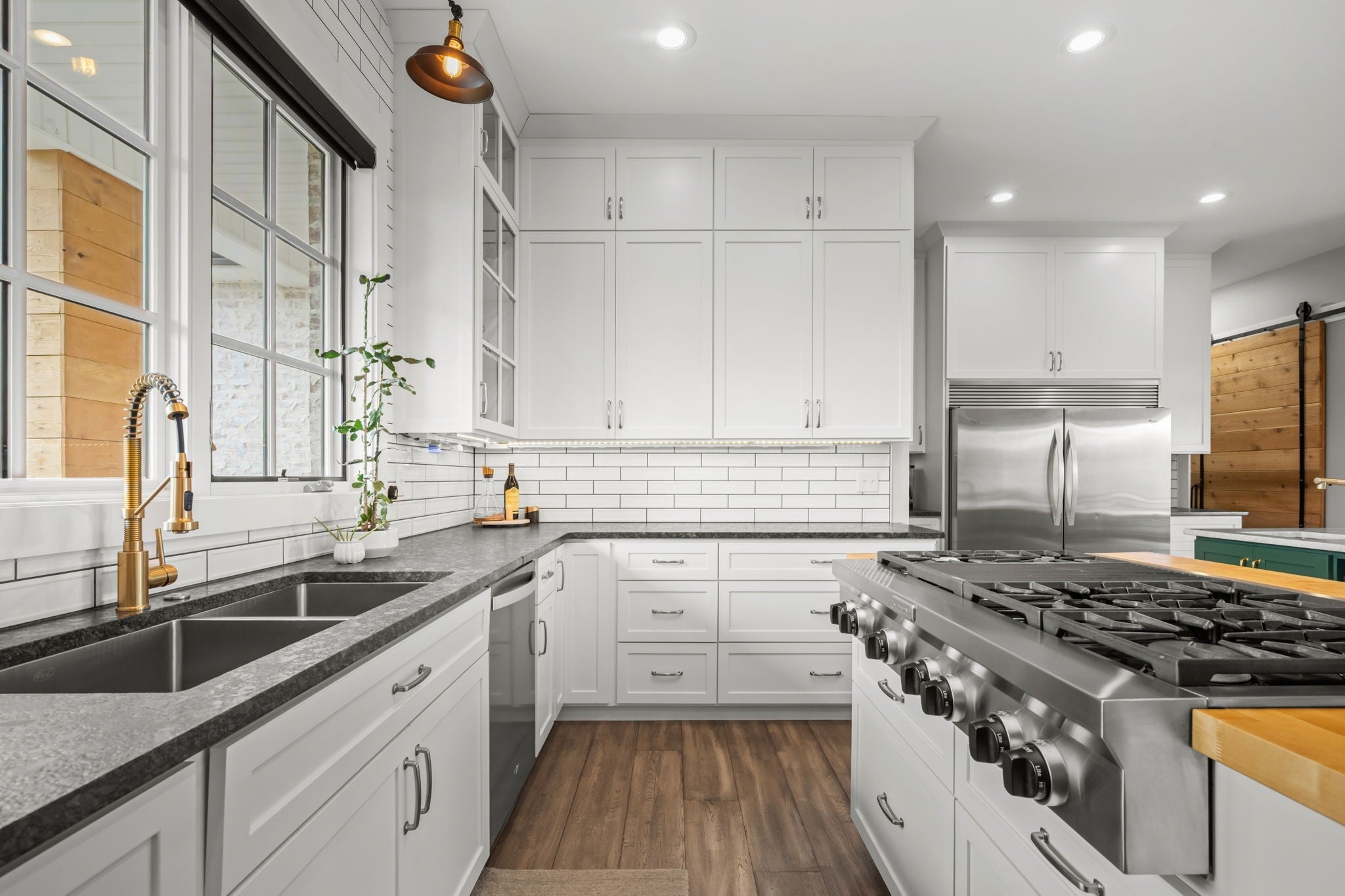 - Double Oven, Gas Range, Dishwasher, Disposal, Microwave, Refrigerator