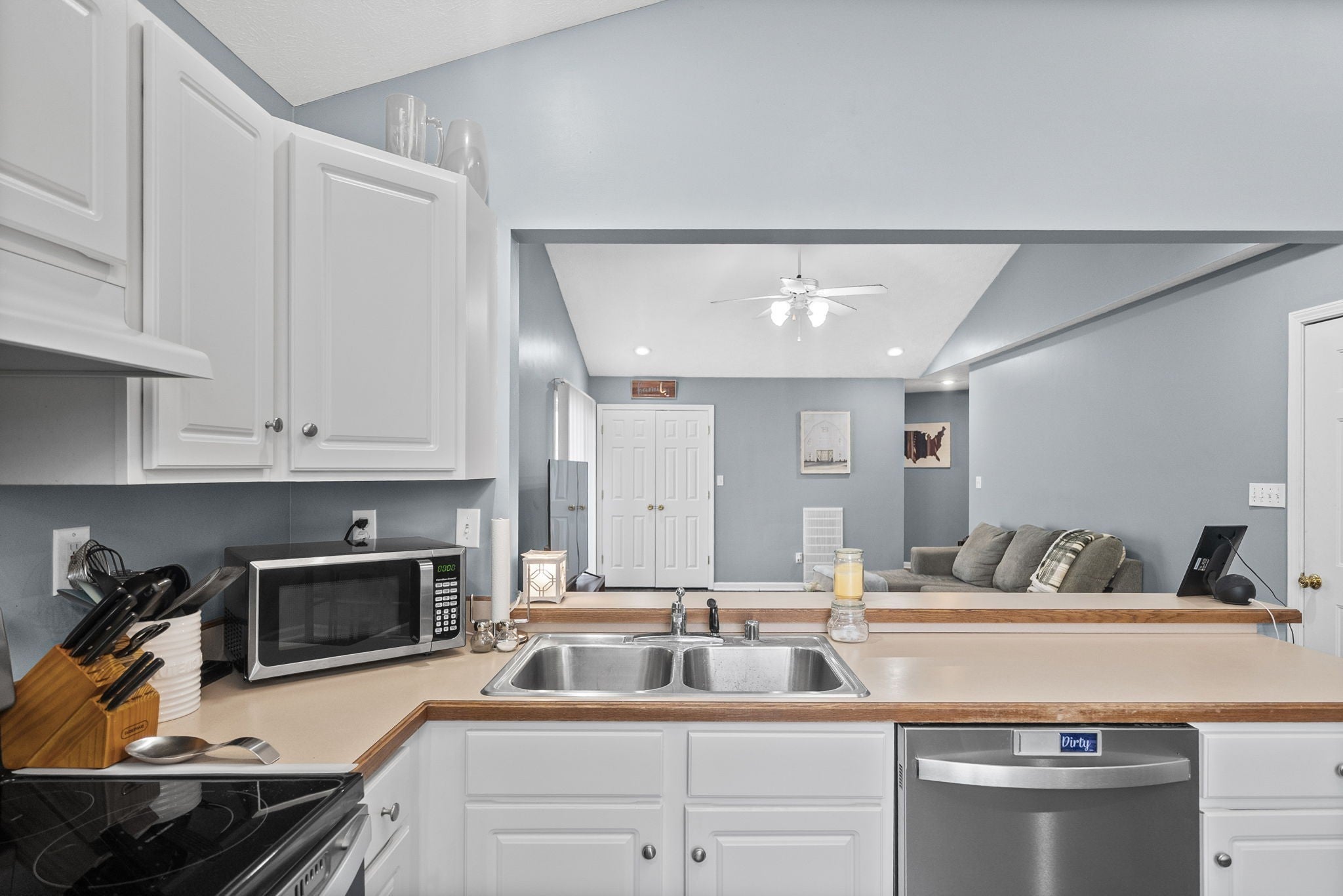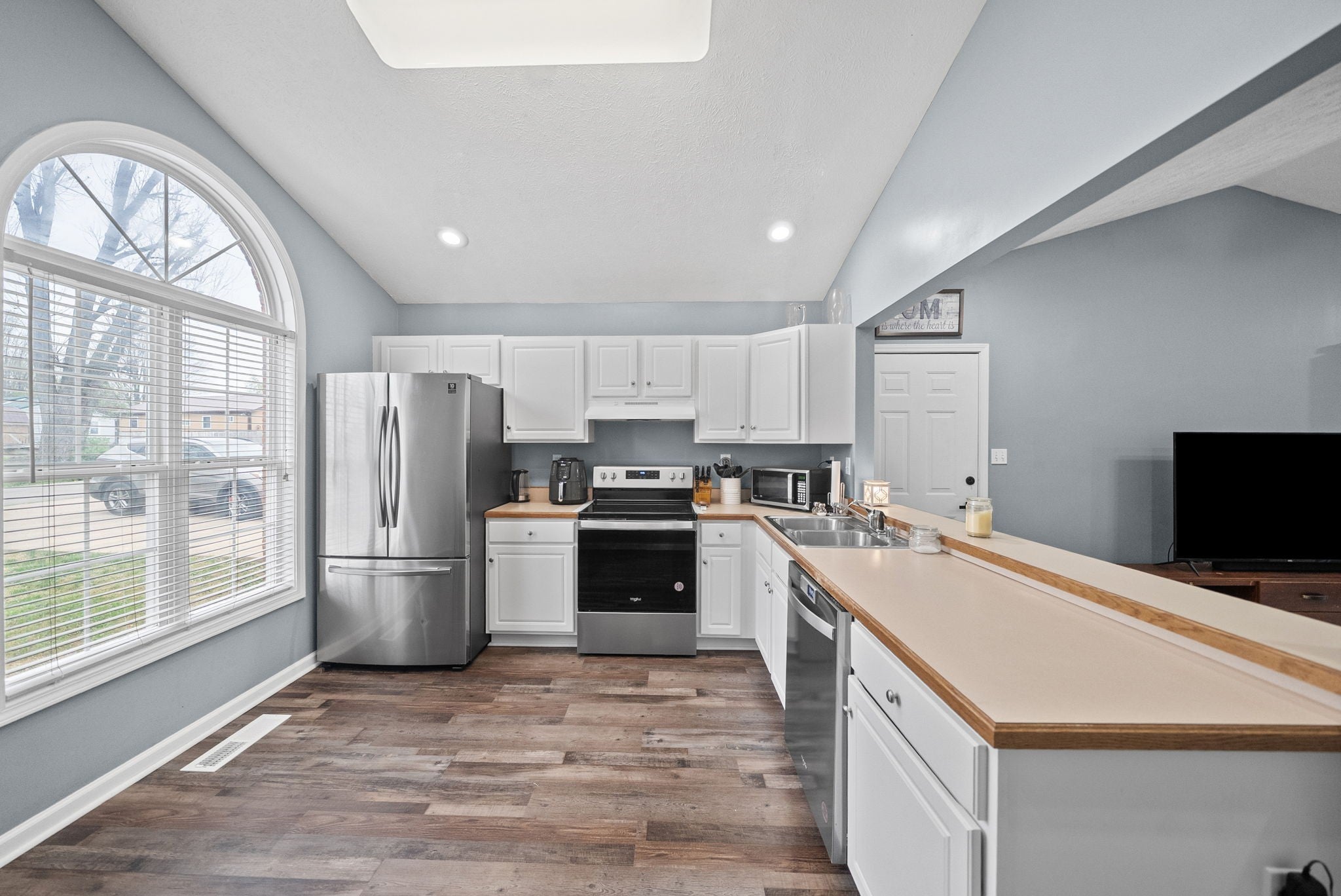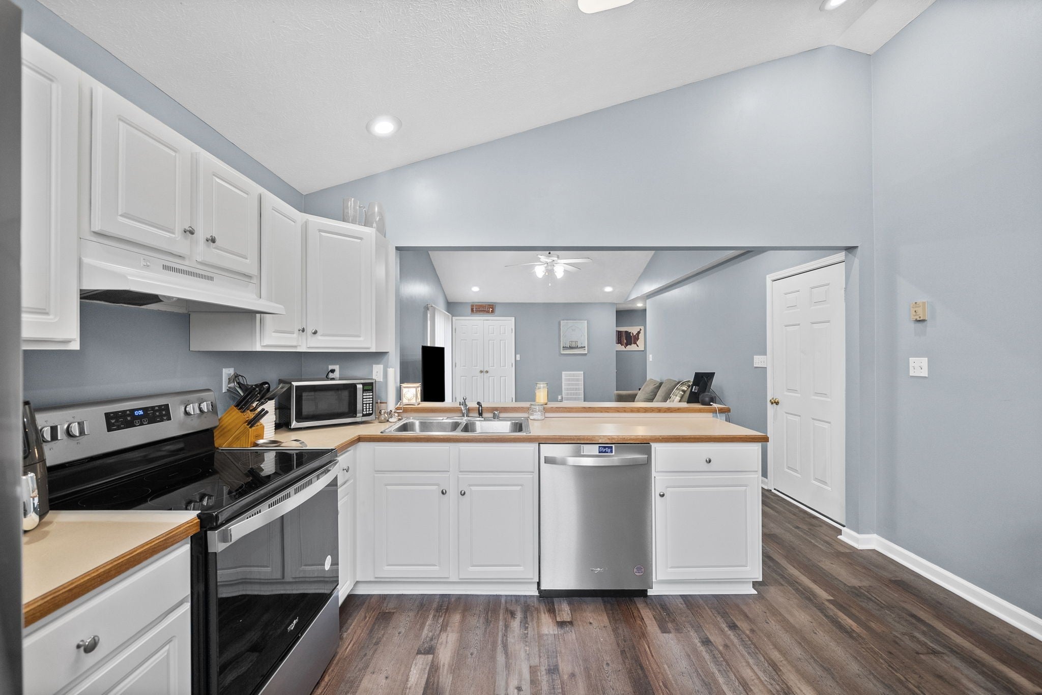 - Electric Oven, Electric Range, Dishwasher, Disposal, Microwave, Refrigerator, Stainless Steel Appliance(s)