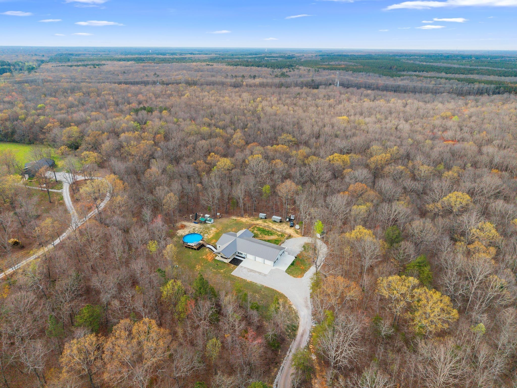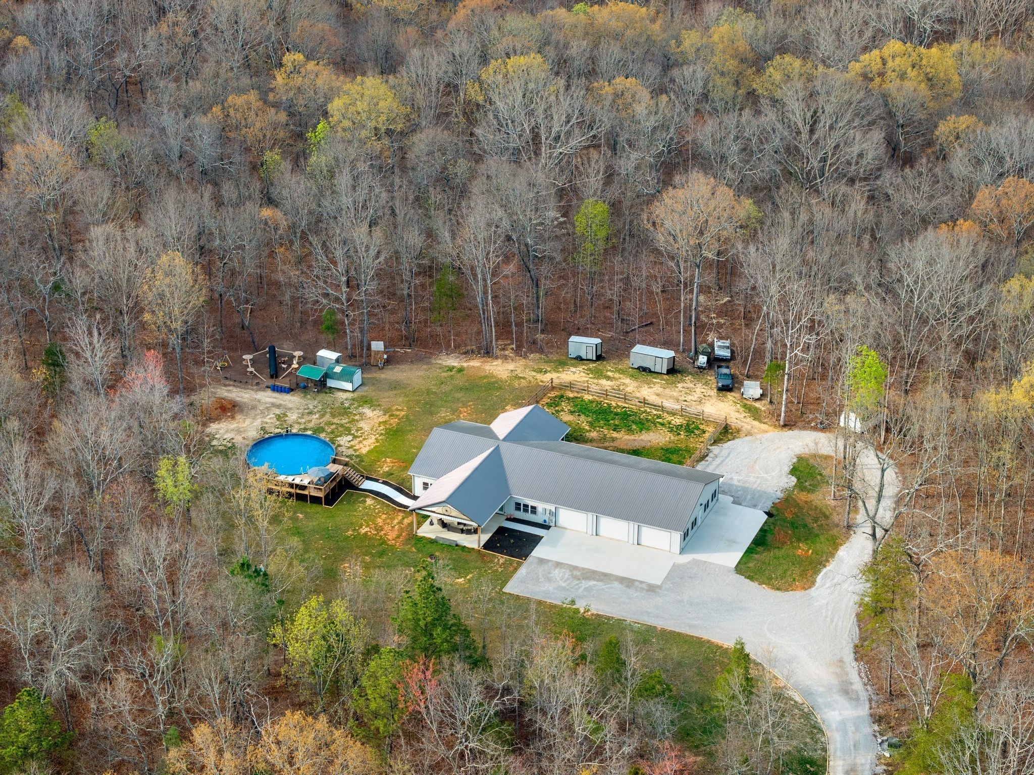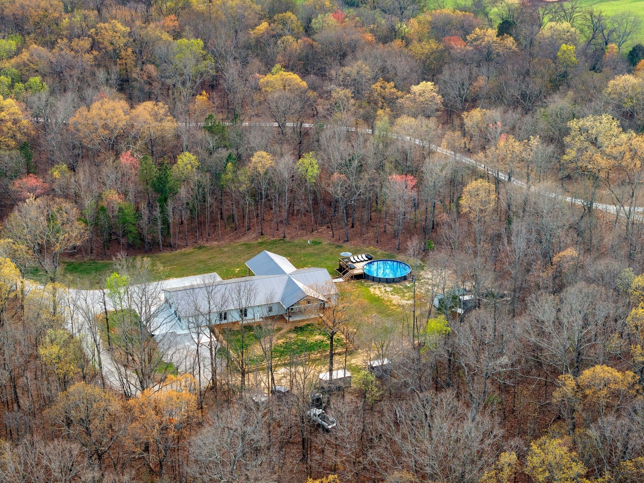 Discover the perfect blend of versatility, space, and privacy with this exceptional barndominium set on 14.71 acres. Offering 2,184 square feet of beautifully designed living space, this property also features an additional 2,142 square feet that is fully heated, cooled, and insulated—giving you endless possibilities. Whether you envision expansive garage space, a workshop, or even additional living quarters, the entire structure is built to be fully livable to suit your needs. Tucked away at the end of a long private driveway, the setting provides peace, seclusion, and scenic surroundings—ideal for those seeking a retreat without sacrificing functionality. Adding even more value and flexibility, the property includes a separate 432-square-foot tiny home, complete with its own address (37 Mud Lane), septic system, and a fenced backyard. Built in 2024, it’s perfect for guests, rental income, or multigenerational living. With nearly 15 acres to enjoy, this one-of-a-kind property offers room to expand, create, and truly make it your own—all while enjoying the unique charm and practicality of barndominium living. This property also offers underground utilities, tankless gas water heater, 33 ft above ground pool (new) w/ lighting (poolside furniture is negotiable) 56 inches deep, small shed for storage, chicken coop and chickens (should you want them to stay), wet weather creek, temperature controlled attic, 10 ft ceilings, 8 & 9 feet garage doors, security cameras (8) w/ motion detecting lights and so much more! No city taxes and fiber internet is available. Opportunities like this don't come around often-schedule your private showing today!