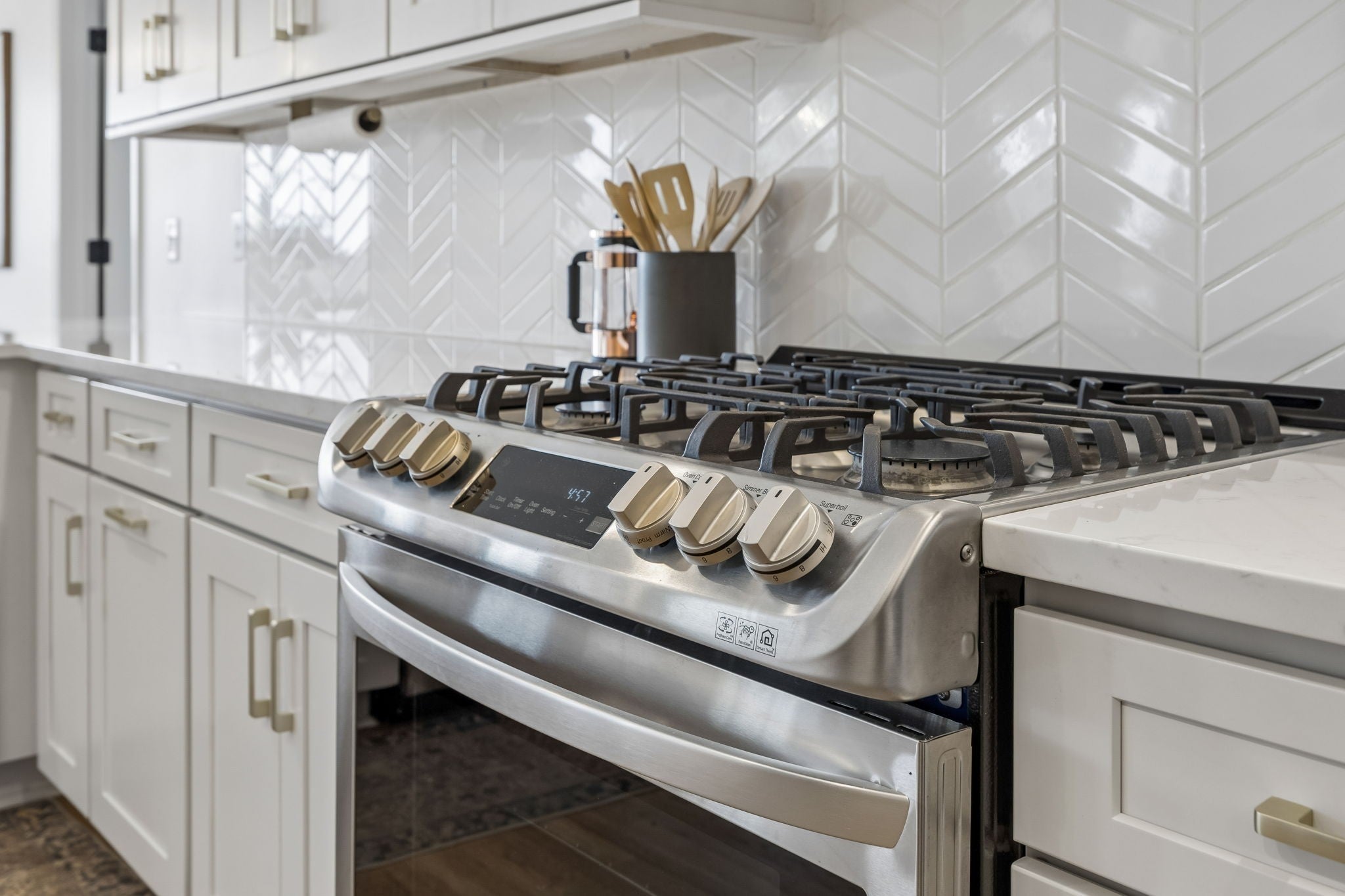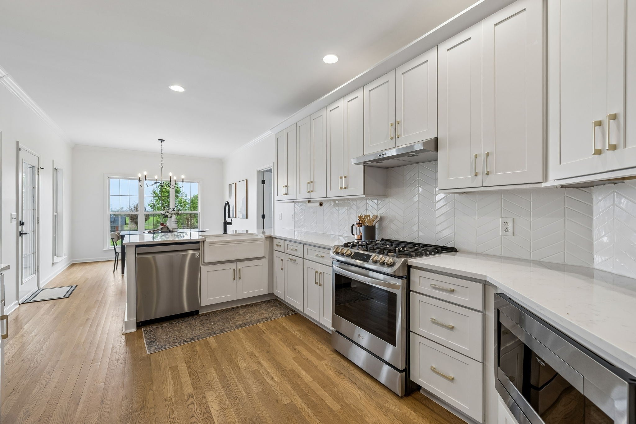 - Built-In Gas Oven, Gas Range, Dishwasher, Disposal, Microwave, Refrigerator, Smart Appliance(s)