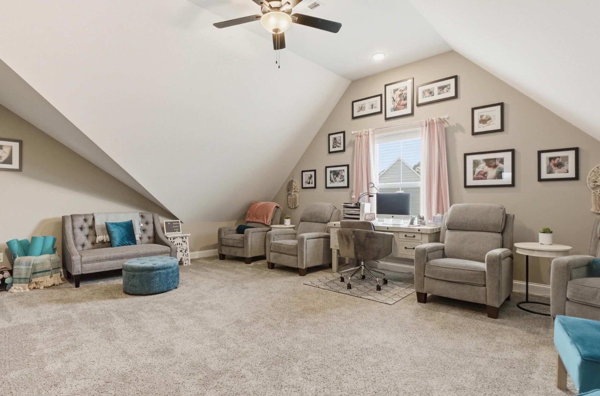 Welcome to Swan Cove, where modern comfort meets everyday ease in this beautifully designed 1.5-story home built in 2023 by Dreamtech Homes, LLC--known for quality craftsmanship and thoughtfully curated finishes. Immaculately maintained and move-in ready, this home offers the perfect blend of style, functionality, and warmth. From the moment you step inside, you're greeted by rich LVP flooring, abundant natural light, and an open, inviting layout that instantly feels like home. The great room draws you in with coffered ceilings and a cozy fireplace, creating the perfect gathering space for both quiet evenings and entertaining guests. The heart of the home is the stunning kitchen, featuring crisp white cabinetry, white quartz countertops, stainless steel appliances, a spacious walk-in pantry, and a large center island with bar seating--perfect for casual meals, morning coffee, or gathering with friends and family. The kitchen flows seamlessly into the dining and living areas, making entertaining effortless. The main-level primary suite offers a peaceful retreat with beautiful flooring, a tiled shower, and a dual-sink vanity designed for both comfort and convenience. Upstairs, you'll find two additional bedrooms, a full bath, and a finished bonus room that truly sets this home apart. Whether you envision movie nights, a playroom, home office, or even a potential fourth bedroom, this flexible space adapts to your lifestyle. Step outside and enjoy a setting designed for both relaxation and entertaining. The welcoming covered front porch, level front yard, and easy driveway access create everyday convenience, while the backyard offers a covered deck, open patio, a beautifully crafted stone retaining wall with landscaping, and a fully fenced yard--perfect for hosting, playing, or simply unwinding. Positioned along the perimeter of the neighborhood, the lot offers a touch of added privacy while still being part of a friendly, walkable community.