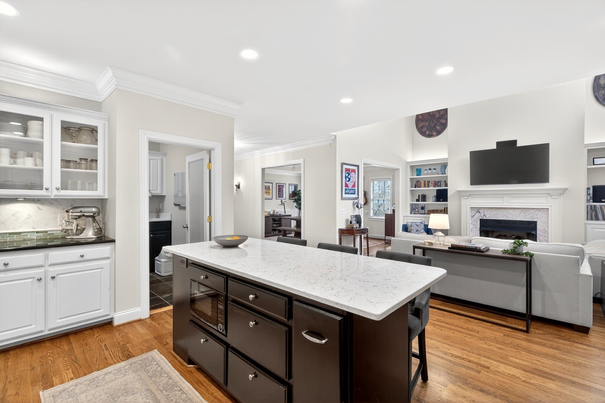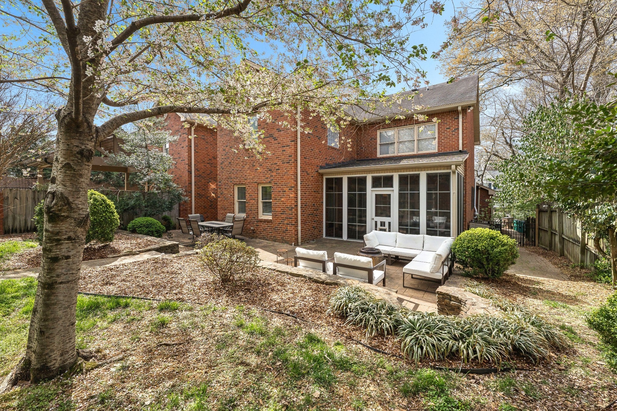 Under $1M in Green Hills?! Yep. Your eyes are not deceiving you! Welcome home to this incredibly well-constructed, fully brick build in the most convenient spot in Green Hills. From the beautifully manicured landscaping w/ full irrigation system to the thoughtfully updated interior, this space is ready to impress in every way. The home is designed for ultimate enjoyment of every square inch of the property throughout the entire year - particularly time spent on the 3-season porch w/ floor-to-ceiling vinyl windows and screens overlooking mature cherry blossom trees, expansive paver stone patio w/ in-ground fire-pit, & interior living space ready to accommodate any sized gathering. Inside you'll find a generous kitchen w/ large island, stone countertops, gas range, stainless appliances, wine fridge, tile backsplash, & a convenient laundry room w/ excellent storage space + a tucked away half-bath. Gather for meals in the formal dining area w/ tray ceiling & cozy up in the living room w/ gas fireplace flanked by built-in bookshelves, double height ceilings, & light-filled windows. A guest suite w/ renovated full bath completes the main level space, & upstairs you'll find your perfect escape in the primary suite w/ reading nook, built-in shelving, & remodeled primary bath w/ soaker tub, frameless glass shower, double vanities, private toilet room, & walk-in closet. The 2nd level also includes 2 additional bedrooms, a 3rd full bathroom that has also been updated, & convenient landing at the top of the stairs for a reading or office nook. Don't overlook details like the crown moulding throughout, hardwood & tile flooring in every room except two bedrooms, surround sound speakers, privacy fenced backyard, landscape lighting, off-street parking pad, & 2-car garage w/ storage above. This home has SO much to offer at a tough to beat price for the area. Get ready to fall in love from the moment you arrive!