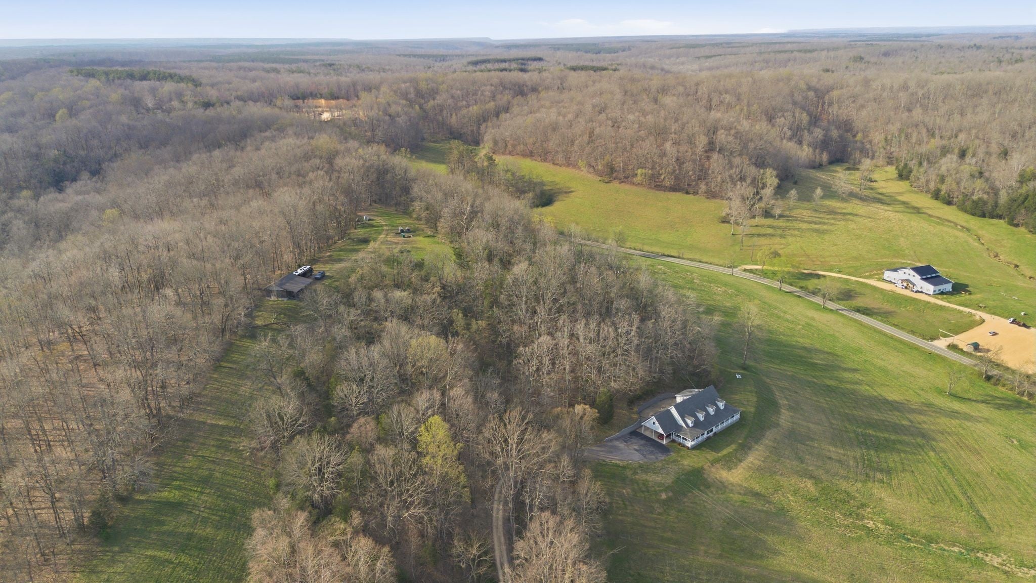 Peaceful 40-acre farm set among the rolling pastures of Middle Tennessee, south of Nashville, with sweeping views of the Keg Springs Valley that never get old. Centrally located between Columbia, Hohenwald, and Centerville, with easy access to the Natchez Trace Parkway. The property offers approximately half a mile of road frontage, a mix of wooded upland and gentle valley side and floor pastures. Ready for horses with existing run-in shed. Large shop has endless potential. Lots of space both in the home and on the property for multi-generational living or family compound. An independent well with spring backup provides a reliable, self-sufficient water supply. The custom home is built around the views, with multiple covered deck spaces designed for outdoor living. A sun-filled Florida room keeps that connection to the landscape comfortable year-round. Inside, the open-concept main level features a stone fireplace and a great room with soaring ceilings. Four bedrooms are complemented by a dedicated office and additional flex spaces that adapt easily to a home gym, hobby room, or additional guest quarters. Large bonus room on second level. The oversized laundry room includes a utility sink and ample cabinetry. A distinctive Tennessee property with room to grow, both inside the home and on additional potential build sites. Sale includes two parcels: Parcel ID 002 010.00 (5 acres) Parcel ID 002 010.03 (34.86 acres)