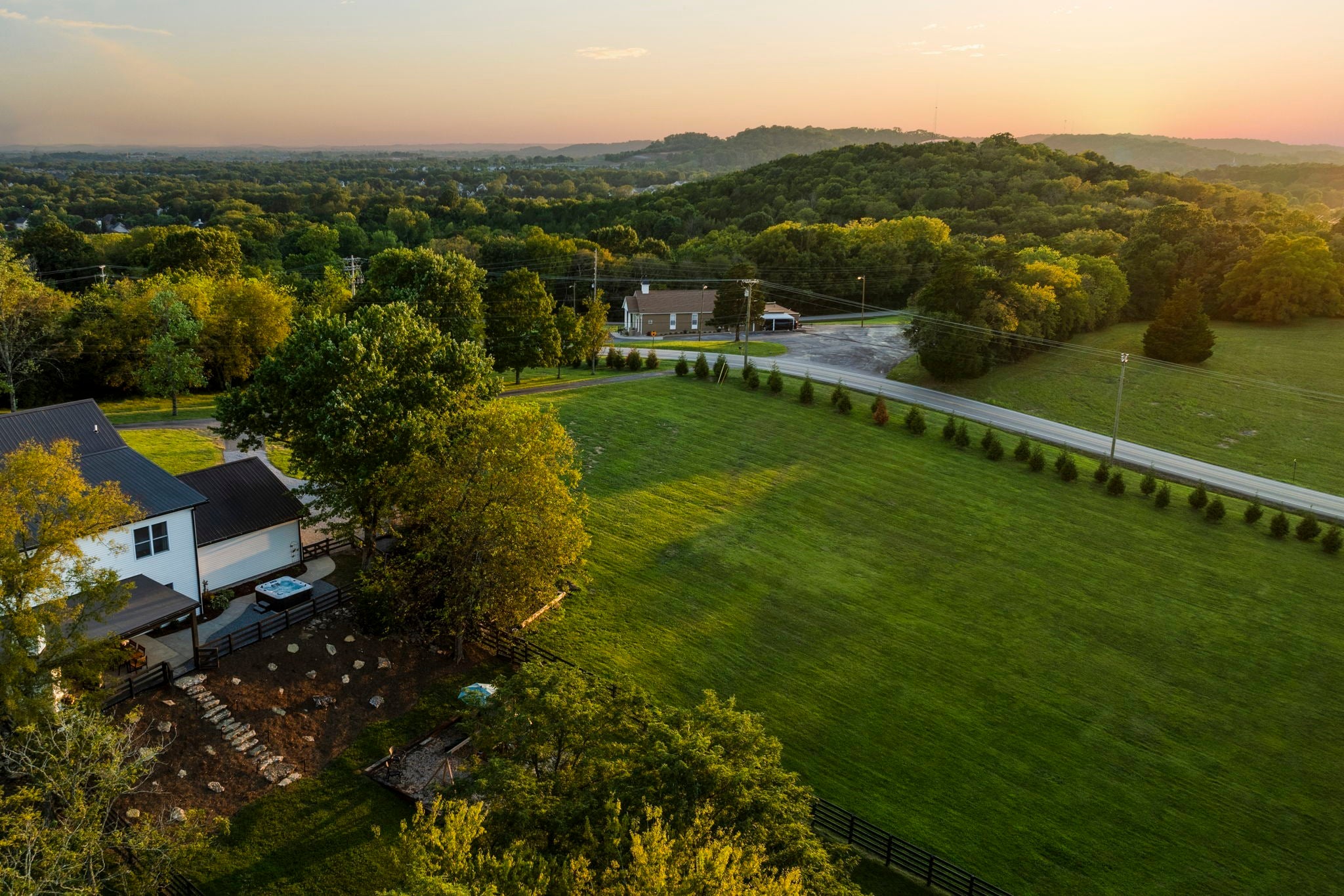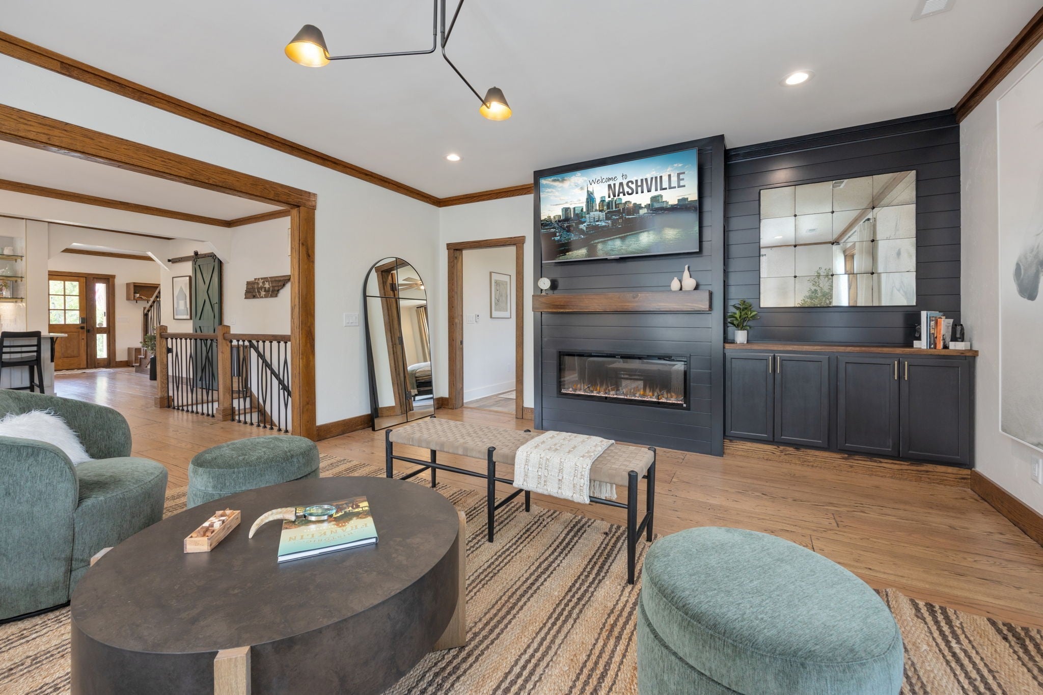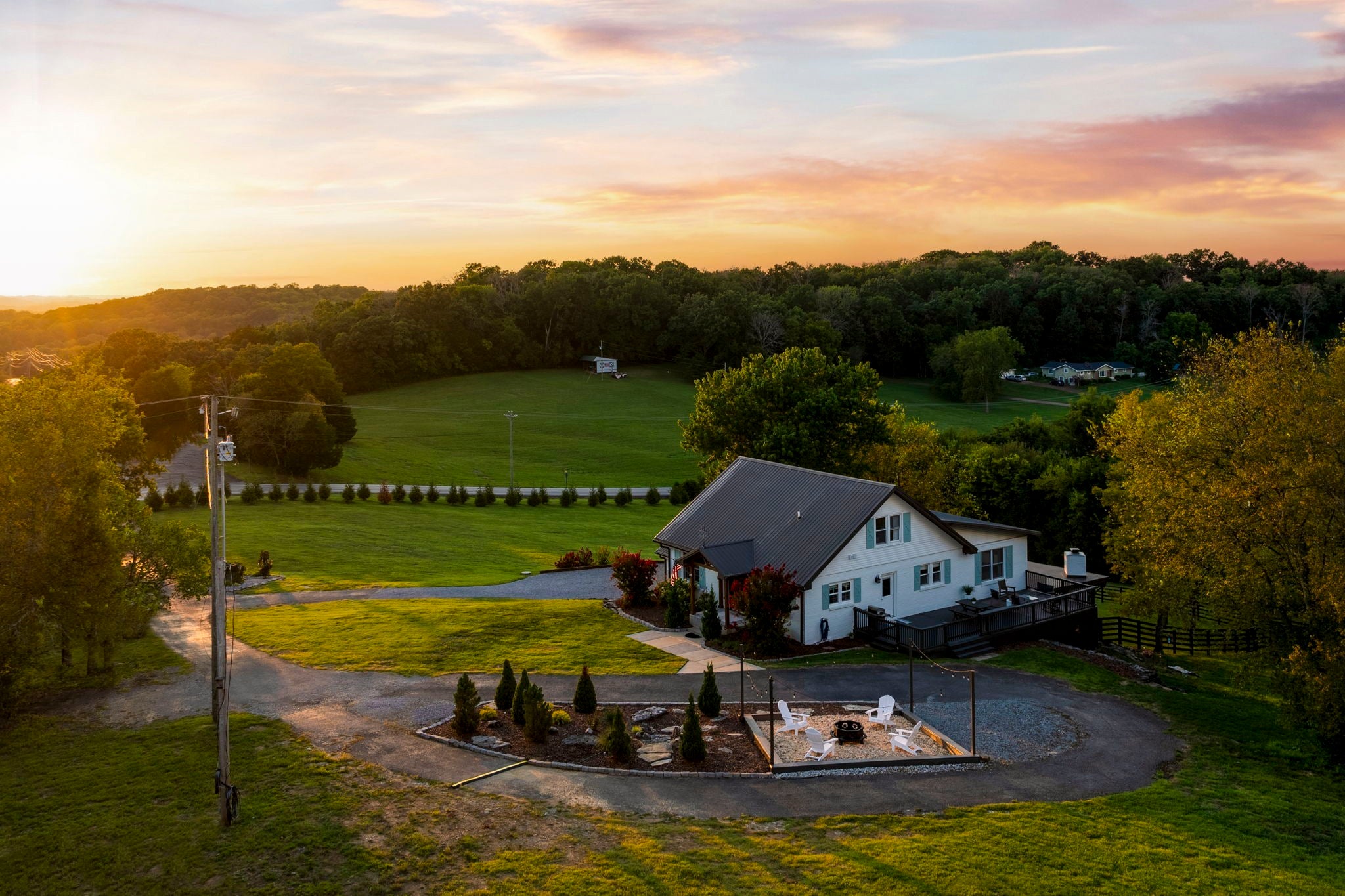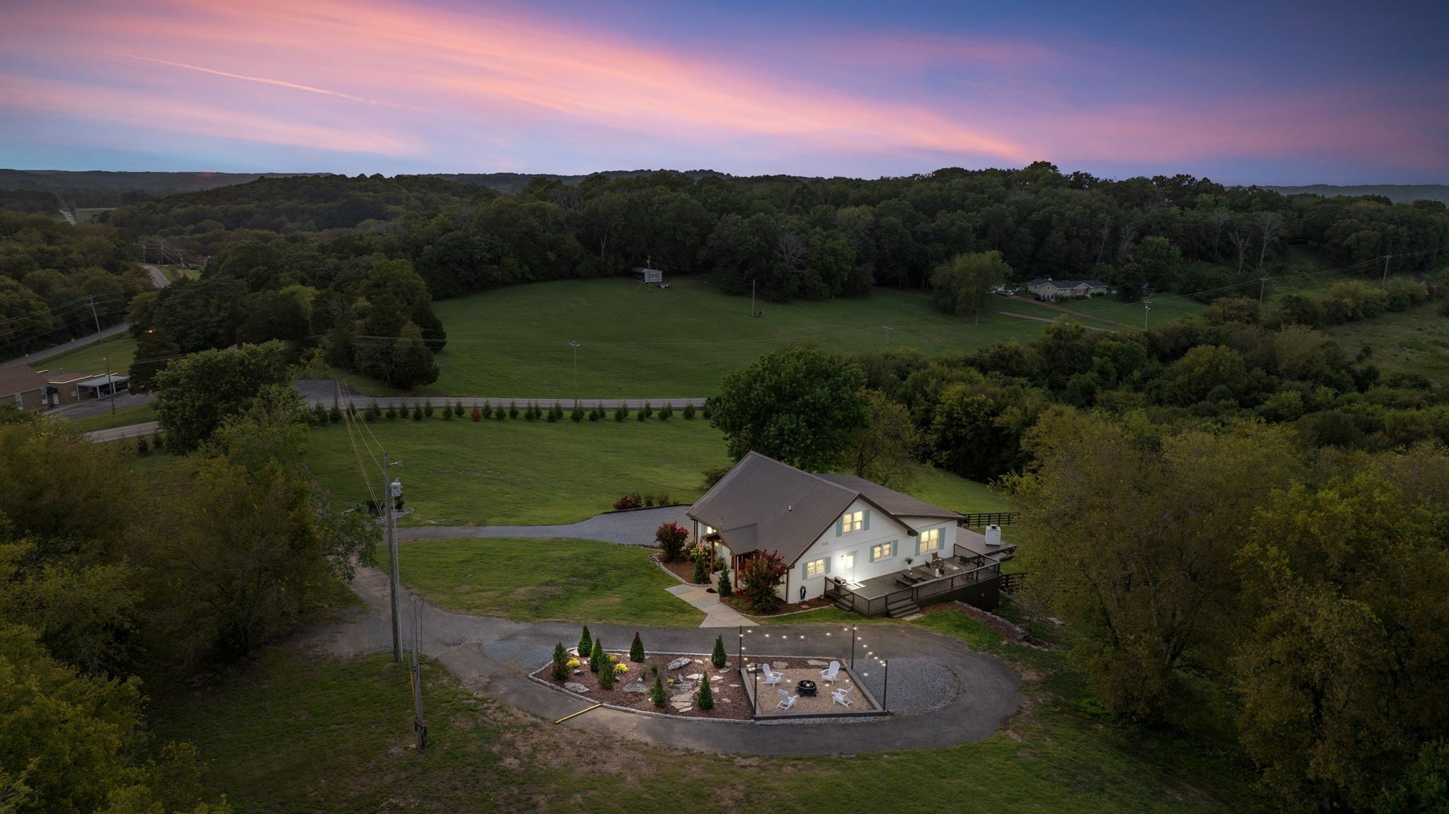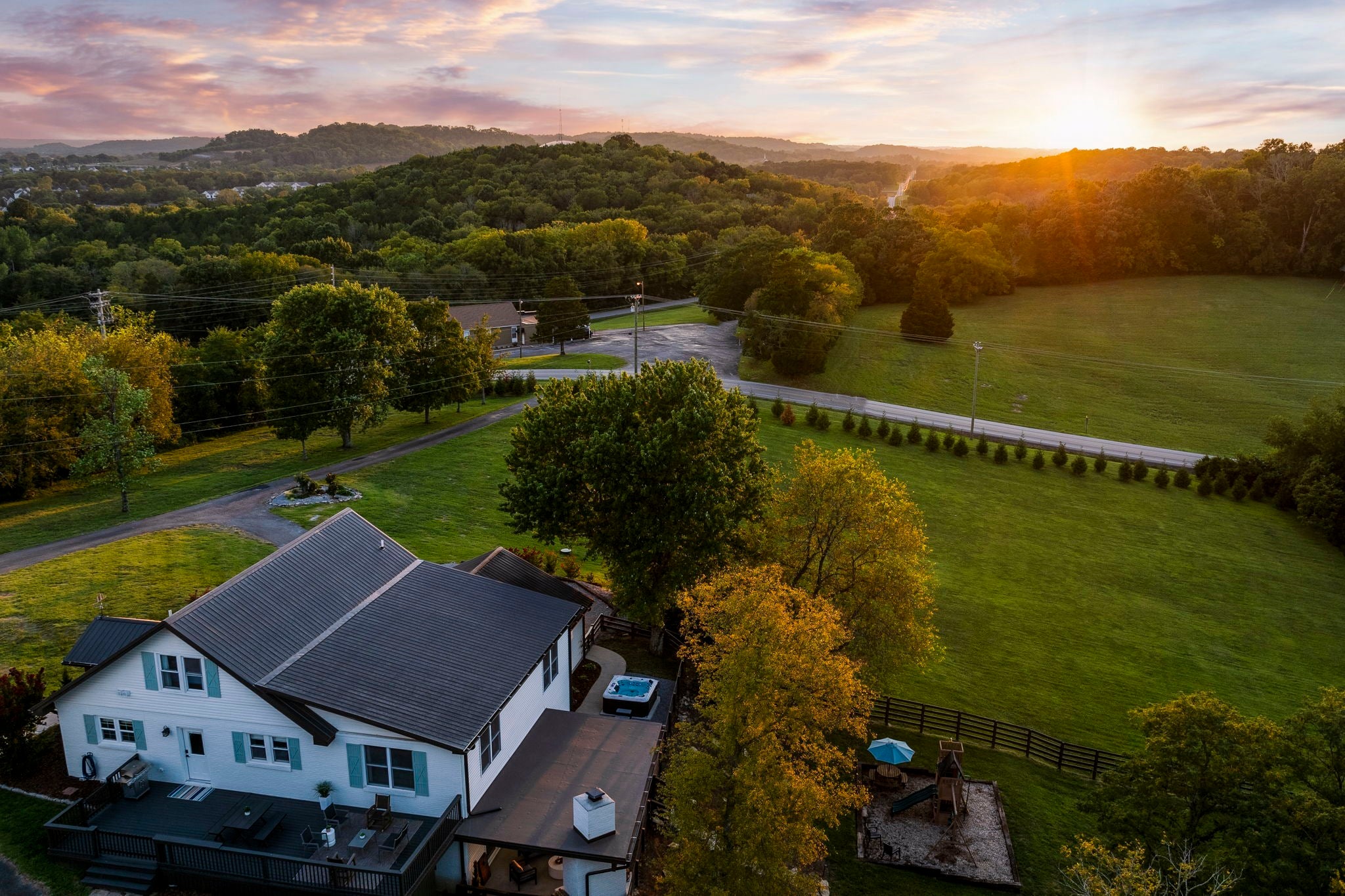 Tucked away on nearly 7 private acres in the rolling hills of Thompson’s Station, this home has 3 bedrooms & 2 flex rooms with WICs. Currently on septic, this home will have access to city sewer in the next couple of years & currently has a sewer reservation. Offering a rare blend of modern luxury, thoughtful design & peaceful Tennessee living—just minutes from Franklin, Leiper’s Fork, & an easy drive to Nashville. Fully renovated in 2024, this 4,000+ sq ft, three-level home has been meticulously updated with over $700K in improvements, creating a true turnkey retreat. From the moment you arrive, the setting feels serene and secluded, with newly planted trees, expansive green space, and room to breathe. Inside, the home unfolds with light-filled spaces designed for both everyday living and effortless entertaining. The main level features a welcoming foyer, formal sitting room & an open-concept living area centered around a fireplace, flowing seamlessly into the updated kitchen with stainless appliances, gas range & ample prep space. The primary suite offers a private escape with a spa-like bath, soaking tub, walk-in shower & custom closet with laundry. Upstairs, 2 additional bedrooms & a beautifully renovated bath provide comfort for guests, along with a cozy reading nook. The fully finished walk-out basement expands the home’s versatility with a 2nd full kitchen, spacious living & dining areas, game room, office nook, two flex spaces & a full bath—ideal for guests, multigenerational living, or entertaining. Custom Nashville-inspired murals add a one-of-a-kind artistic touch. Outdoor living is where this property truly shines. Enjoy a covered patio with a custom brick fireplace, hot tub, expansive deck, lighted fire pit area & a fenced yard with playground—all designed to take in breathtaking sunrises & sunsets. Selling fully furnished with the exception of “What Would Johnny Do?” art, guitar art above bed in basement, Super Mario game & Golden Tee game.