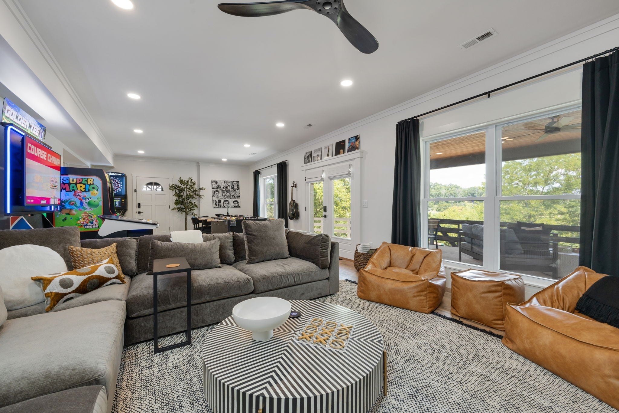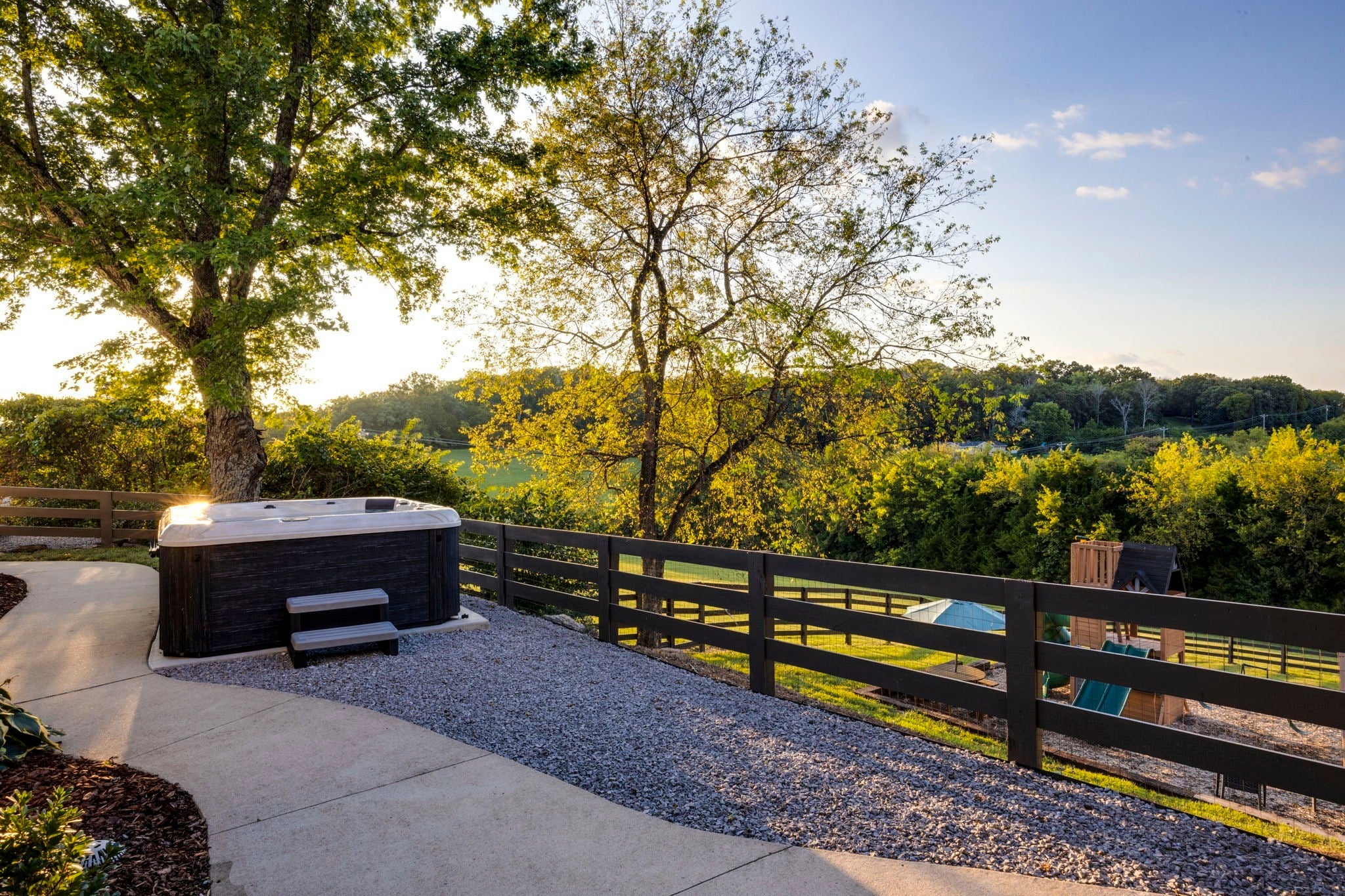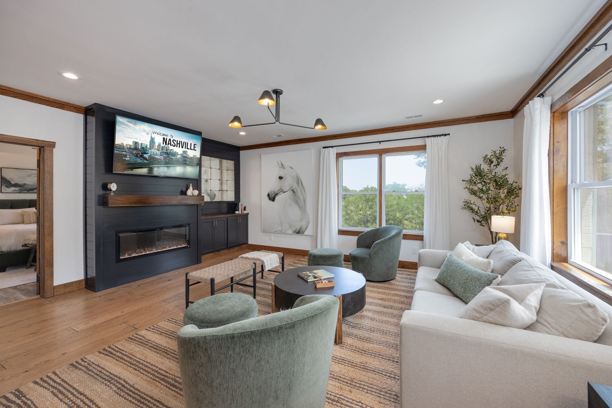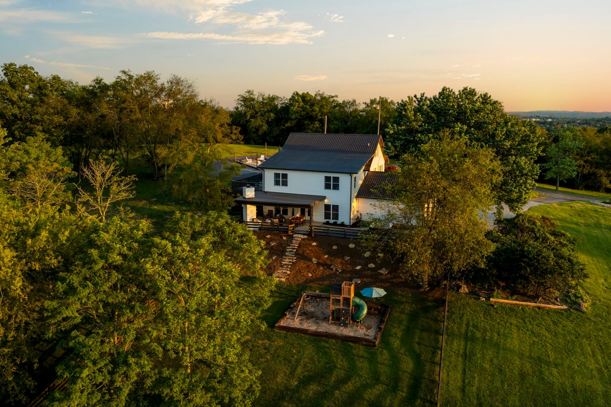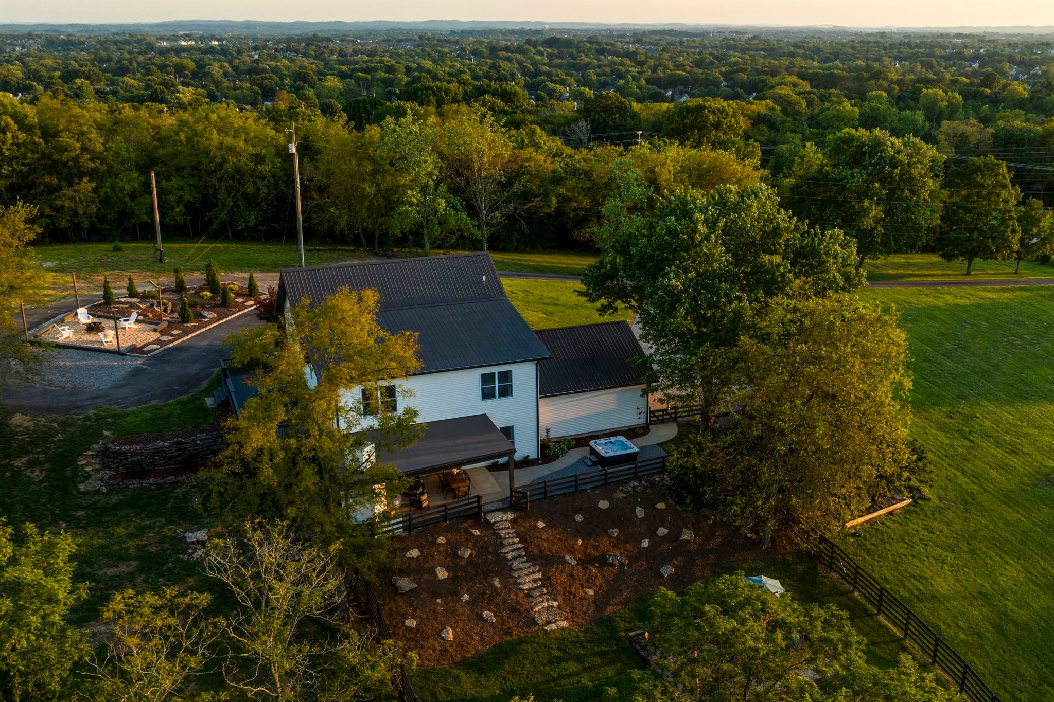 Tucked away on nearly 7 private acres in the rolling hills of Thompson’s Station, this home has 3 bedrooms & 2 flex rooms with WICs. Currently on septic, this home will have access to city sewer in the next couple of years & currently has a sewer reservation. Offering a rare blend of modern luxury, thoughtful design & peaceful Tennessee living—just minutes from Franklin, Leiper’s Fork, & an easy drive to Nashville. Fully renovated in 2024, this 4,000+ sq ft, three-level home has been meticulously updated with over $700K in improvements, creating a true turnkey retreat. From the moment you arrive, the setting feels serene and secluded, with newly planted trees, expansive green space, and room to breathe. Inside, the home unfolds with light-filled spaces designed for both everyday living and effortless entertaining. The main level features a welcoming foyer, formal sitting room & an open-concept living area centered around a fireplace, flowing seamlessly into the updated kitchen with stainless appliances, gas range & ample prep space. The primary suite offers a private escape with a spa-like bath, soaking tub, walk-in shower & custom closet with laundry. Upstairs, 2 additional bedrooms & a beautifully renovated bath provide comfort for guests, along with a cozy reading nook. The fully finished walk-out basement expands the home’s versatility with a 2nd full kitchen, spacious living & dining areas, game room, office nook, two flex spaces & a full bath—ideal for guests, multigenerational living, or entertaining. Custom Nashville-inspired murals add a one-of-a-kind artistic touch. Outdoor living is where this property truly shines. Enjoy a covered patio with a custom brick fireplace, hot tub, expansive deck, lighted fire pit area & a fenced yard with playground—all designed to take in breathtaking sunrises & sunsets. Selling fully furnished with the exception of “What Would Johnny Do?” art, guitar art above bed in basement, Super Mario game & Golden Tee game.