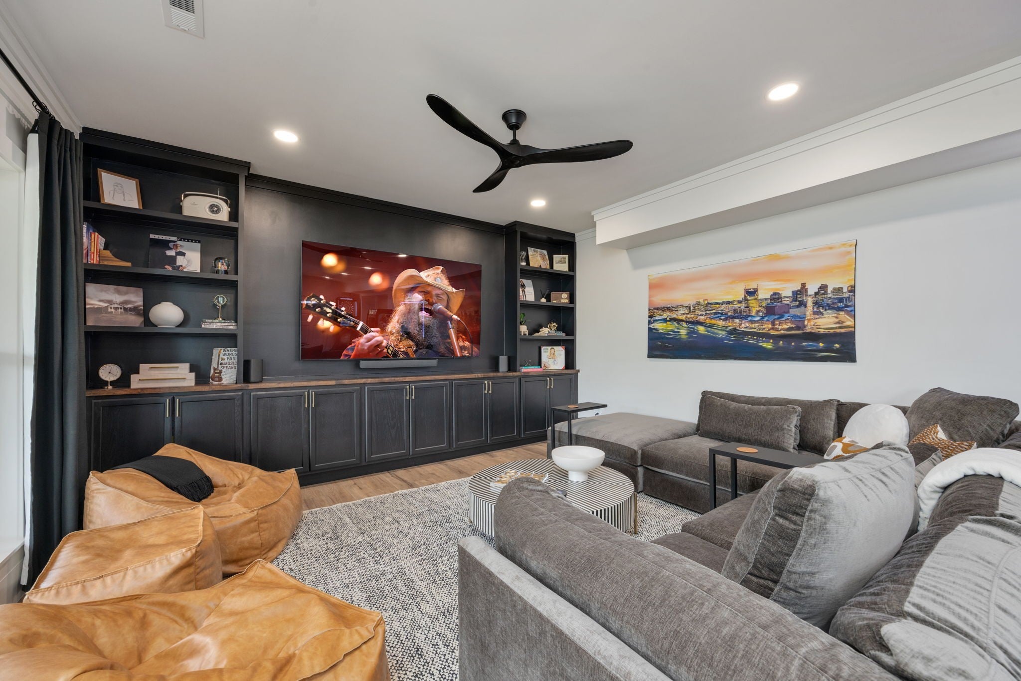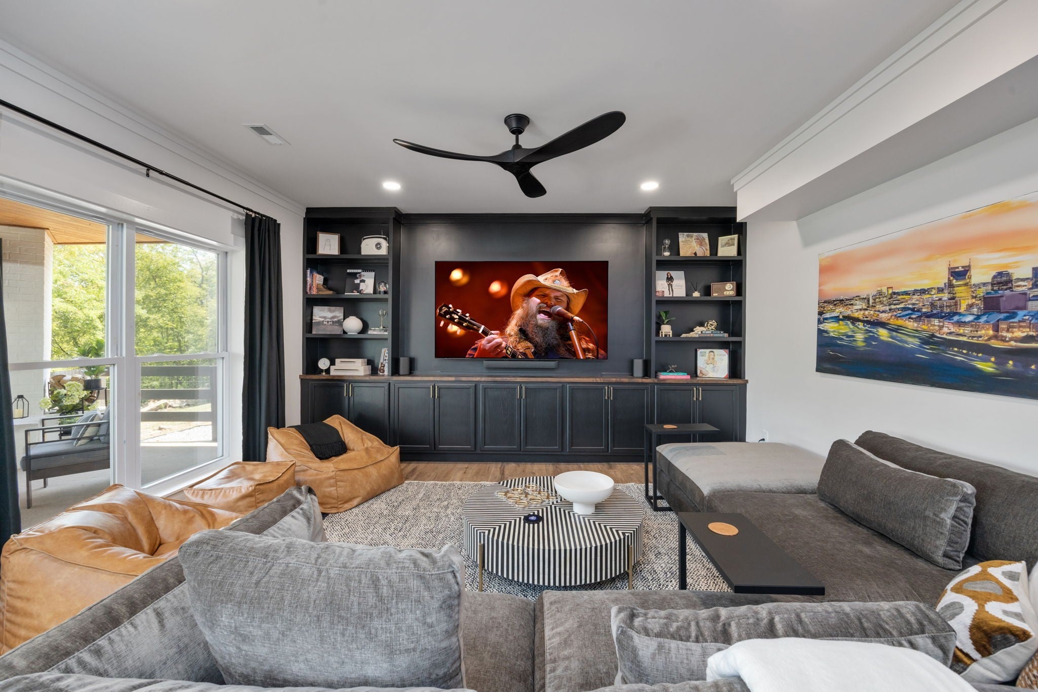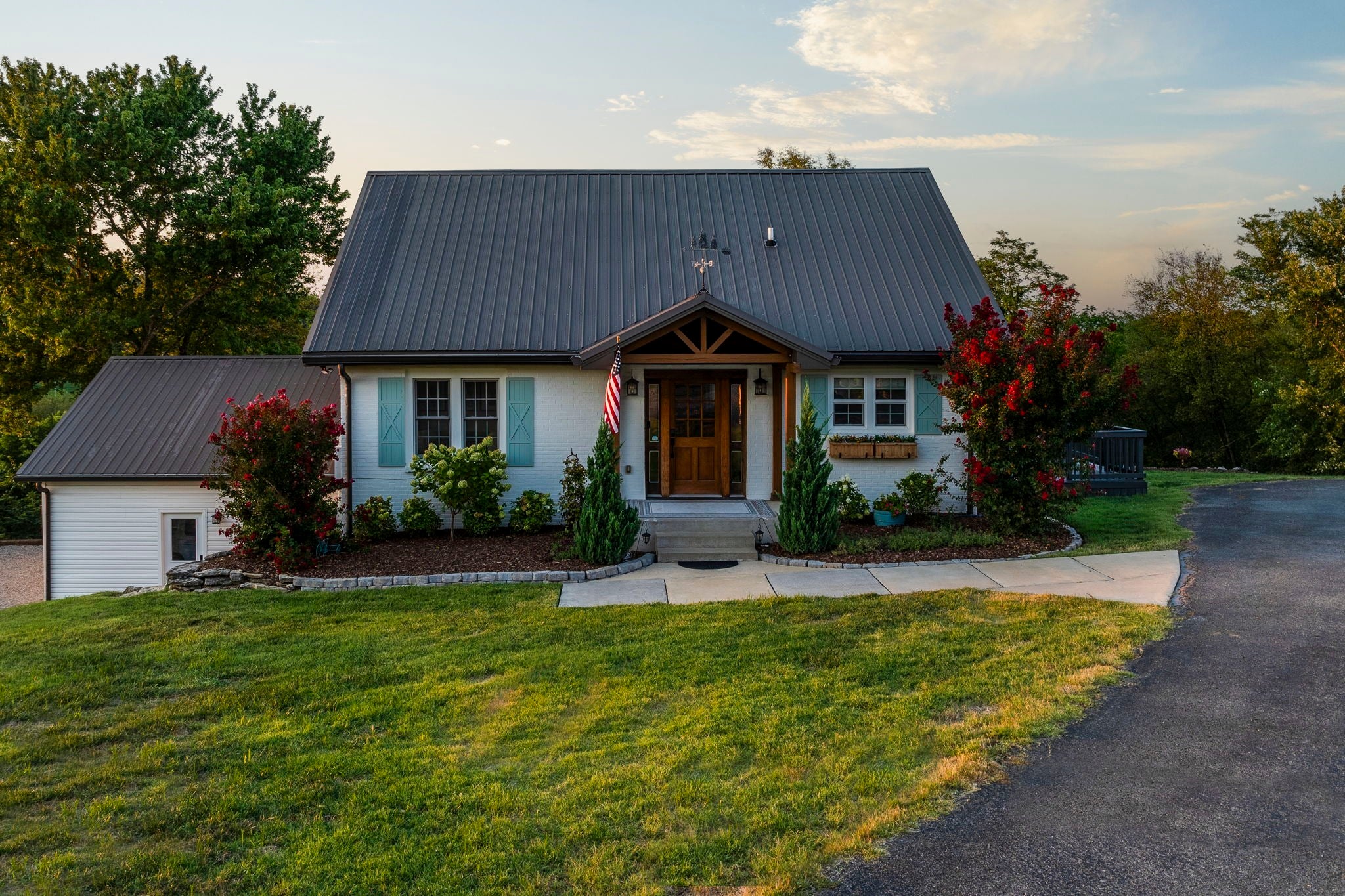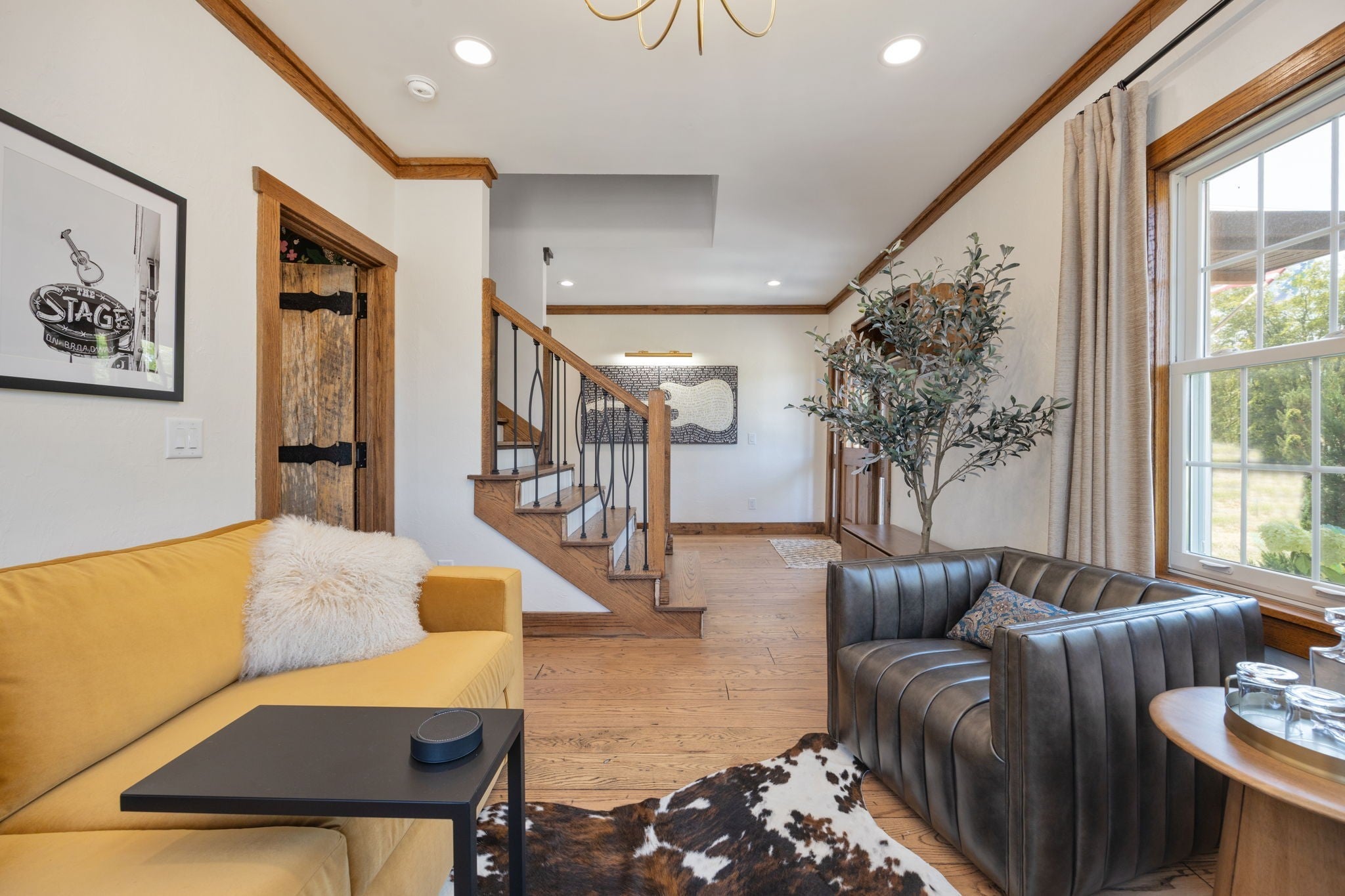 Tucked away on nearly 7 private acres in the rolling hills of Thompson’s Station, this home has 3 bedrooms & 2 flex rooms with WICs. Currently on septic, this home will have access to city sewer in the next couple of years & currently has a sewer reservation. Offering a rare blend of modern luxury, thoughtful design & peaceful Tennessee living—just minutes from Franklin, Leiper’s Fork, & an easy drive to Nashville. Fully renovated in 2024, this 4,000+ sq ft, three-level home has been meticulously updated with over $700K in improvements, creating a true turnkey retreat. From the moment you arrive, the setting feels serene and secluded, with newly planted trees, expansive green space, and room to breathe. Inside, the home unfolds with light-filled spaces designed for both everyday living and effortless entertaining. The main level features a welcoming foyer, formal sitting room & an open-concept living area centered around a fireplace, flowing seamlessly into the updated kitchen with stainless appliances, gas range & ample prep space. The primary suite offers a private escape with a spa-like bath, soaking tub, walk-in shower & custom closet with laundry. Upstairs, 2 additional bedrooms & a beautifully renovated bath provide comfort for guests, along with a cozy reading nook. The fully finished walk-out basement expands the home’s versatility with a 2nd full kitchen, spacious living & dining areas, game room, office nook, two flex spaces & a full bath—ideal for guests, multigenerational living, or entertaining. Custom Nashville-inspired murals add a one-of-a-kind artistic touch. Outdoor living is where this property truly shines. Enjoy a covered patio with a custom brick fireplace, hot tub, expansive deck, lighted fire pit area & a fenced yard with playground—all designed to take in breathtaking sunrises & sunsets. Selling fully furnished with the exception of “What Would Johnny Do?” art, guitar art above bed in basement, Super Mario game & Golden Tee game.