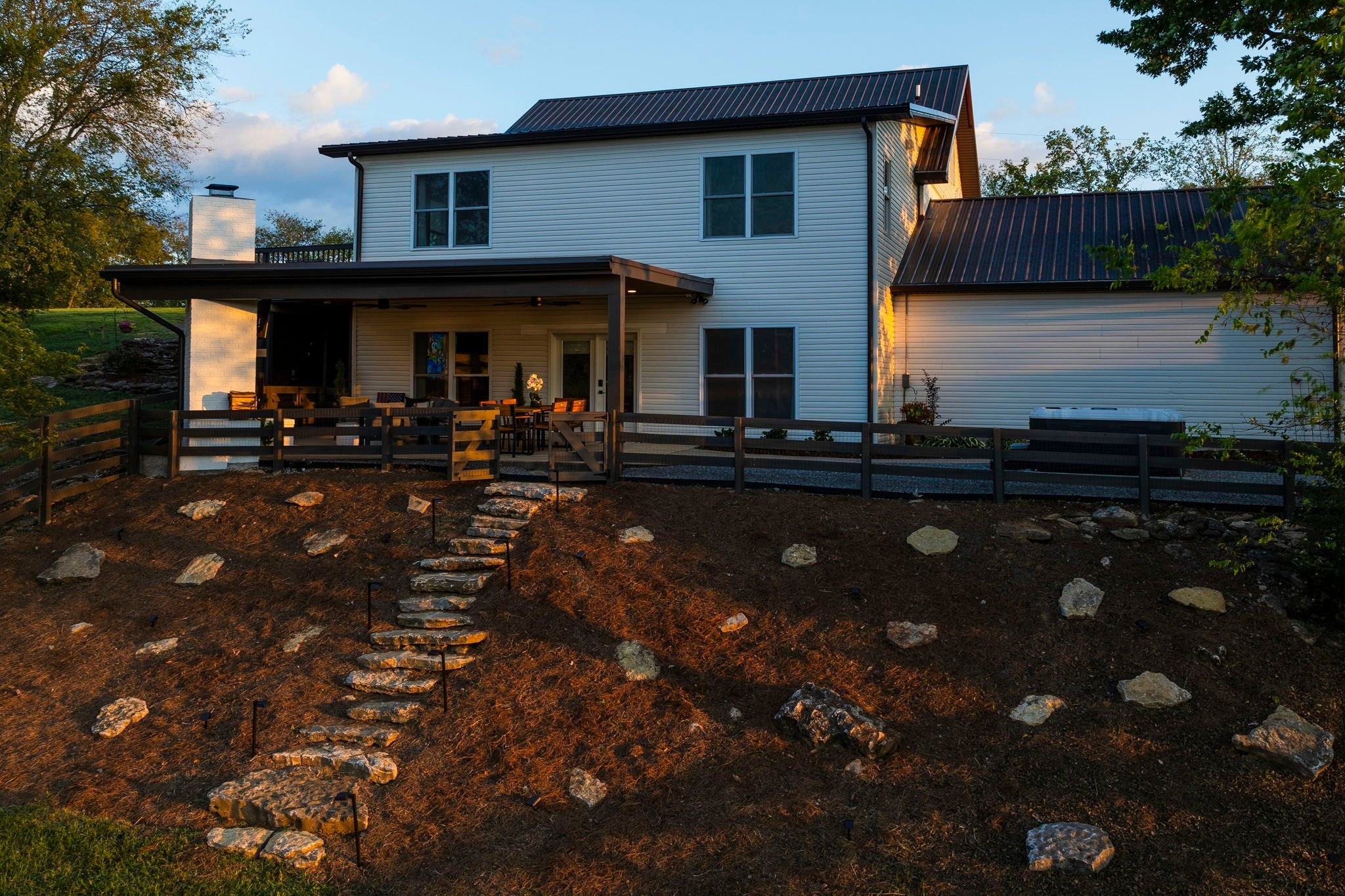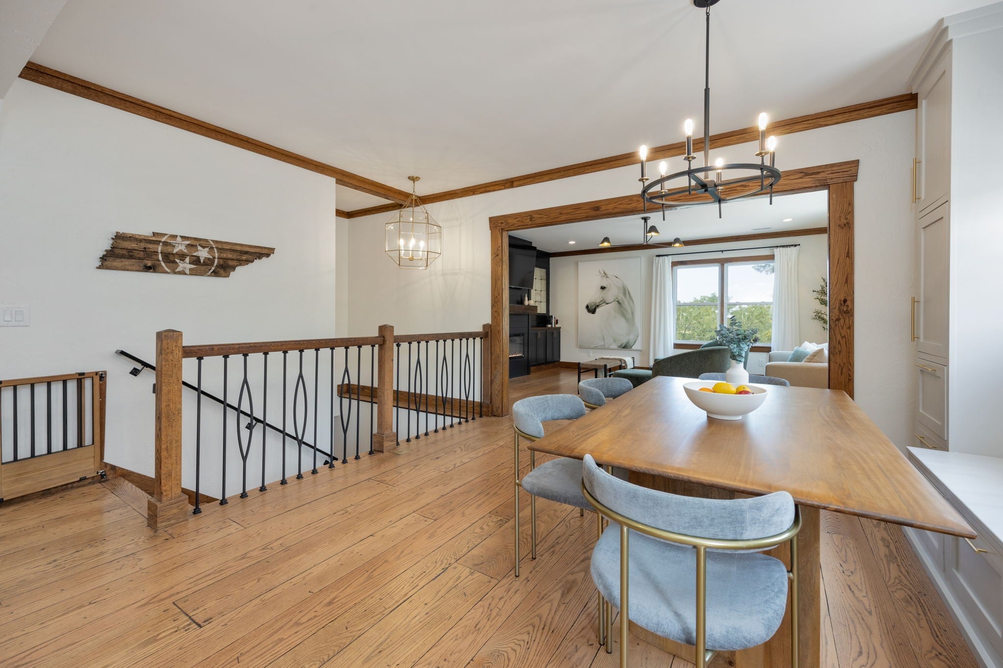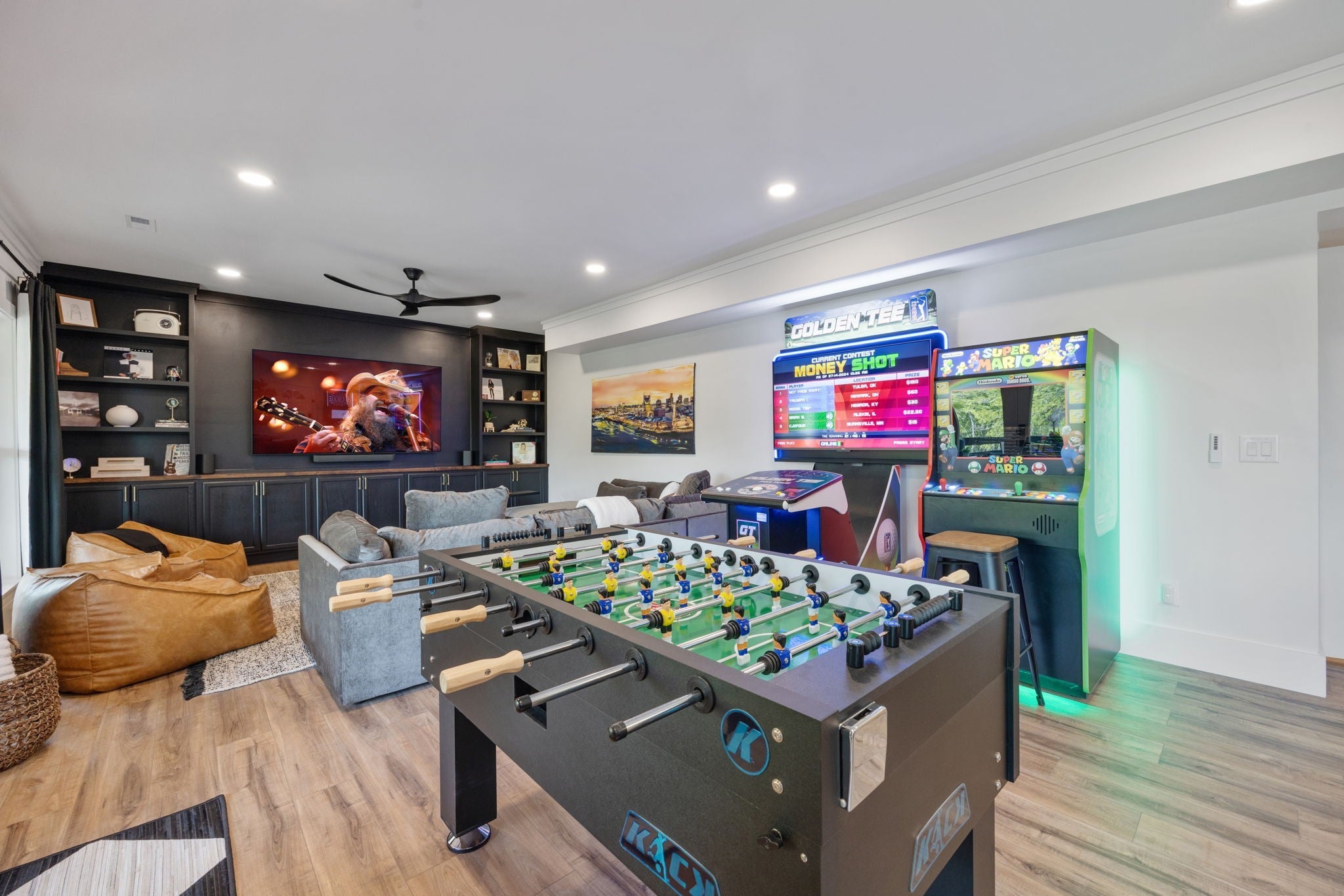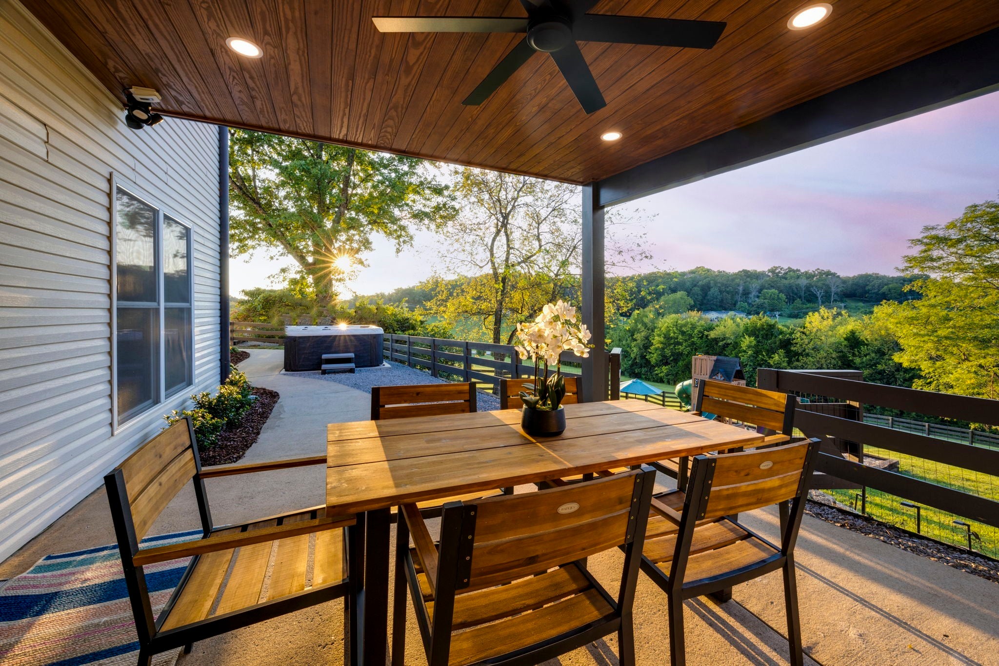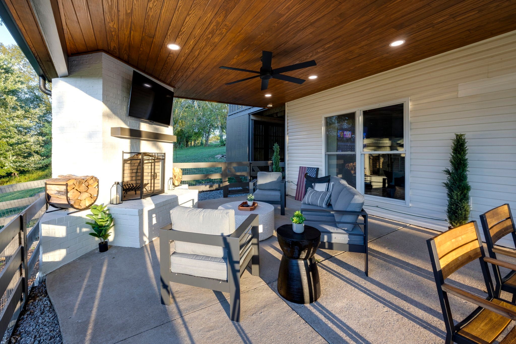 Tucked away on nearly 7 private acres in the rolling hills of Thompson’s Station, this home has 3 bedrooms & 2 flex rooms with WICs. Currently on septic, this home will have access to city sewer in the next couple of years & currently has a sewer reservation. Offering a rare blend of modern luxury, thoughtful design & peaceful Tennessee living—just minutes from Franklin, Leiper’s Fork, & an easy drive to Nashville. Fully renovated in 2024, this 4,000+ sq ft, three-level home has been meticulously updated with over $700K in improvements, creating a true turnkey retreat. From the moment you arrive, the setting feels serene and secluded, with newly planted trees, expansive green space, and room to breathe. Inside, the home unfolds with light-filled spaces designed for both everyday living and effortless entertaining. The main level features a welcoming foyer, formal sitting room & an open-concept living area centered around a fireplace, flowing seamlessly into the updated kitchen with stainless appliances, gas range & ample prep space. The primary suite offers a private escape with a spa-like bath, soaking tub, walk-in shower & custom closet with laundry. Upstairs, 2 additional bedrooms & a beautifully renovated bath provide comfort for guests, along with a cozy reading nook. The fully finished walk-out basement expands the home’s versatility with a 2nd full kitchen, spacious living & dining areas, game room, office nook, two flex spaces & a full bath—ideal for guests, multigenerational living, or entertaining. Custom Nashville-inspired murals add a one-of-a-kind artistic touch. Outdoor living is where this property truly shines. Enjoy a covered patio with a custom brick fireplace, hot tub, expansive deck, lighted fire pit area & a fenced yard with playground—all designed to take in breathtaking sunrises & sunsets. Selling fully furnished with the exception of “What Would Johnny Do?” art, guitar art above bed in basement, Super Mario game & Golden Tee game.