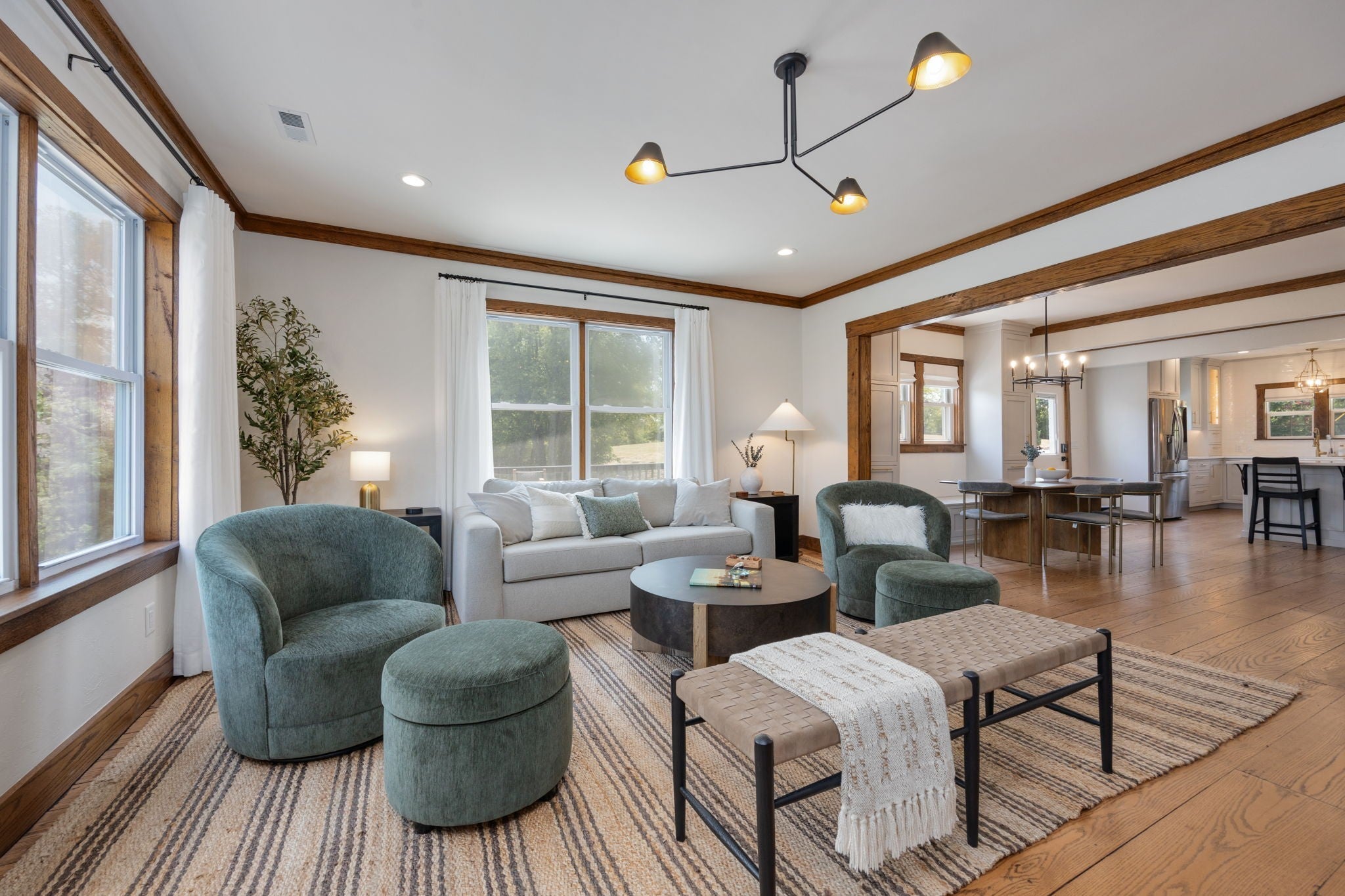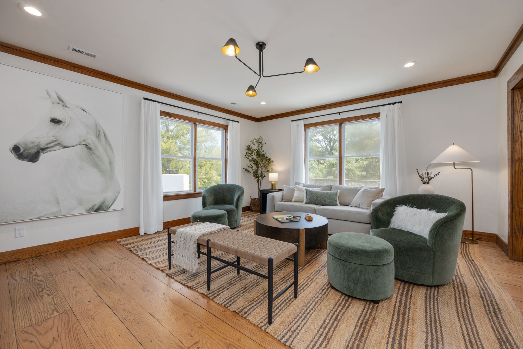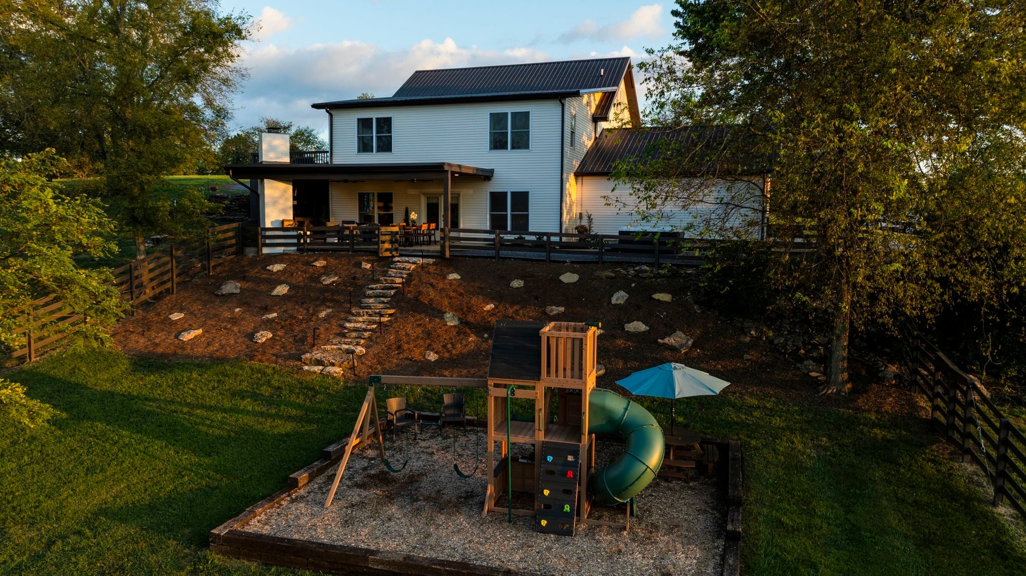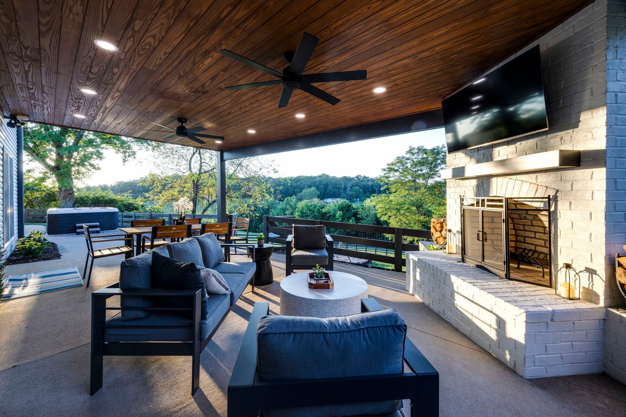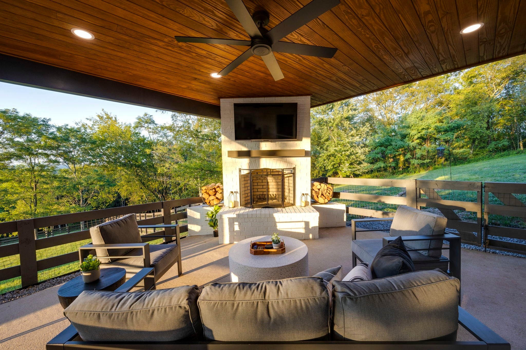 Tucked away on nearly 7 private acres in the rolling hills of Thompson’s Station, this home has 3 bedrooms & 2 flex rooms with WICs. Currently on septic, this home will have access to city sewer in the next couple of years & currently has a sewer reservation. Offering a rare blend of modern luxury, thoughtful design & peaceful Tennessee living—just minutes from Franklin, Leiper’s Fork, & an easy drive to Nashville. Fully renovated in 2024, this 4,000+ sq ft, three-level home has been meticulously updated with over $700K in improvements, creating a true turnkey retreat. From the moment you arrive, the setting feels serene and secluded, with newly planted trees, expansive green space, and room to breathe. Inside, the home unfolds with light-filled spaces designed for both everyday living and effortless entertaining. The main level features a welcoming foyer, formal sitting room & an open-concept living area centered around a fireplace, flowing seamlessly into the updated kitchen with stainless appliances, gas range & ample prep space. The primary suite offers a private escape with a spa-like bath, soaking tub, walk-in shower & custom closet with laundry. Upstairs, 2 additional bedrooms & a beautifully renovated bath provide comfort for guests, along with a cozy reading nook. The fully finished walk-out basement expands the home’s versatility with a 2nd full kitchen, spacious living & dining areas, game room, office nook, two flex spaces & a full bath—ideal for guests, multigenerational living, or entertaining. Custom Nashville-inspired murals add a one-of-a-kind artistic touch. Outdoor living is where this property truly shines. Enjoy a covered patio with a custom brick fireplace, hot tub, expansive deck, lighted fire pit area & a fenced yard with playground—all designed to take in breathtaking sunrises & sunsets. Selling fully furnished with the exception of “What Would Johnny Do?” art, guitar art above bed in basement, Super Mario game & Golden Tee game.