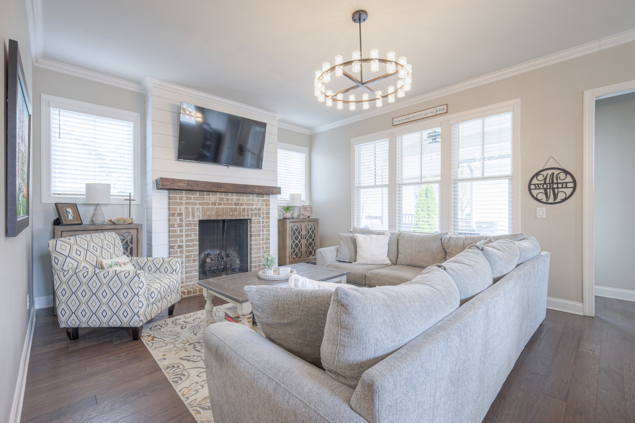 The builder’s home on a quiet neighborhood corner lot in Lockwood Glen featuring a main level primary suite, open floor plan, bonus room, and exceptional indoor outdoor living in one of Franklin’s most convenient locations. Positioned on a corner lot with alley access, this home offers added privacy, thoughtful design, and strong curb appeal, with gas lanterns at the front entry creating a warm and welcoming first impression. Inside, abundant windows fill the home with natural light, enhancing the open concept layout designed for the way people live today. The spacious living room, centered around a gas fireplace, flows seamlessly into the kitchen, where a gas stovetop, tiled backsplash, large island with storage, and bar seating create a space that is both functional and inviting, complemented by a walk in pantry with custom wood shelving. The main level primary suite offers comfort and convenience with a custom closet featuring built in drawers and cabinetry and a subway tiled bath. Upstairs, the vaulted bonus room with a door is intentionally positioned above the kitchen rather than bedrooms, making it ideal for movie nights, game days, or a private retreat, with a carpeted stair runner adding comfort and style and an additional flex space offering options for a home office, workout room, or extra storage. Outdoor living extends naturally from the home with a covered back patio, outdoor prep and built in grill area, and a private fenced backyard with a tree lined setting, while alley access leads to an oversized two car garage with additional storage. Additional features include a crawl space foundation, wood shelving in pantry and closets, and a brand new roof. Residents of Lockwood Glen enjoy HOA amenities including a community pool, clubhouse, walking trails, playground, and sidewalks, and the home is ideally located directly across from the future Pearlene Park
