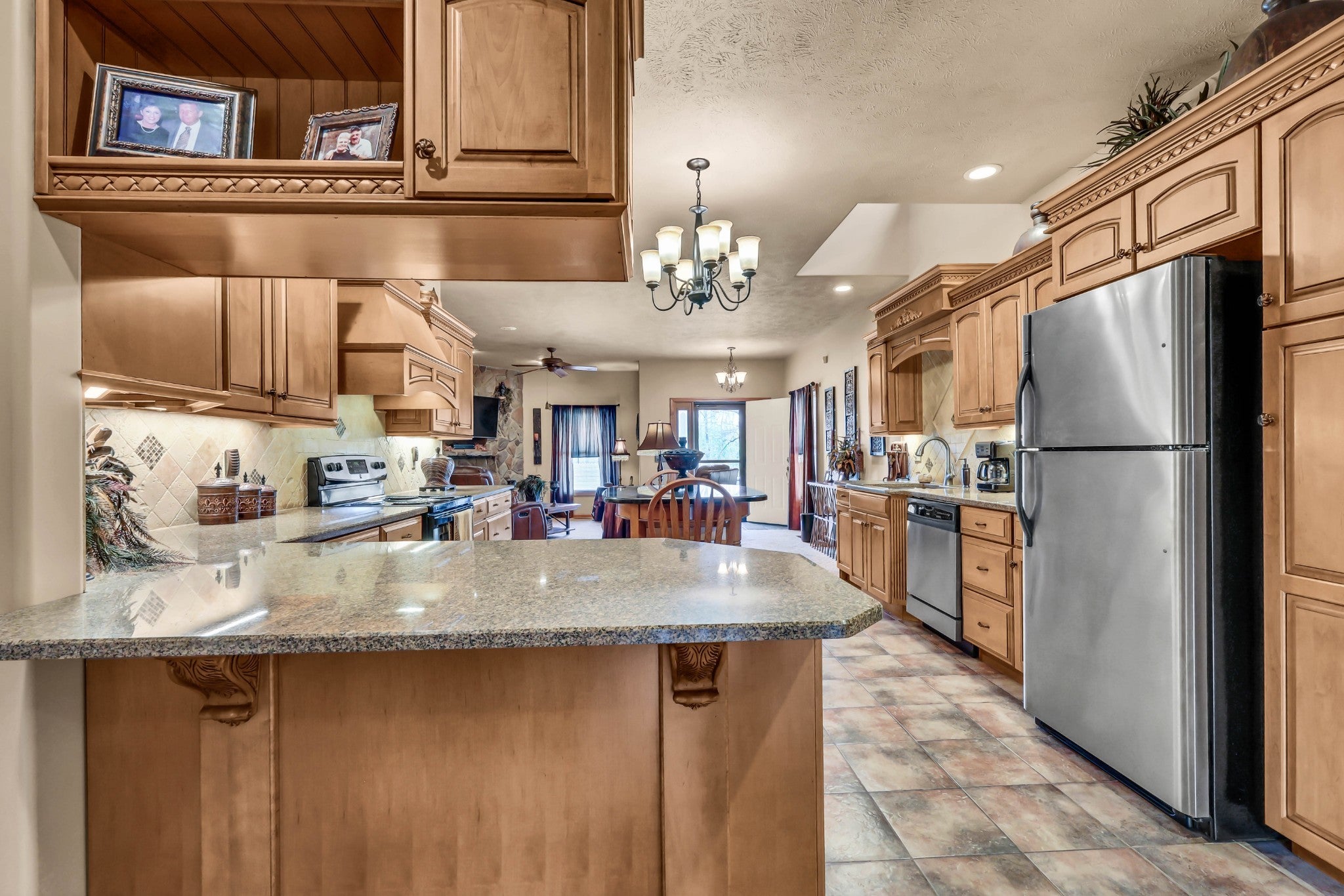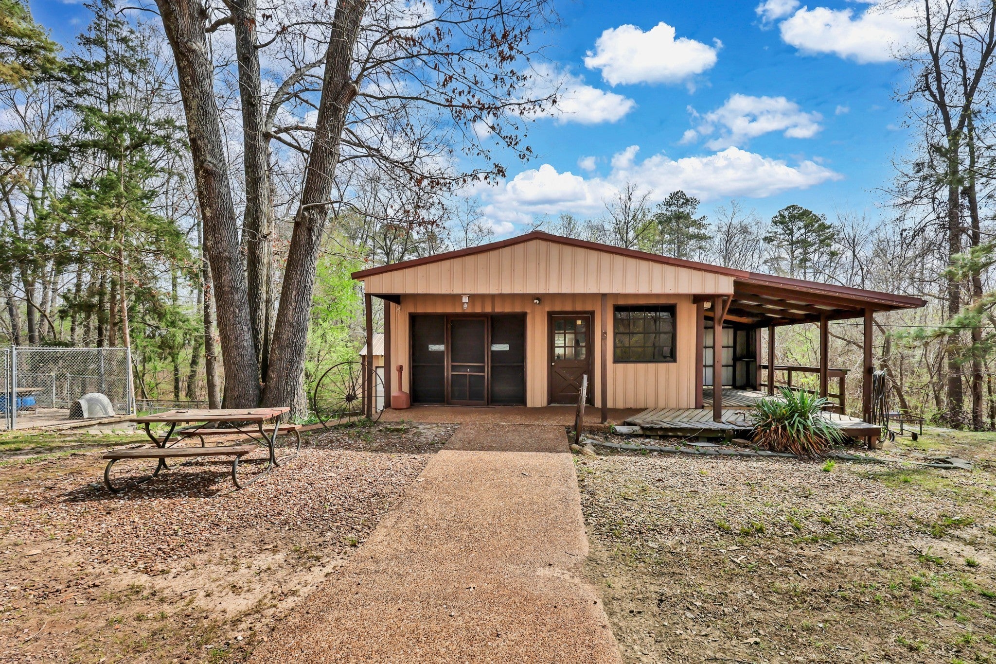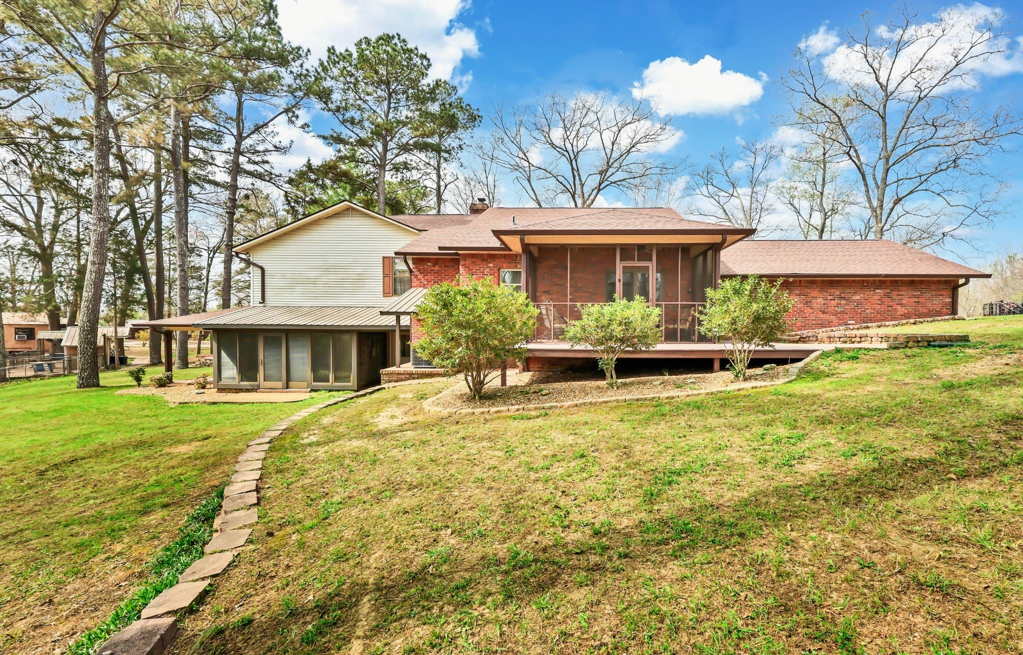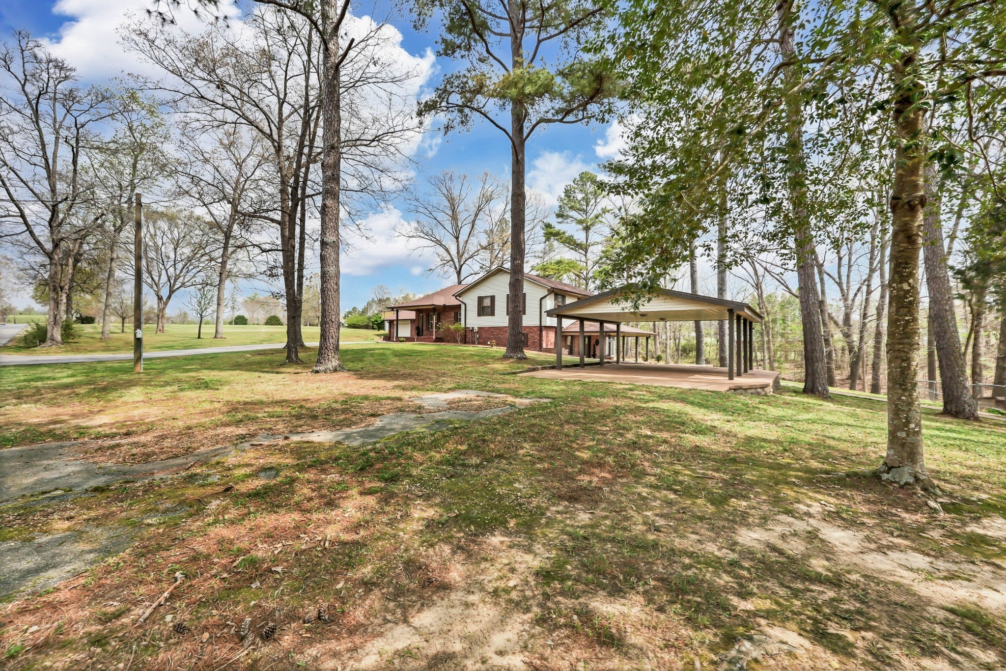 Enjoy peace and privacy on 20.8 secluded acres just minutes from Kentucky Lake. This well cared for home offers 4 bedrooms 3 full baths and a partially finished basement, providing plenty of space for family and guests. Custom designed main level kitchen complete with granite countertops, stylish tile backsplash, eating bar, pantry space, and an abundance of cabinets with pull-out features for maximum functionality. Inviting living room showcases a gorgeous stone gas fireplace as the centerpiece. Ideal for multi-generational living, the basement boasts a full kitchen, dinette area off the den and a full bath. Property includes a 40x30 metal building with propane heat and finished office space, along with a 30x24 outbuilding featuring a full kitchen, oven, stove top, a/c unit, half bath w/electric water heater, wood stove and roll up door. Perfect for pets, featuring expansive dog runs, a fenced area for dog house. Mostly Locust is a private drive, easement to 160 Mostly Locust Dr will convey.
