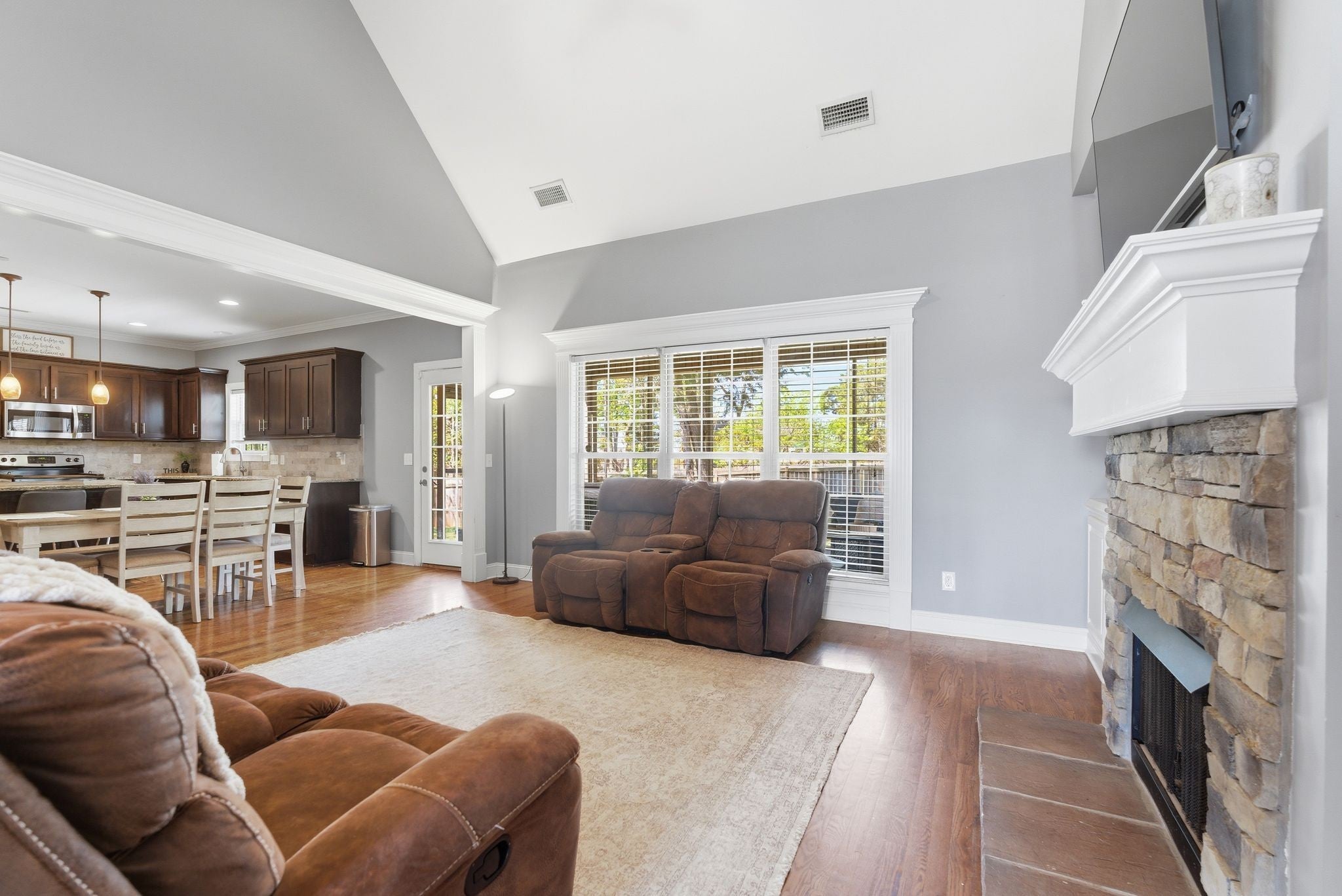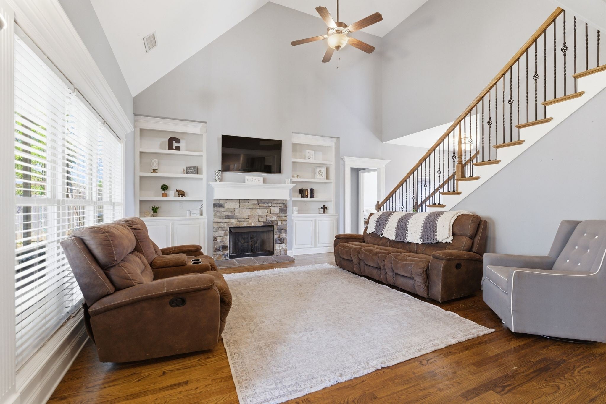 Amazing Home! Move-in ready. Professionally landscaped and covered front porch. Open floor plan concept, spacious family room with fireplace and bookcases on each side. Beautiful kitchen with island, stainless appliances, granite countertops. Two bedrooms on the main level, including primary suite with soaking tub, separate shower, double vanities. Upstairs boasts two large bedrooms, full bath and a huge rec room. Enjoy outdoor living with a screened in back porch and additional concrete patio overlooking a privacy fence for entertaining or day to day living! Situated at the end of a cul-de-sac. No HOA. Private neighborhood tucked away and close to Mt. Juliet, Smyrna and Murfreesboro. This home provides comfort, space and convenience! A MUST SEE!!