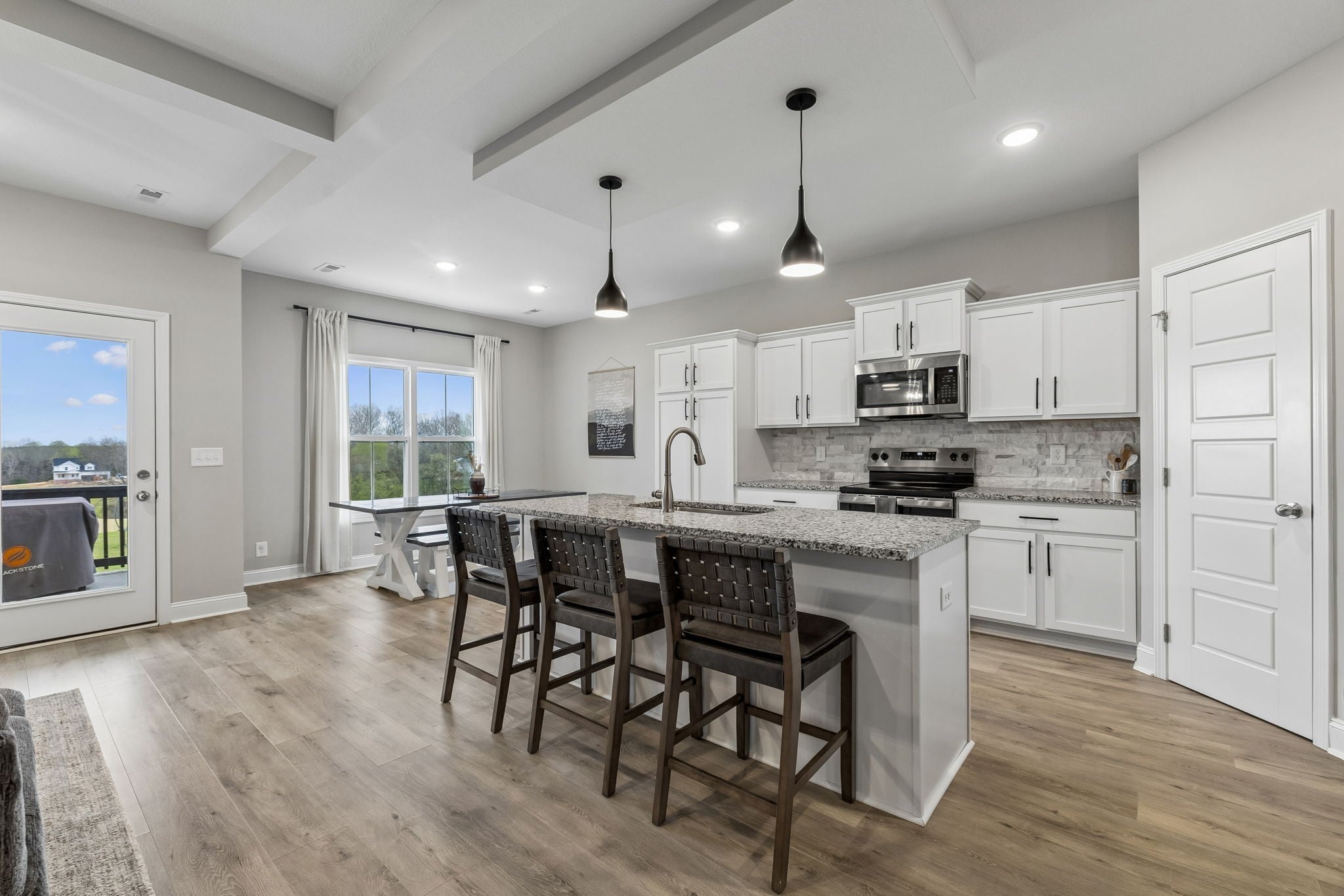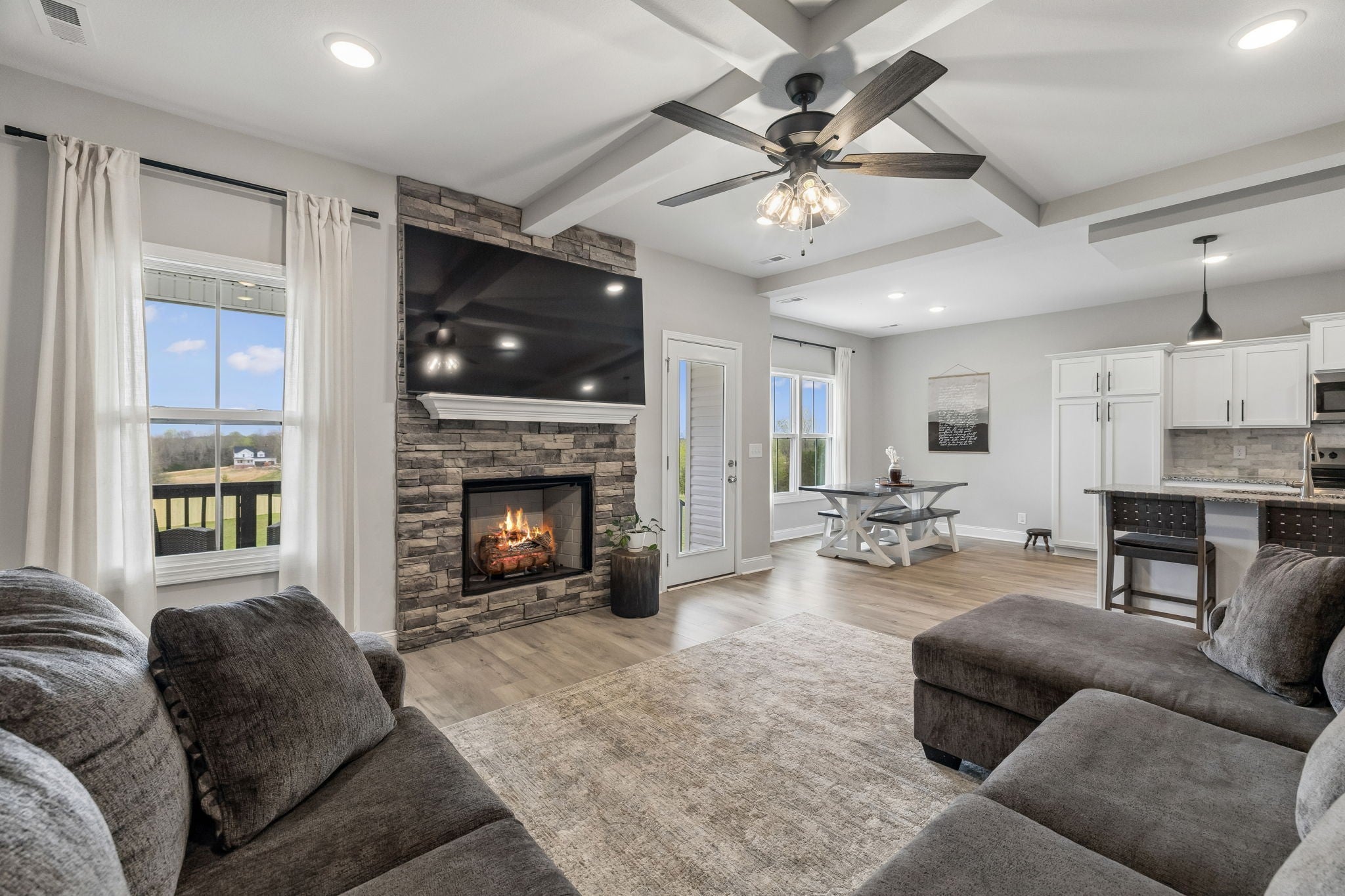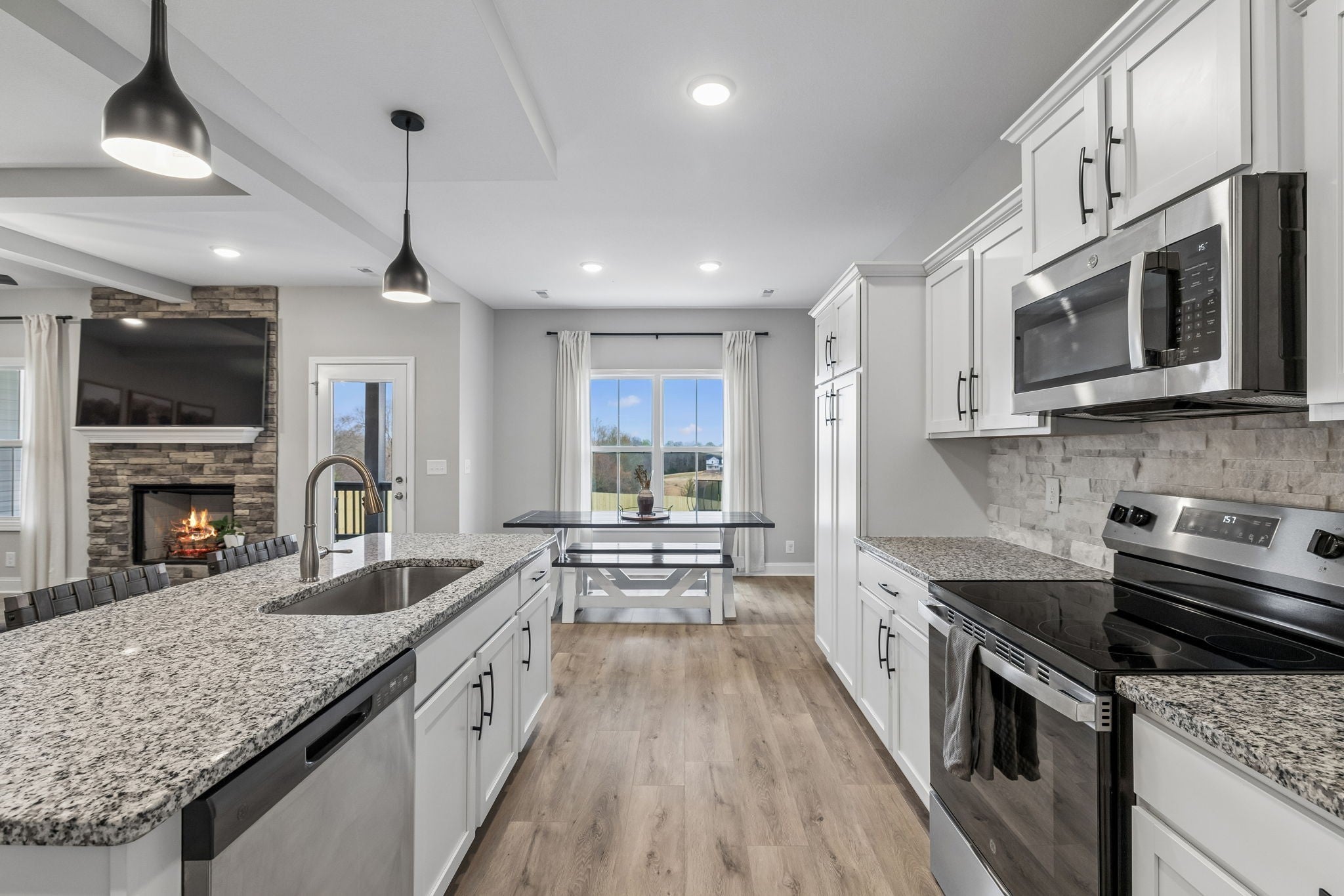 You will LOVE THIS FUNCTIONAL FLOOR PLAN that is zoned for the DESIRED Montgomery Central Schools + a short commute to Clarksville (20 mins) / Nashville (45 miles) -- 4 beds 3 baths TWO CAR GARAGE and just under 2,500 sqft!! Primary bedroom suite on MAIN LEVEL + an additional guest bedroom + full bathroom (perfect for little ones, guest room, home office, or a nursery).. other two bedrooms, a full bath, and the dedicated BONUS SPACE located upstairs || NO HOA HERE and NO CITY TAXES !! ||... PRIMARY BEDROOM features: large room with a private bathroom w/ double sink vanity, great cabinet storage, LUXE SPA WORTHY SHOWER, and HUGE walk-in closet that leads into the laundry room = TOTAL CONVENIENCE..!!! The kitchen has LARGE ISLAND, granite countertops, plenty of cabinet storage, a coffee bar, and walk in closet pantry.. DEDICATED DINING SPACE ... the LIVING ROOM will fit your large L shape couch perfectly in front of the cozy FIREPLACE!! || Other fun features to note include a BUILT IN DOG HOUSE for your furry friends under the stairs!! and a mud room to put your bags/shoes in beside the garage! Plenty of storage & linen closets throughout... LOTS OF STORAGE in the WALK IN ATTIC || ** JUST UNDER 2 ACRE YARD .. SPACE to roam + make a personalized back yard oasis.. room for your future shop plans here !!! Fantastic covered patio just off the kitchen/ living space perfect for hosting / patio lounge furniture and an uncovered patio section for grilling! and yes, you can have CHICKENS here!! ... || Utilities Include: City water, septic, High Speed Internet || .. This LOCATION LOCATION is perfect for Clarksville, Dickson, Ashland City, or NASHVILLE COMMUTERS || ... SCHOOL ZONE for HIGHLY DESIRED MONTGOMERY CENTRAL schools! Montgomery Central Elementary is aTN REWARD SCHOOL (one of the top distinctions a school can earn in TN) /// *** If you are looking for a newer build, large sqft / 4 bedrooms + bonus, and a large yard with quiet country living THIS IS IT!!!! ***