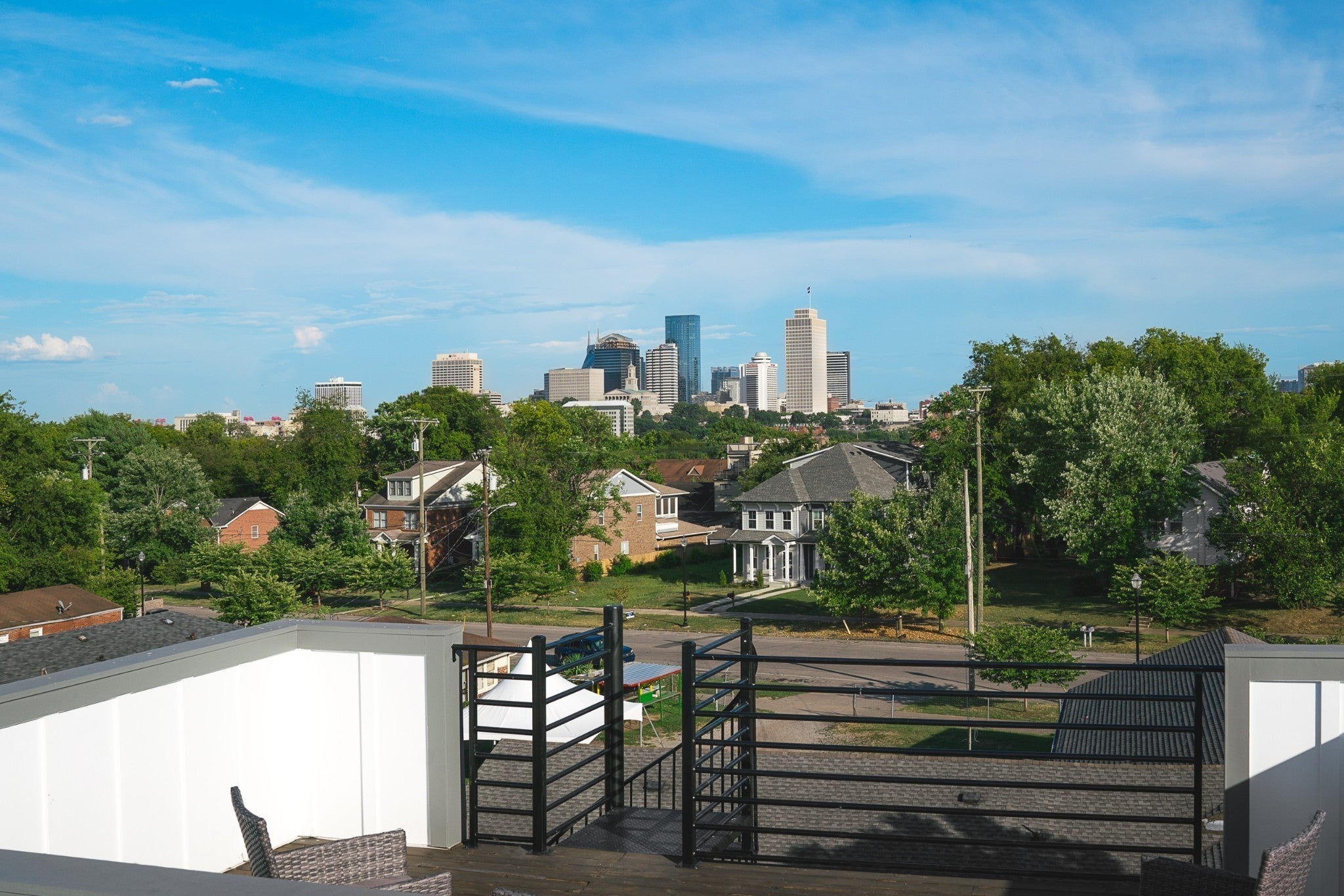 DEAL ALERT! Get 4000sq ft & 2 car garage for the price of 3000 sq ft AND live adjacent to Germantown in Historic Buena Vista with downtown views. NOT AN HPR TALL SKINNY-no shared lot or walls! Skyline views from TWO rooftop decks designed for entertaining and walkable to top-rated Germantown restaurants, bars, and coffee shops or have game night at Sounds Stadium, or jump on the bike path just steps from your door to go to all the downtown hotspots. Get in this pocket early before the pedestrian/bike bridge in Germantown links North Nashville to the forthcoming Oracle campus and East Bank along the Cumberland River. There's even a neighborhood community association to join. Thoughtfully designed, the home features 10-ft ceilings, hardwood floors, quartz and granite countertops, coffered ceilings, and abundant trim work. Enjoy three ensuite bedrooms, including two primary suites, plus a third-floor rec room with a wet bar—perfect for entertaining. Work-from-home? The layout is ideal for privacy and productivity with an ofice on the main level or make it the guest bedroom (bath access). Pet-ready, the fully fenced yard with backyard turf offers low-maintenance yard year-round and a Rainbird irrigation zone system takes care of flower beds and the front yard. Plus, an attached 2-car garage adds convenience and more storage. Shows great and needs to be experienced in person.