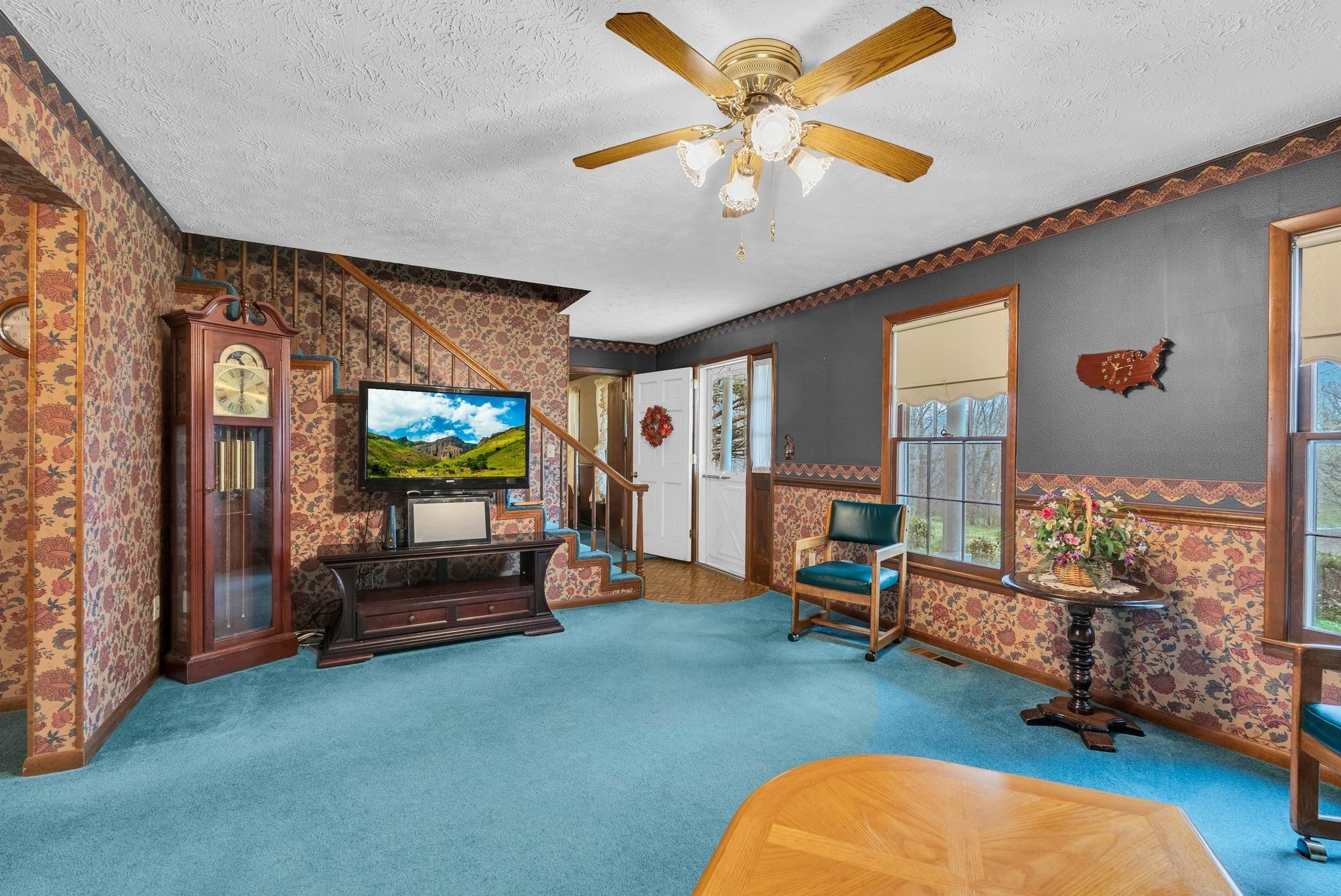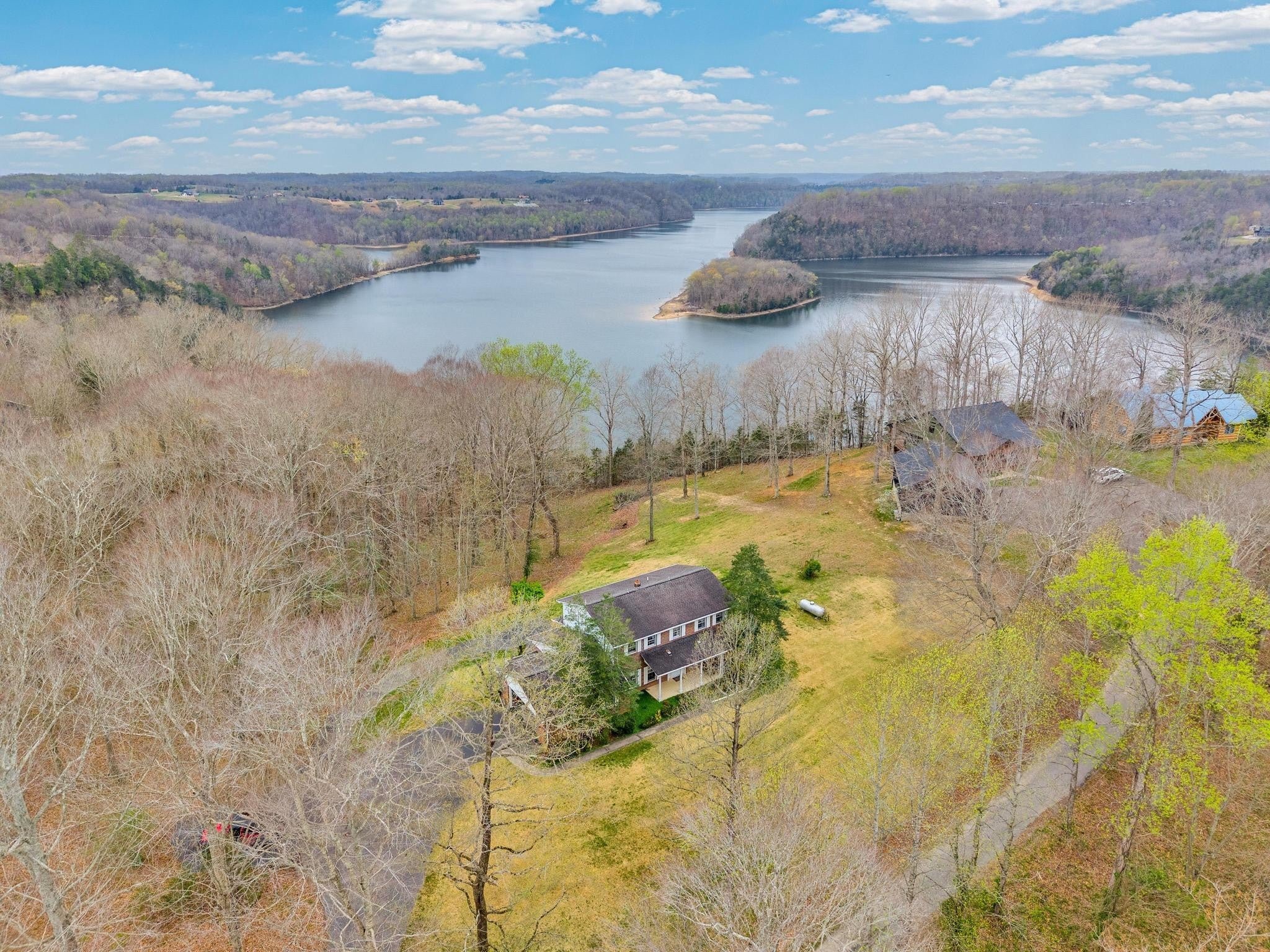 Experience the perfect blend of timeless elegance and lakeside serenity at 99 Hilltop Lane in Byrdstown. This striking Victorian-style estate is situated on 3.45 sprawling acres, offering an unrivaled vantage point with breathtaking views overlooking the famous "Duck Head" of Dale Hollow Lake. The home boasts 2,340 square feet of living space across five spacious bedrooms and two bathrooms, providing ample room for family and guests alike. For those seeking even more utility, the 1,120-square-foot walkout basement is partially finished and offers incredible potential for a custom recreation area, home gym, or additional living quarters. Beyond its charming architecture, this property is designed for both comfort and peace of mind, featuring a dedicated tornado room in the basement for ultimate safety. The exterior is a private sanctuary, complete with a picturesque spring-fed pond and plenty of room to roam. Vehicle and hobby storage are a breeze with a two-car attached garage on the main level, complemented by an additional one-car garage in the basement area—perfect for a workshop or secure storage. Located just a stone's throw from the Kentucky border, this home offers the best of both states. Water enthusiasts will appreciate the proximity to nearby docking facilities and professional boat storage, making it effortless to enjoy the crystal-clear waters of Dale Hollow. To make this transition even more seamless, the current owners are offering select furnishings as an optional inclusion for the new buyer. Don't miss this rare opportunity to own a piece of Victorian charm in one of the most scenic locations on the lake.