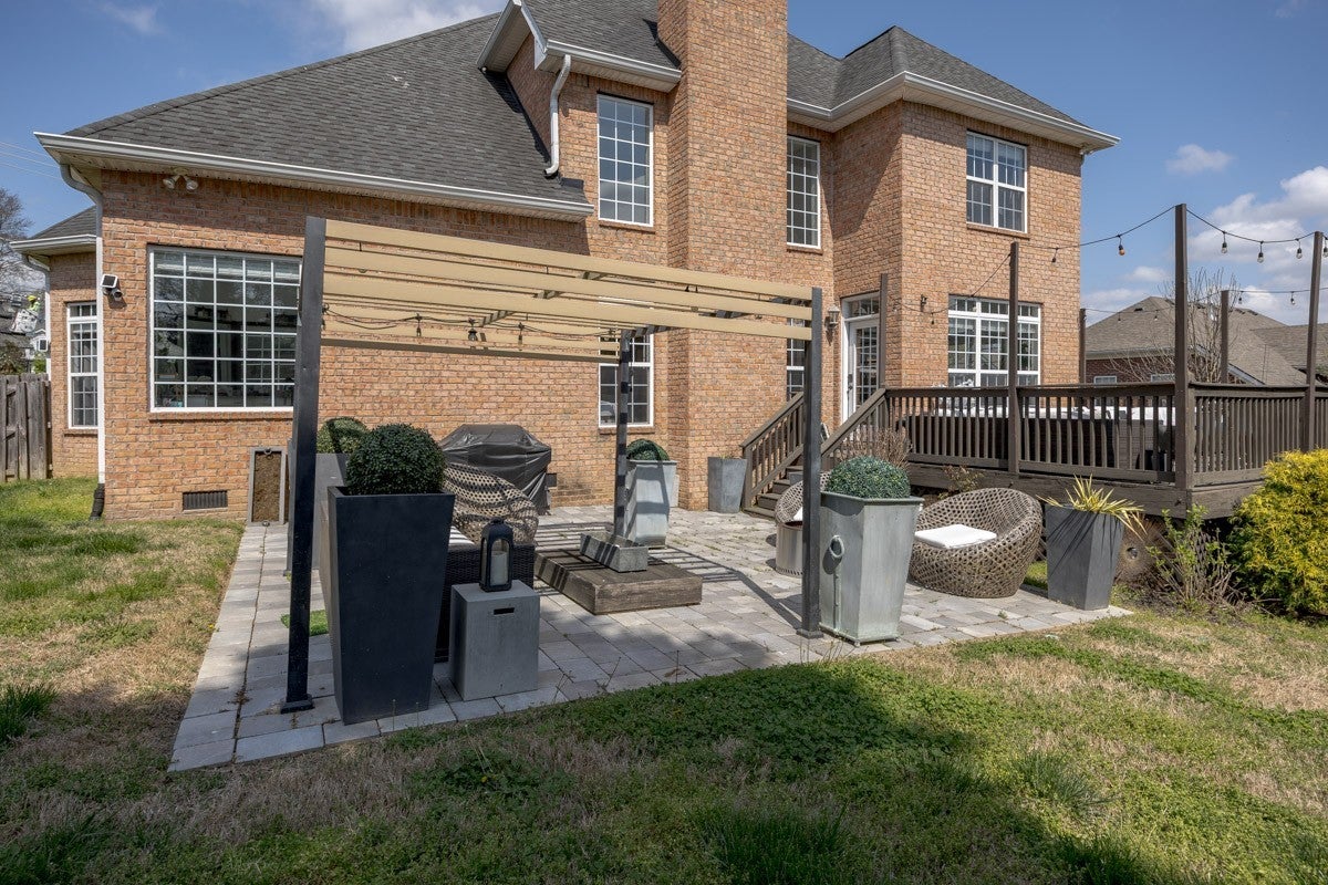 This renovated all-brick home provides an incredible opportunity for a discerning buyer to get into Brentwood Chase subdivision without having to sacrifice luxury touches. Soaring ceilings & sky-high windows mean your livings spaces are open, elegant and filled with light. Kitchen was beautifully renovated in 2023 w/stainless appliances, quartzite countertops, to-ceiling cabinetry, farmhouse sink, & island seating. In 2025 the owner upgraded flooring to all new LVP, freshly painted, upgraded lighting fixtures, added luxury marble-look tile in the primary bath, & added a gorgeous fireplace in the main level primary suite. Four additional bedrooms upstairs, fenced yard, walking distance to Granbery Elementary & neighborhood amenities include pool and playground! Enjoy outdoor living with back deck + paver patio w/pergola. Loads of storage. Easy commute PLUS easy access to all the nearby shopping and dining of Brentwood.