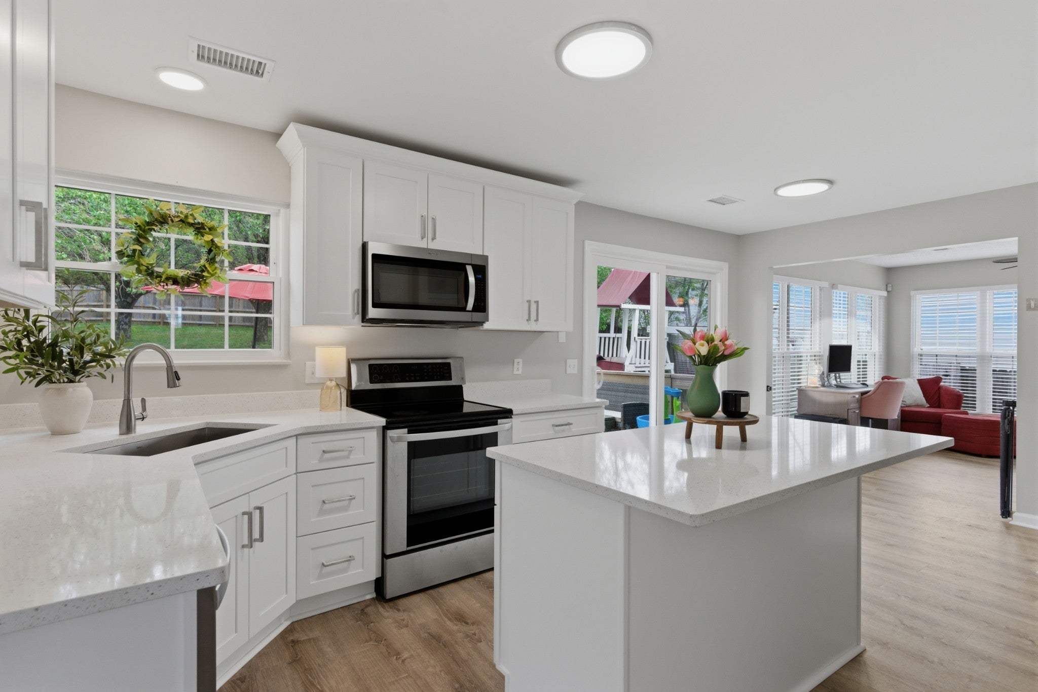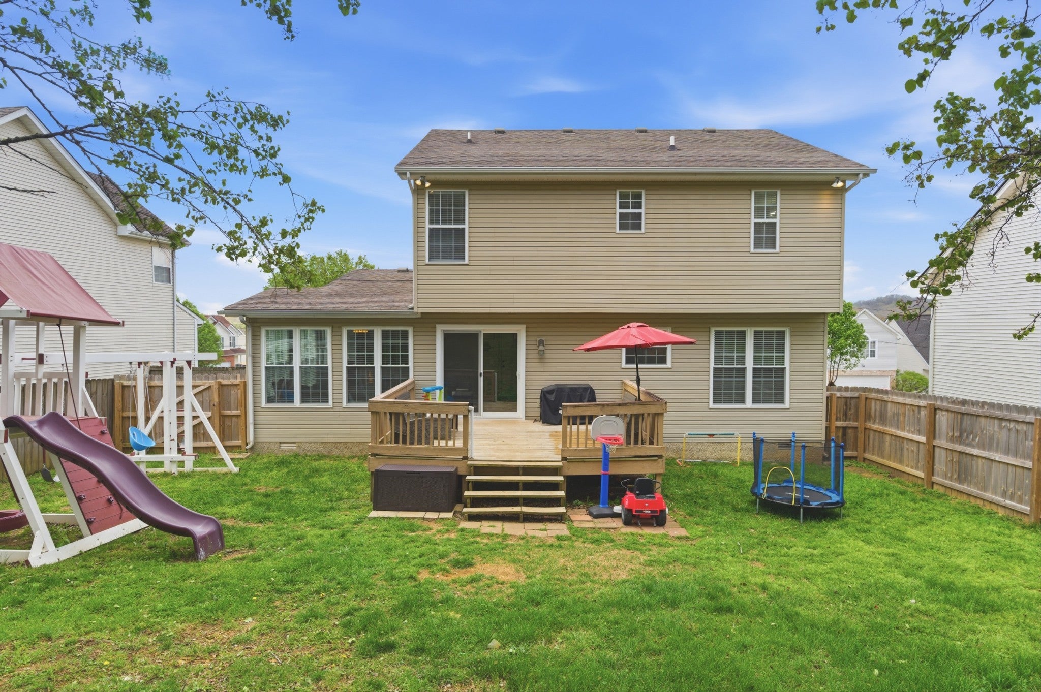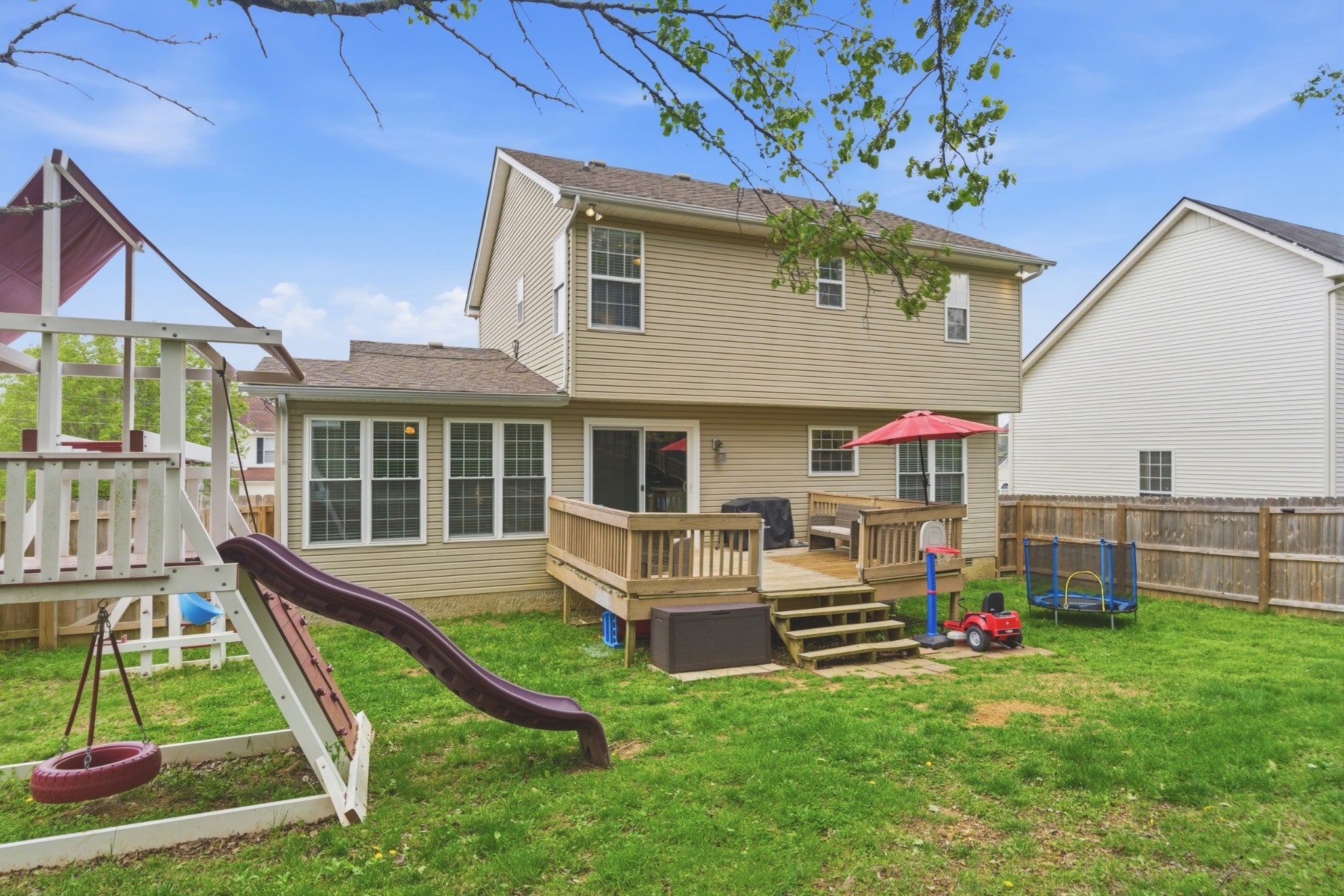 Beautifully renovated home offering modern updates, functional living, and an unbeatable location. This move-in ready property features new plumbing, new HVAC, new flooring, quartz countertops, new soft-close cabinetry, and fresh paint throughout, creating a clean, elevated feel from the moment you walk in. Upstairs, all bedrooms are thoughtfully positioned, along with the convenience of a second-level laundry room. The oversized primary suite serves as a true retreat, complete with a walk-in shower and soaking tub—perfect for relaxing at the end of the day. The home is filled with natural light, enhanced by newer windows, a stunning sunroom, and a new sliding glass door that opens directly to the deck—ideal for entertaining or enjoying your morning coffee. Step outside to a large, fully fenced backyard, backing up to green-space, with plenty of room for pets, play, or gatherings. Ideally located just 20 minutes from Downtown Nashville and near the highly anticipated Rivergate redevelopment. This home offers an easy commute and is centrally located near shopping, dining, and everyday conveniences. Zoned for White House schools! This is a fantastic opportunity to own a fully updated home in one of the area’s fastest-growing locations and sought after school district.