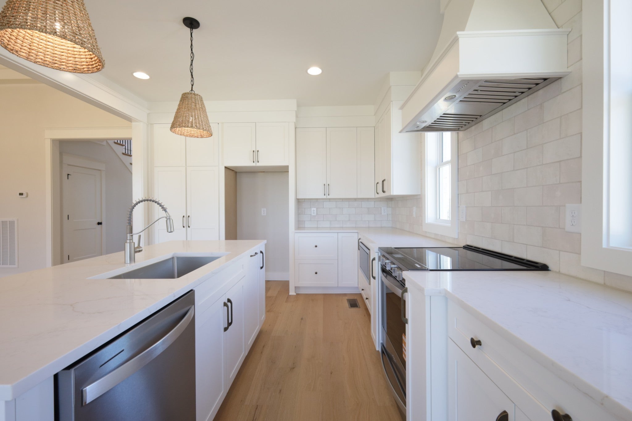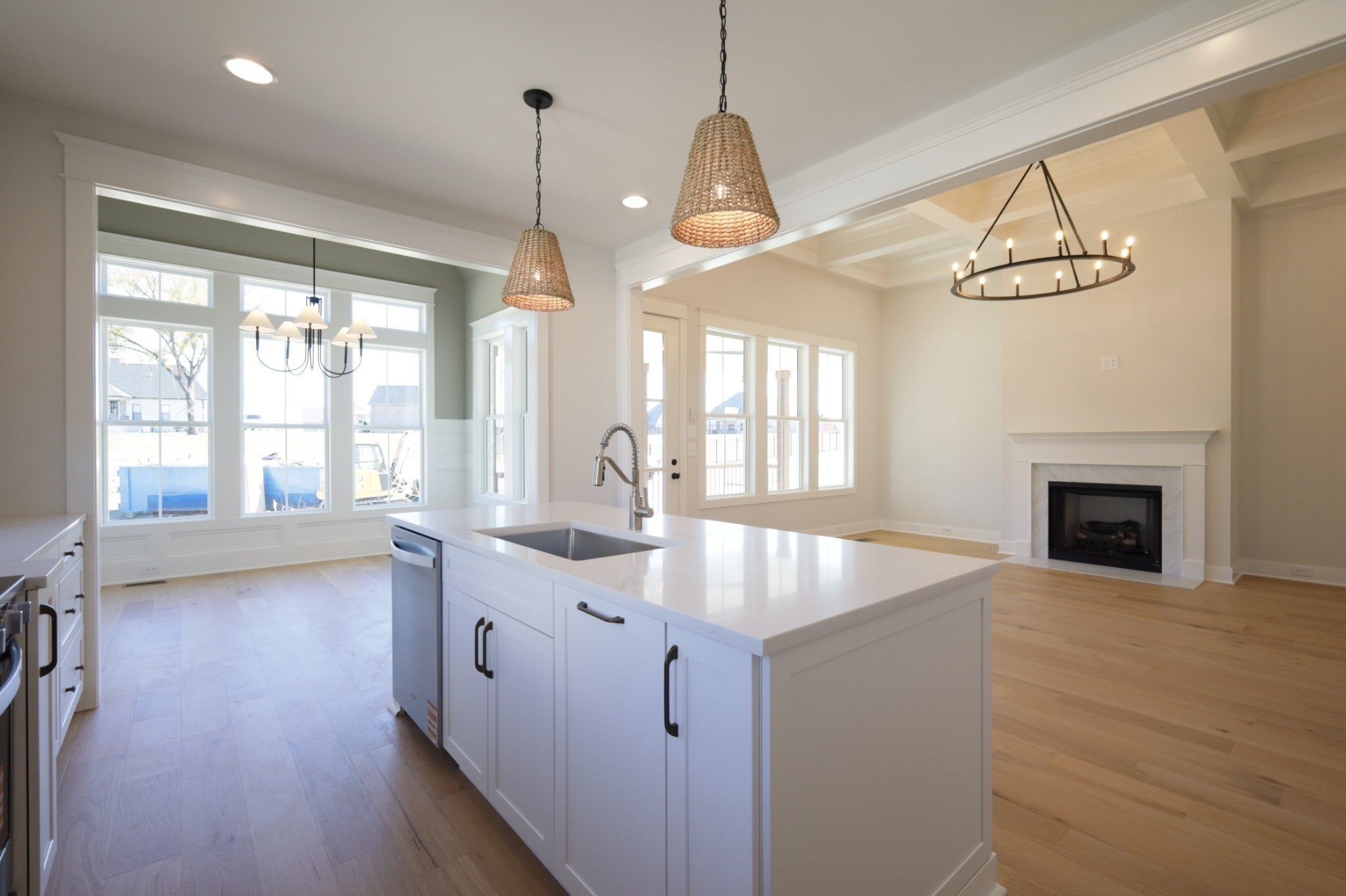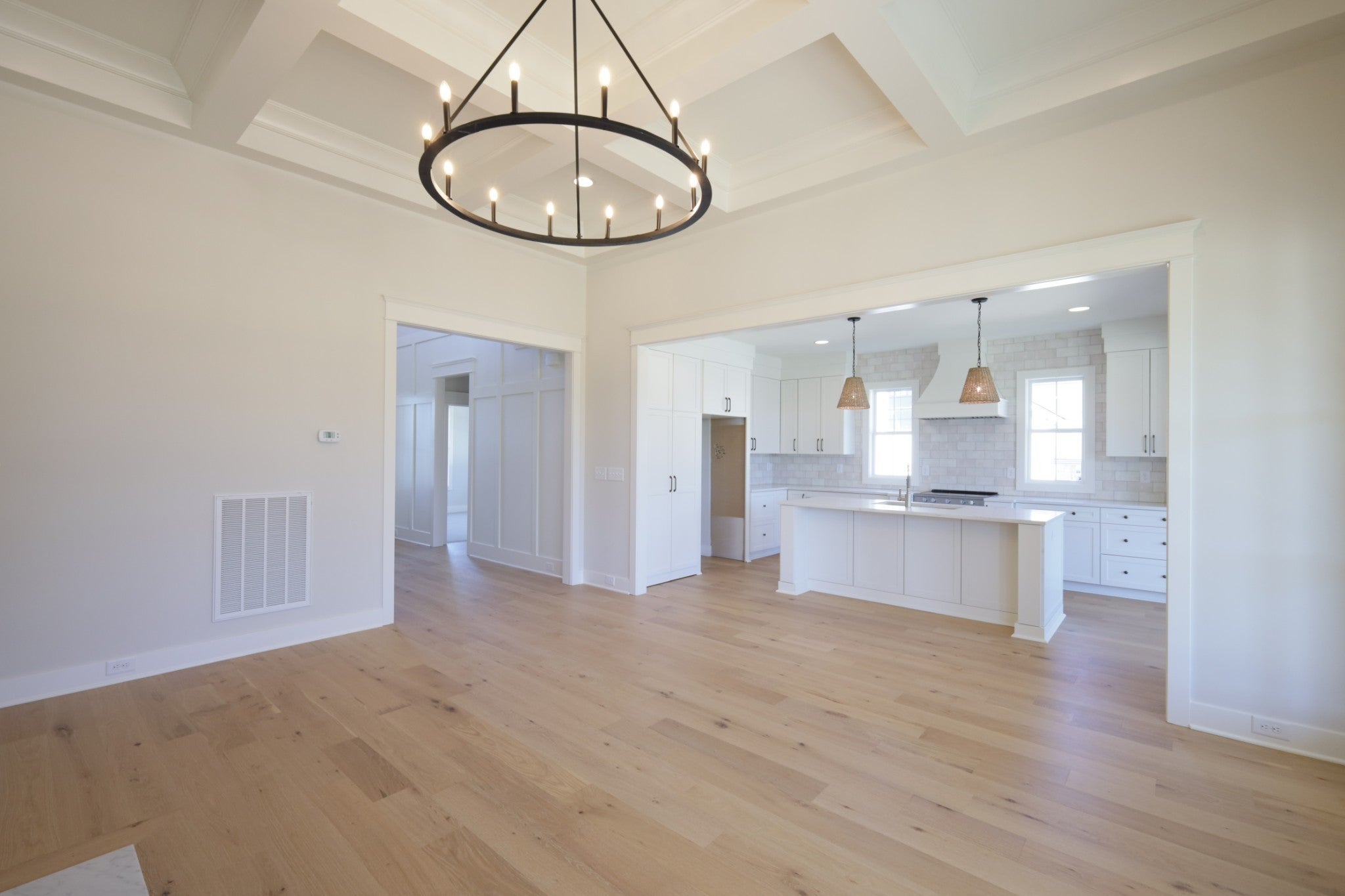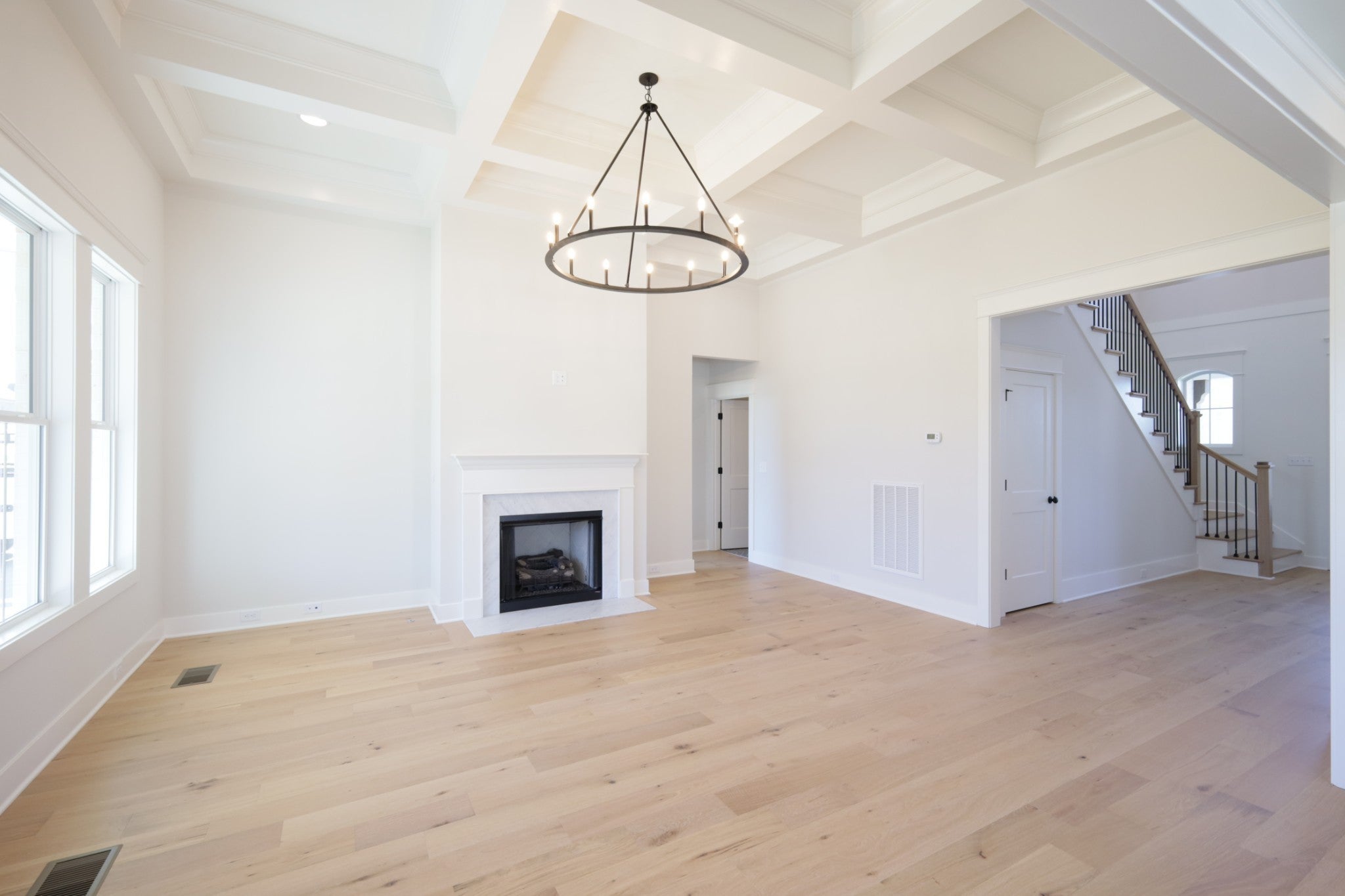 $12,000 toward closing cost and/or rate buy down with Preferred Lender. Exceptional quality construction by R&H Builders - Beautiful brick home with 4 spacious bedrooms, 3 full bathrooms, and a large bonus room. Great lot with extra usable backyard space across the alley. Primary bedroom on the main level with a 10 foot tray ceiling, a custom closet system, and a luxury ensuite with freestanding tub and large walk-in shower. Beautiful designer details: 12-foot-tall coffered ceiling in the family room, wainscoting, deluxe windows, custom cabinets, quartz countertops, hardwood and tile flooring, covered back patio, plus a grand two-story front entryway. Gas fireplace in the family room. Tankless water heater. Premium Encapsulated Crawlspace with Dehumidifier. Carrier HVAC units.