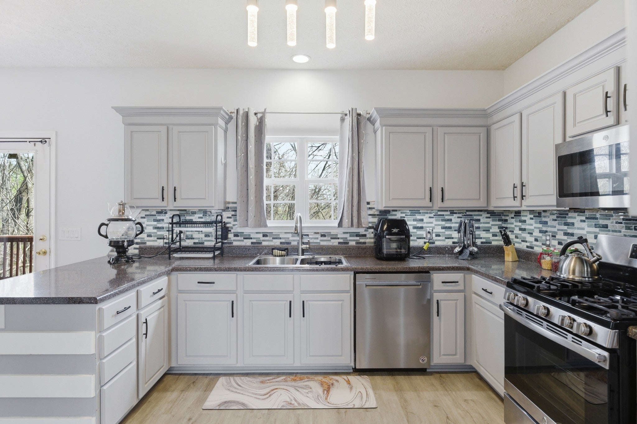 - Gas Oven, Dishwasher, Microwave