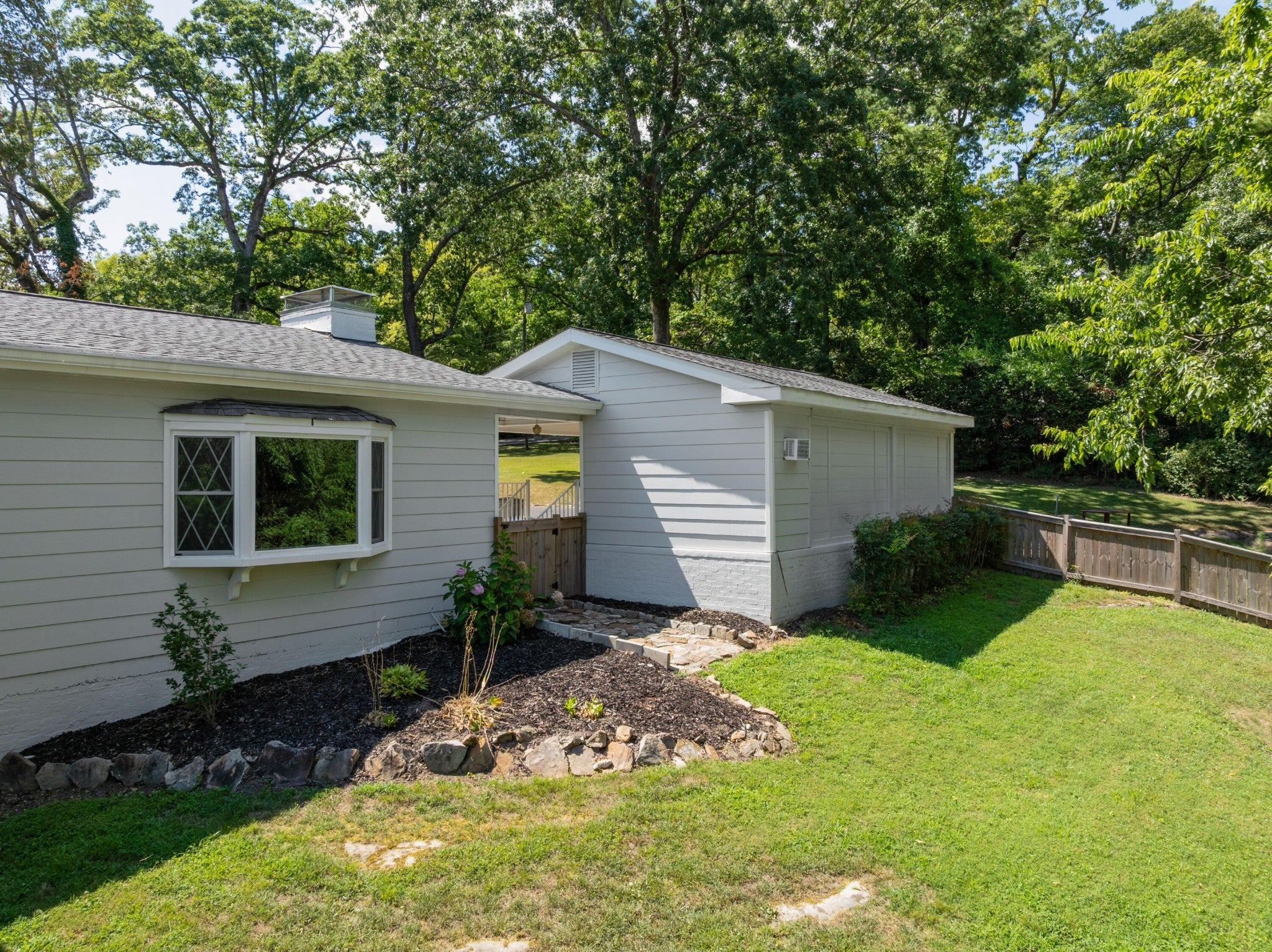Old Towne Cottage on Signal Mountain! One level, 4 bedroom, 3.5 bath home with a brand-new roof on a .74 +/- acre corner lot in the coveted Old Towne area of Signal Mountain just minutes from schools, hospitals, parks, the shopping and restaurants of the North Shore, and downtown Chattanooga. This beautifully updated, yet wonderfully charming 1940's home boasts an open floor plan, both formal and informal living spaces, split bedrooms, great outdoor living spaces, a double carport with coveted storage, a fenced yard area and many recent improvements. The home also has hardwoods and tile throughout, multiple built-ins, arched doorways, all new windows and great natural lighting, updated kitchen and baths, plus newer light fixtures, countertops, hardware, and a desirable neutral decor. Entry to the home is via a covered front porch to a formal dining room which adjoins the living room, but these rooms are versatile and could easily be reversed if preferred. The gourmet kitchen is well-appointed and has weathered granite countertops, tile backsplash, a level breakfast bar with pendant lighting, stainless appliances, built-in pantry storage and is open to the gathering room. The gathering room will quickly become the favorite spot in the house and has a fireplace with built-ins on either side, a wonderful bay window, powder room, access to one of the two patios, and your everyday ingress/egress to the carport. The primary bedroom is spacious and has 2 closets, as well as a private bath with furniture vanity and a shower with tile and glass surround. Two additional bedrooms are connected via a shared bath, while the 4th bedroom has the use of a full hall bath. If additional storage is needed, there is extra room in the unfinished basement and in the carport. Situated on a desirable corner lot, there is a fenced area for pets, a swing set and plenty of room for outdoor fun. Simply a fantastic opportunity for the buyer seeking a one-level home in a desirable location and