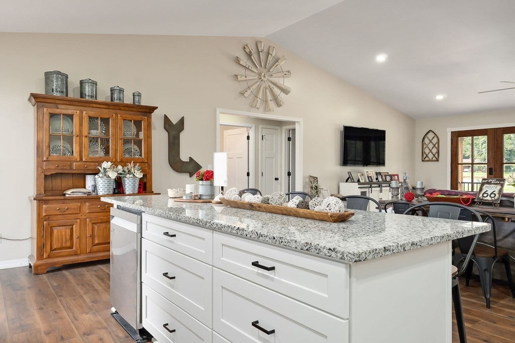 Discover your dream home with this stunning 3-bedroom, 2-bathroom brick house that combines style, comfort, and functionality. Nestled on a spacious corner lot, this residence features an open living split floor plan that enhances entertaining and daily family life, with the primary bedroom suite separated from additional bedrooms for privacy. Perfect for hobbyists, the detached workshop garage offers versatile space separate from the main house. The gourmet kitchen is a chef's delight, boasting granite countertops, a gas range, and sleek stainless steel appliances. Additional thoughtful extras include a large laundry room for all your storage needs. Located just outside the city, this property offers tranquility with easy access to shopping, dining, and entertainment. This brick home is a rare find, blending modern amenities and classic charm to meet your needs and exceed expectations, making everyday living a joy Addendum: HOT TUB DOES NOT CONVEY