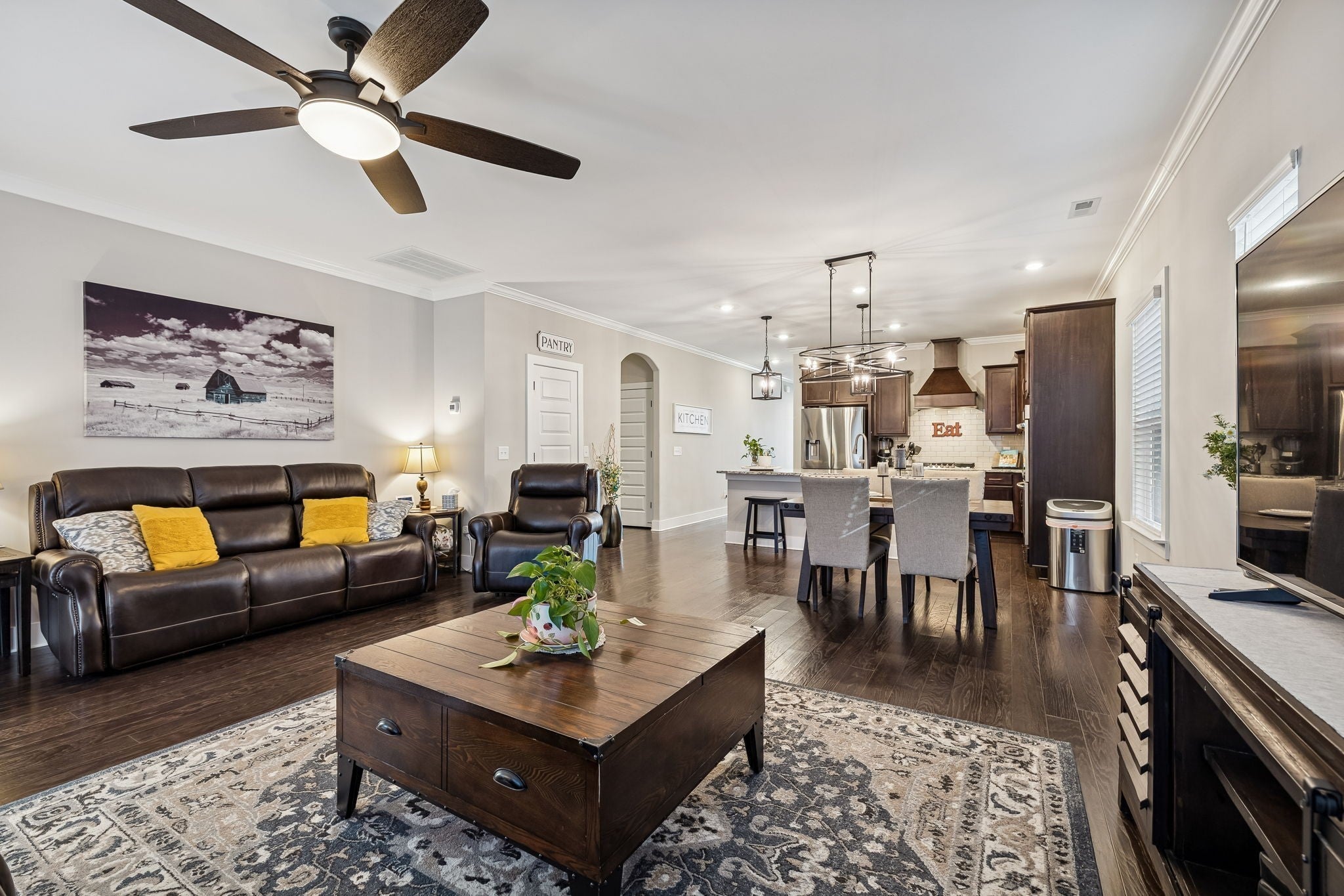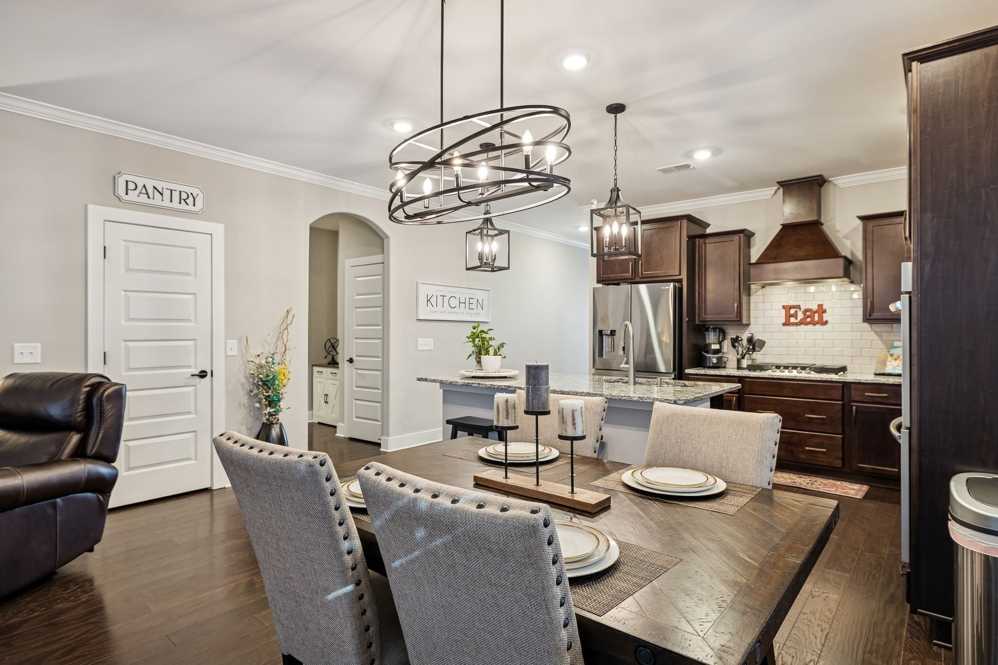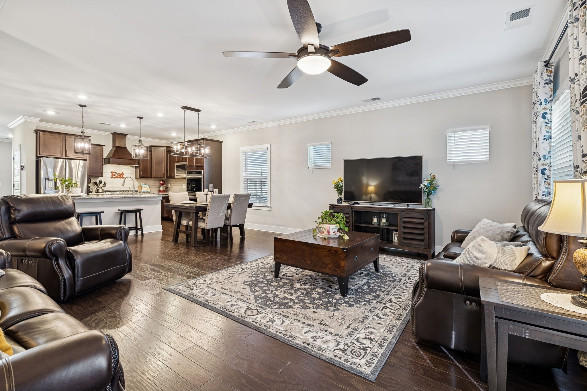 Enjoy owning this Richland floorplan with nearly 2,600 sq ft with 4 spacious bedrooms and 2.5 baths with a thoughtfully designed layout. Step inside to a wide entry foyer leading into an open-concept living space perfect for everyday living and entertaining. The kitchen features granite countertops, a large island, double ovens, 5-burner gas cooktop, tiled backsplash, custom cabinetry with soft-close drawers, and a pantry. The dining area flows seamlessly into the large living room, creating an ideal gathering space. A separate utility room includes tiled flooring, shelving, and a fold-down drying rack. The main-level owner’s suite offers a large walk-in closet, double granite vanities, soaking tub, and separate shower. Secondary bedrooms are generously sized and all include walk-in closets. The bonus room provides excellent flex space along with walk-in attic storage. Enjoy outdoor living in the fully fenced backyard with covered patio. A new playground is being constructed in the common area directly across the street, and the pool, clubhouse, and fitness center are just steps away. Prime location with easy access to Hwy 386 and I-65 for a smooth Nashville commute. Minutes to new local retail and Old Hickory Lake. Zoned for Station Camp Schools!