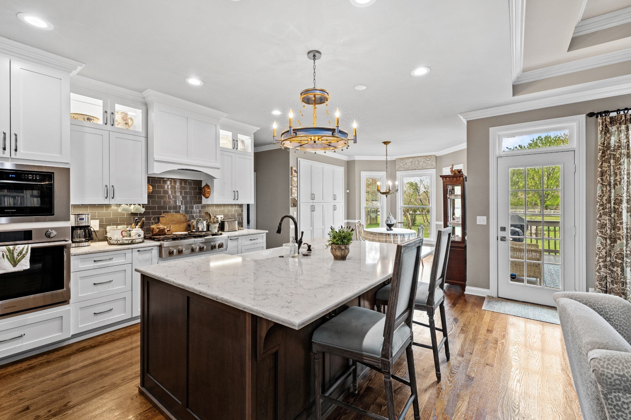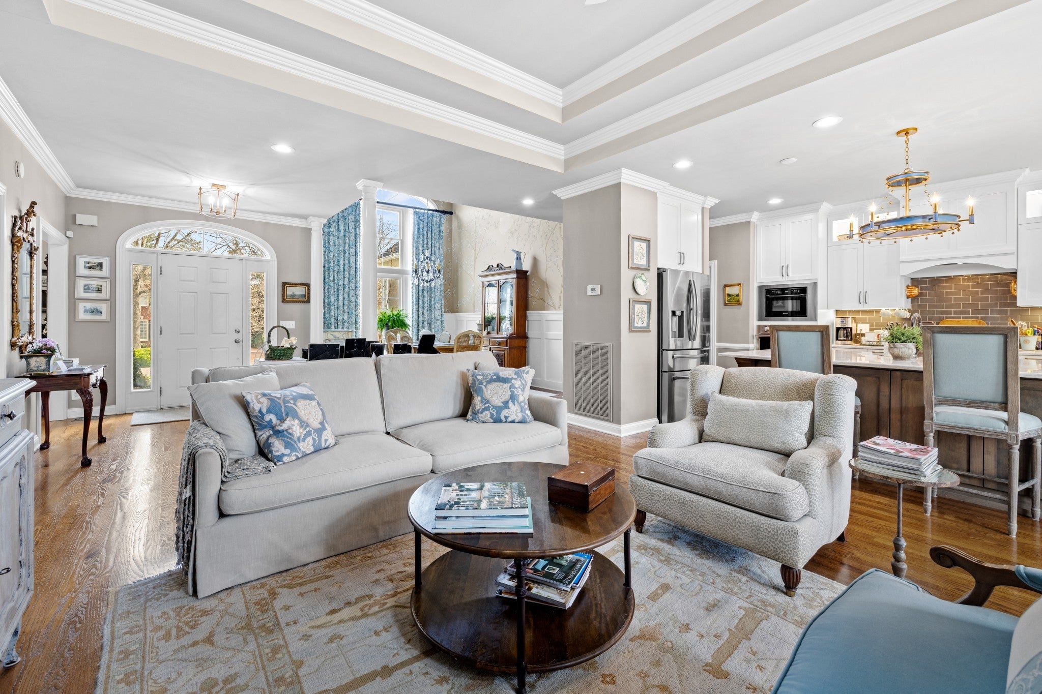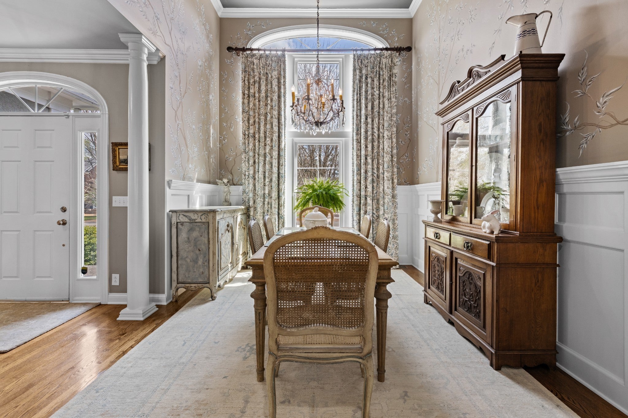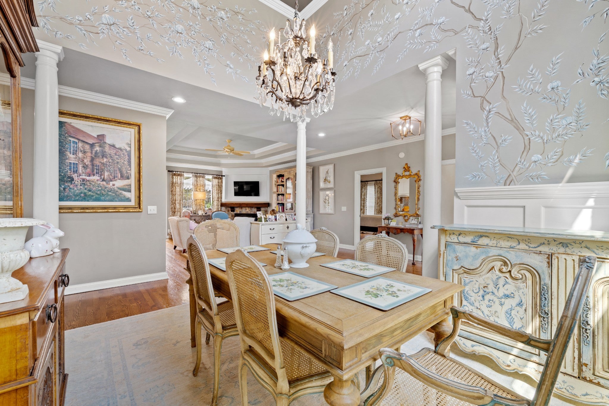 Welcome home! From the EUROPEAN FLAIR of the exterior architecture to the detailed trim work in the light-filled interior, this home shows pride of ownership. The chef’s kitchen features abundant cabinetry and a large custom island with additional storage. Quartzite countertops for easy cleanup, pull-out drawers for pots and pans, stainless steel appliances include a Kitchen-Aid gas cooktop w 6-burners, refrigerator, oven, microwave and new Bosch dishwasher. The dining room boasts a 14 foot ceiling along with wainscoting and a stunning chinoiserie MURAL painted by a local artist. A separate office with custom built-in bookcases and family room with gas fireplace allows both work and relaxation. As the evening winds down, retreat to the large owner’s suite featuring new hardwoods and tray ceiling in addition to a fully renovated master bath. A luxurious marble shower, soaking tub, dual vanities, wainscoting and crystal chandelier complete this oasis. The owner’s suite is located on one side of the home, while two bedrooms and bathroom are located on the opposite side of the home offering quiet solitude. The second full bathroom is also newly renovated with honed marble flooring, wainscoting and Danika Herrick wallpaper. An upstairs bonus room with new carpet and freshly painted, can be used as a 4th bedroom, media room, gym or family hang-out. You can also reach the walk-up attic from this space. Other recent improvements include newly painted deck (2026); new windows (2024); carpeting (2024); landscaping and lawn (2024); exterior paint (2022); new roof (2021); and 6 inch gutters (2021). The lush lawn, new landscaping and fire pit invite you to enjoy the outdoors. The full irrigation system includes replaced sprinkler heads and new WiFi control panel/timer. This location is a hidden gem, on a cul-de-sac, and just 7 minutes to downtown Franklin and 10 minutes to I-65 and Cool Springs. A truly move in ready home with all of the fruit. This one is LIKE NO OTHER!