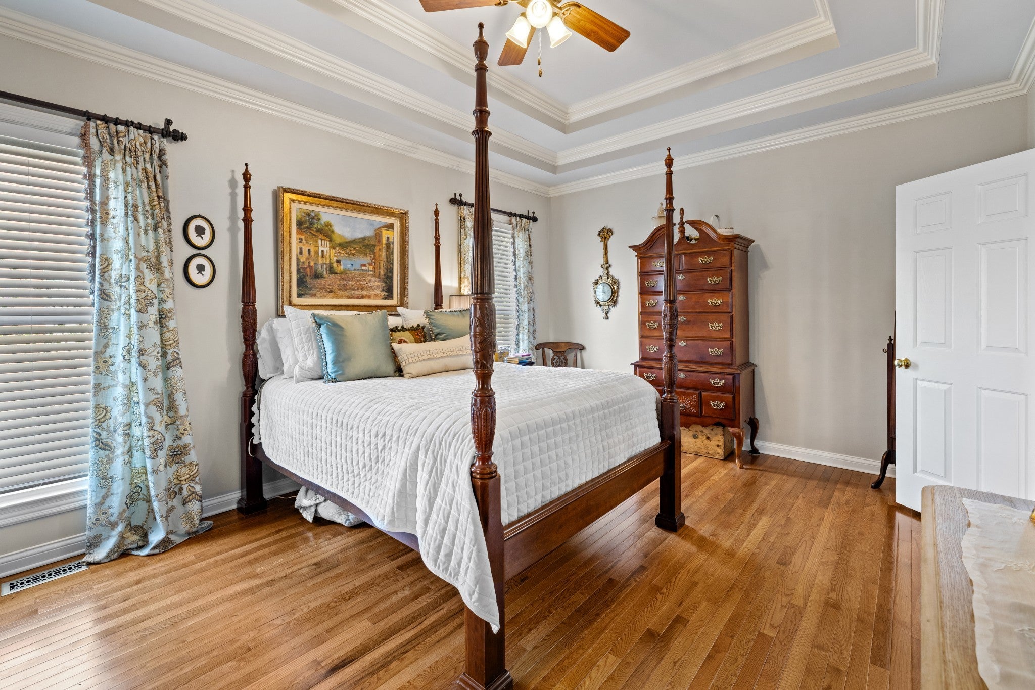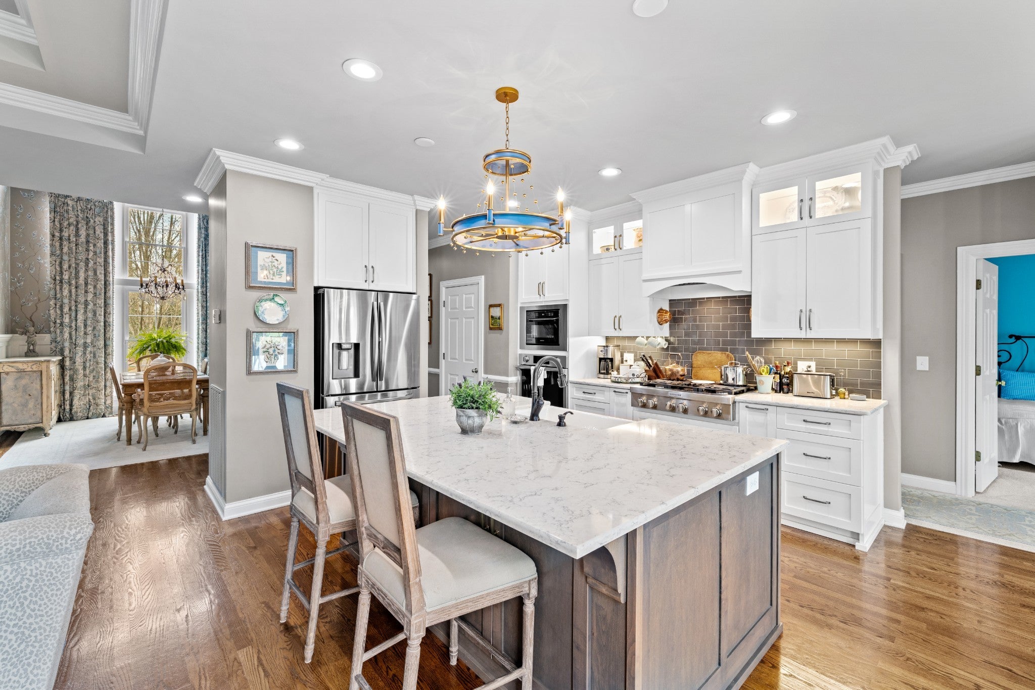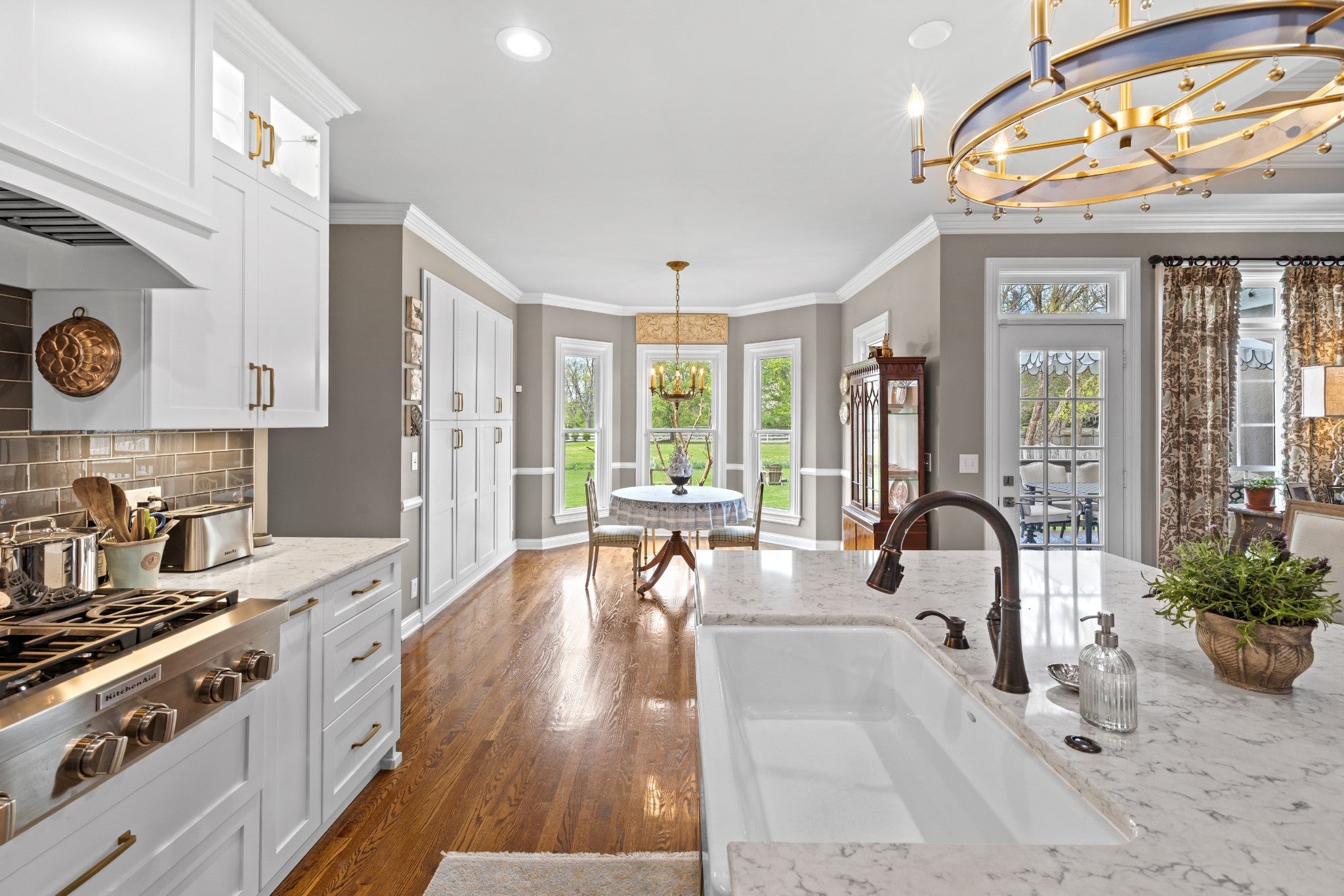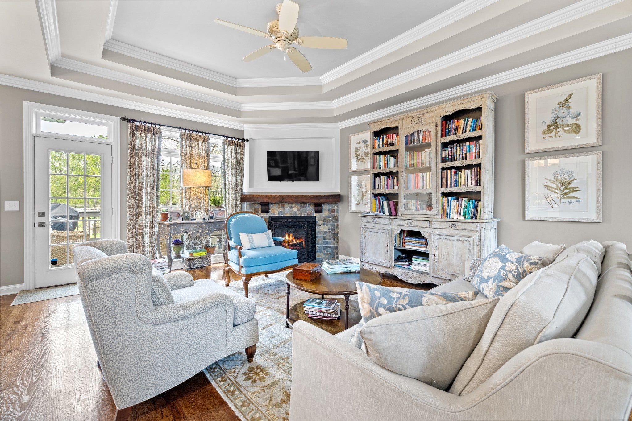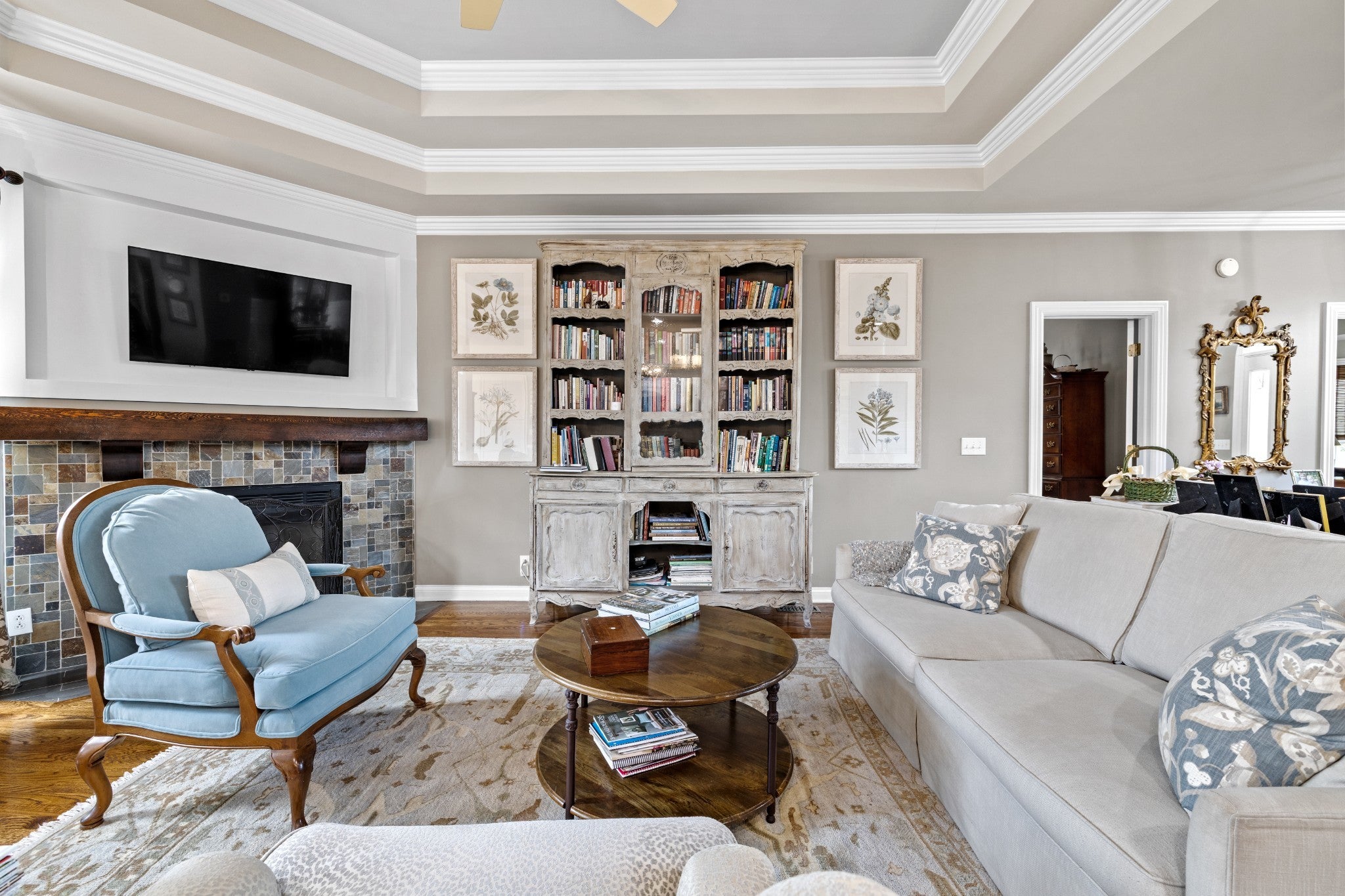 Welcome home! From the EUROPEAN FLAIR of the exterior architecture to the detailed trim work in the light-filled interior, this home shows pride of ownership. The chef’s kitchen features abundant cabinetry and a large custom island with additional storage. Quartzite countertops for easy cleanup, pull-out drawers for pots and pans, stainless steel appliances include a Kitchen-Aid gas cooktop w 6-burners, refrigerator, oven, microwave and new Bosch dishwasher. The dining room boasts a 14 foot ceiling along with wainscoting and a stunning chinoiserie MURAL painted by a local artist. A separate office with custom built-in bookcases and family room with gas fireplace allows both work and relaxation. As the evening winds down, retreat to the large owner’s suite featuring new hardwoods and tray ceiling in addition to a fully renovated master bath. A luxurious marble shower, soaking tub, dual vanities, wainscoting and crystal chandelier complete this oasis. The owner’s suite is located on one side of the home, while two bedrooms and bathroom are located on the opposite side of the home offering quiet solitude. The second full bathroom is also newly renovated with honed marble flooring, wainscoting and Danika Herrick wallpaper. An upstairs bonus room with new carpet and freshly painted, can be used as a 4th bedroom, media room, gym or family hang-out. You can also reach the walk-up attic from this space. Other recent improvements include newly painted deck (2026); new windows (2024); carpeting (2024); landscaping and lawn (2024); exterior paint (2022); new roof (2021); and 6 inch gutters (2021). The lush lawn, new landscaping and fire pit invite you to enjoy the outdoors. The full irrigation system includes replaced sprinkler heads and new WiFi control panel/timer. This location is a hidden gem, on a cul-de-sac, and just 7 minutes to downtown Franklin and 10 minutes to I-65 and Cool Springs. A truly move in ready home with all of the fruit. This one is LIKE NO OTHER!