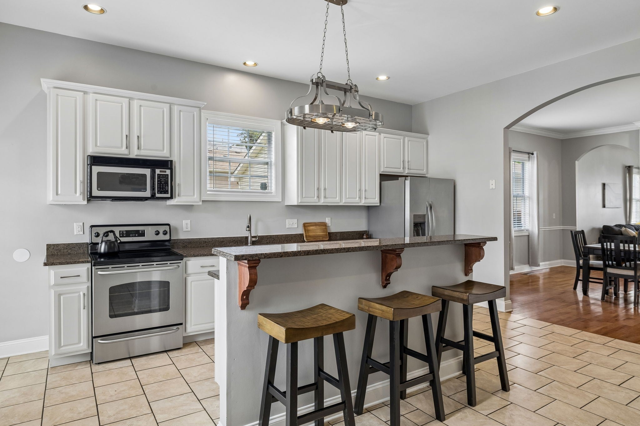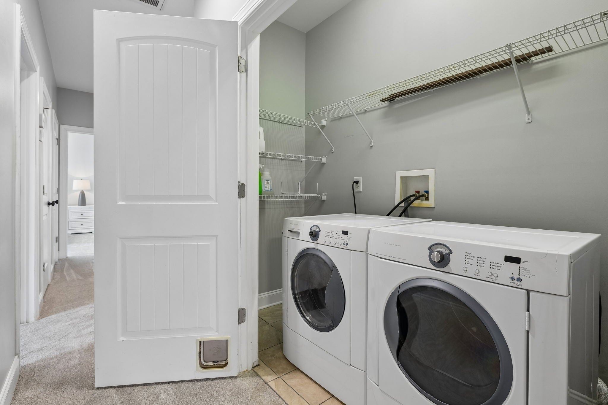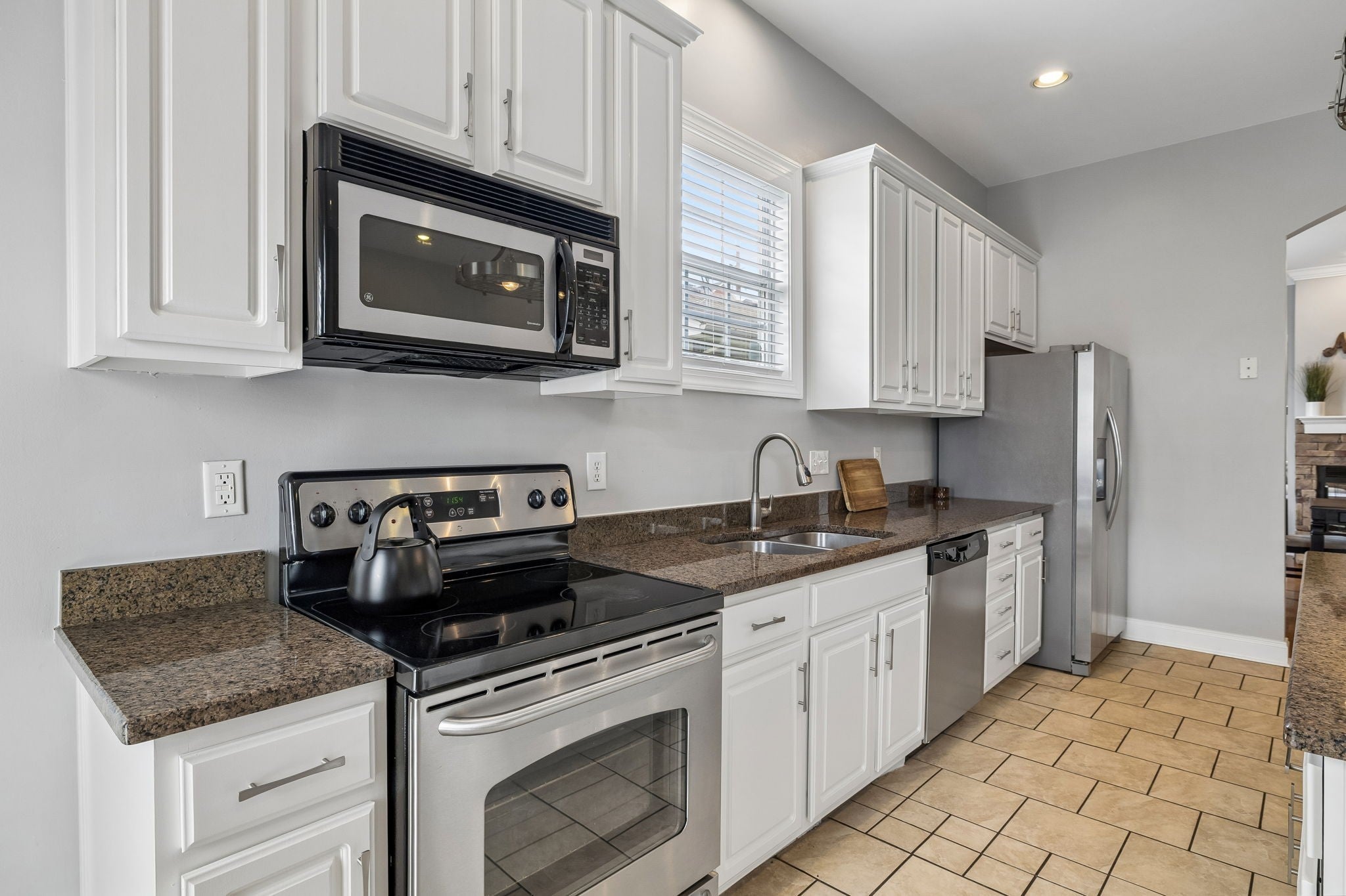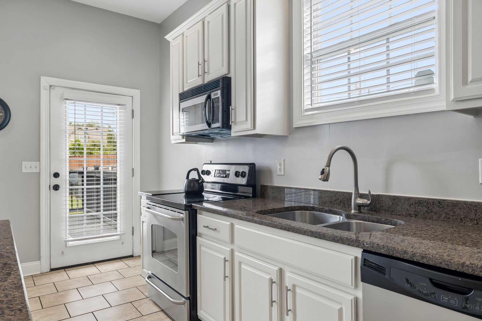 - Electric Range, Dishwasher, Disposal, Dryer, Microwave, Refrigerator, Stainless Steel Appliance(s), Washer