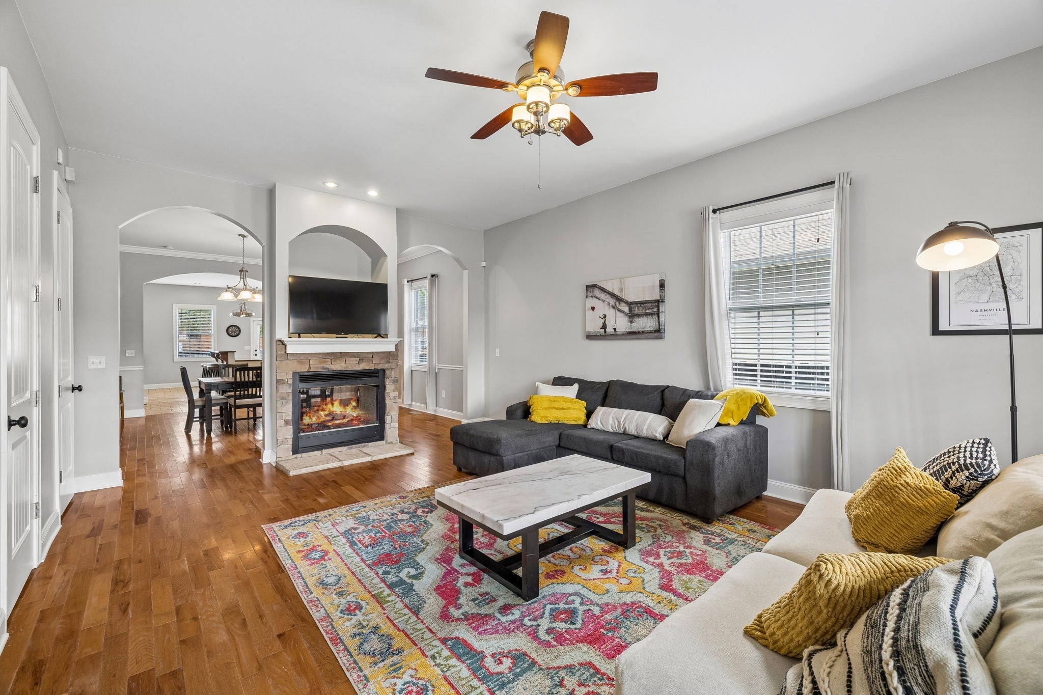 Welcome to your East Nashville retreat—where space, style, and skyline views come together. This spacious 3-bedroom, 2.5-bath townhome features brand new carpet and views of downtown Nashville from your back porch, offering the perfect blend of comfort and convenience. Located within walking distance to Five Points, Turnip Truck, Bar Taco, The Basement East, and Nissan Stadium, you can enjoy some of East Nashville’s best dining, entertainment, and convenience. Inside, you’ll find high ceilings and an open floor plan designed for both relaxing and entertaining. The living and dining areas are anchored by a cozy gas fireplace, while large windows bring in natural light. The kitchen offers ample workspace, a breakfast area, and an easy flow for everyday living or hosting. Upstairs, three generously sized bedrooms provide flexibility for guests, family, or a home office. Step out onto the back deck to unwind and take in the downtown skyline—perfect for morning coffee or evening relaxation. Proven income producing property as a long-term and mid-term rental.