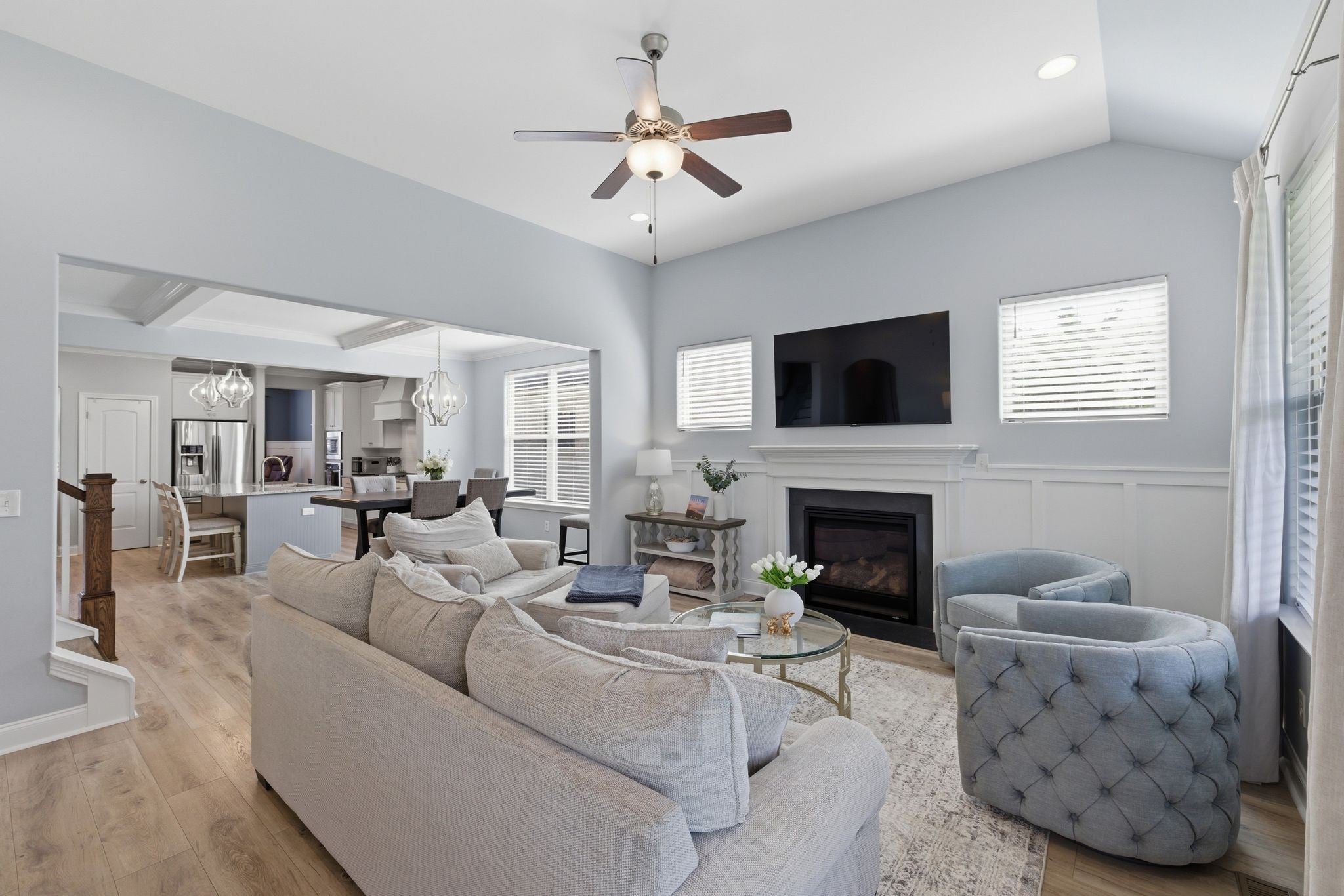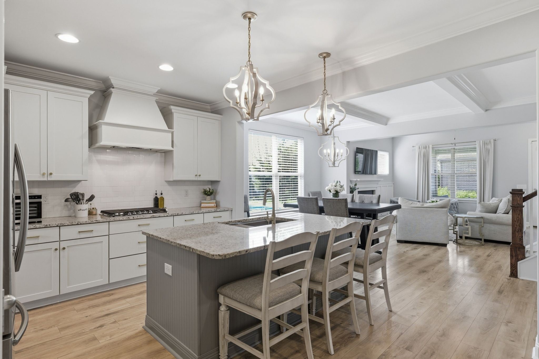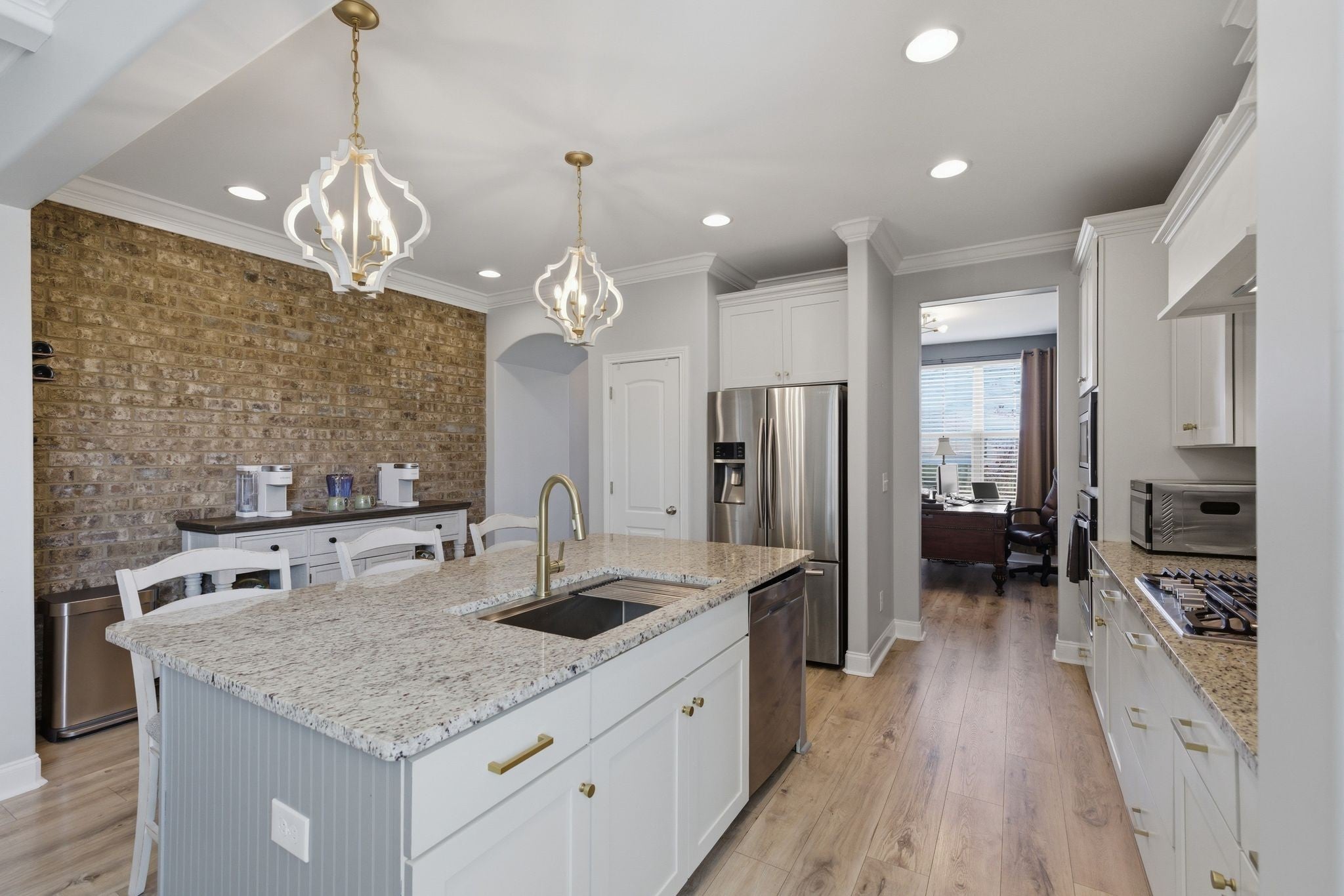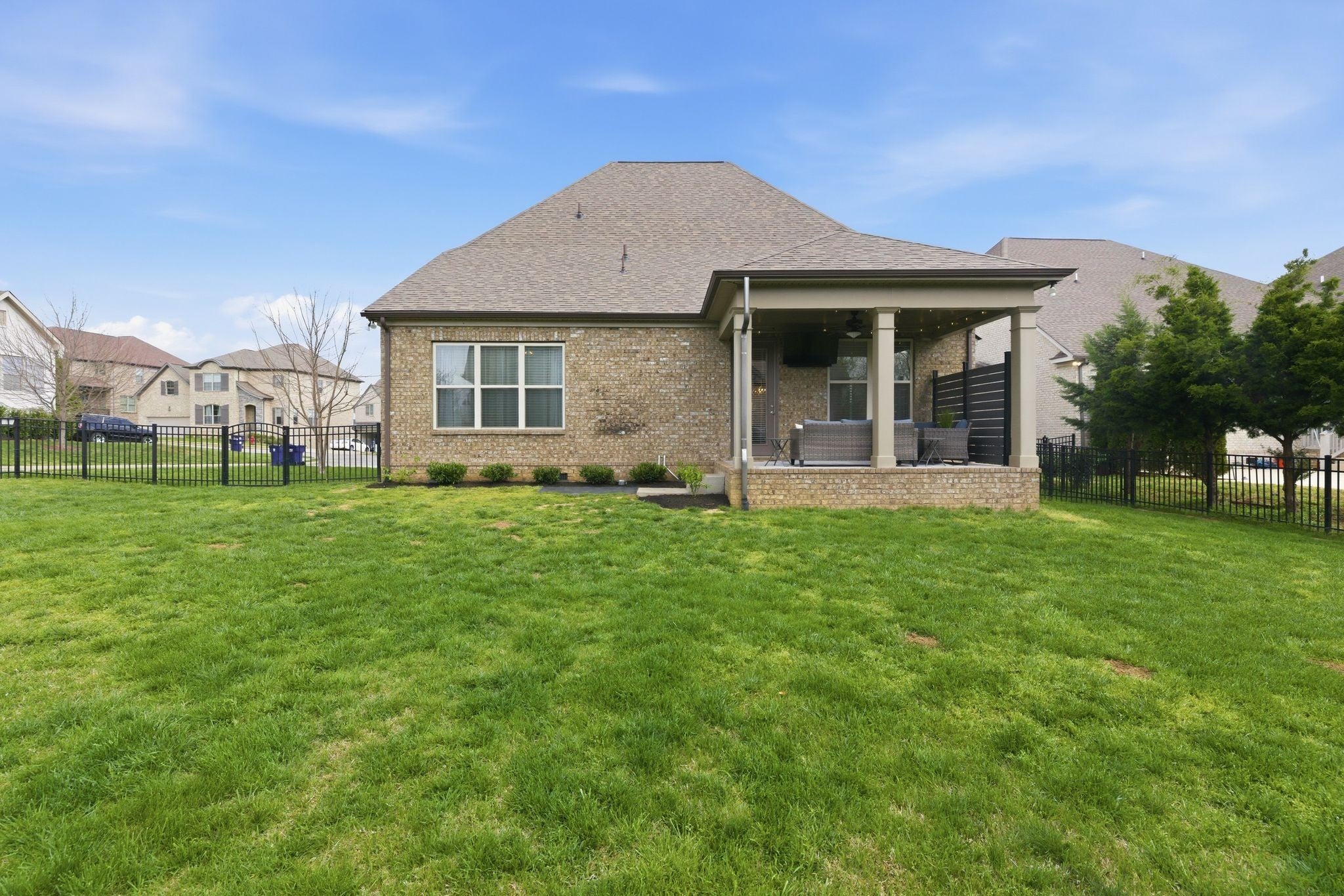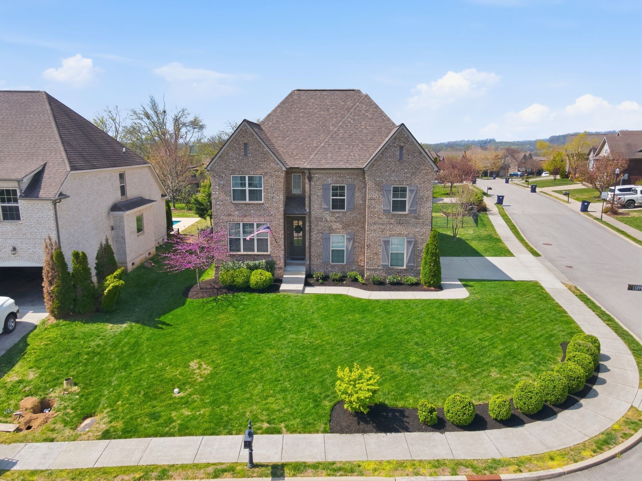 Welcome home! This beautifully designed 3,040+ sq ft brick home in the sought-after Canterbury community of Thompsons Station, is where thoughtful design meets everyday comfort and an active neighborhood lifestyle. Located on a corner lot, in a cul-de-sac, this home boasts of a spacious side-entry garage and premium location within the neighborhood. New roof was installed in February 2026. Inside, the open and airy floor plan creates an effortless flow for both daily living and entertaining. The main-level primary suite offers a private retreat, complete with a spacious walk-in closet, dual vanities, a relaxing garden tub, and separate shower. The heart of the home is a well-appointed chef’s kitchen featuring a gas cooktop with vent hood, granite countertops, generous pantry storage, and abundant prep space. Upstairs, a versatile bonus room provides flexible space for entertainment, a home office, media room, or playroom, complemented by three additional bedrooms and two full baths—ideal for growing households or guests. Step outside to enjoy the covered patio and fenced backyard, perfectly suited for entertaining, relaxing evenings, or weekend cookouts. Living in Canterbury means more than owning a home—it’s about enjoying a connected, amenity-rich lifestyle. Residents have access to two community swimming pools, a shared clubhouse, multiple playgrounds, and scenic walking trails that lead directly to a state-of-the-art dog park. The neighborhood also features recreational courts and is conveniently located near top-rated schools, shopping, and dining.