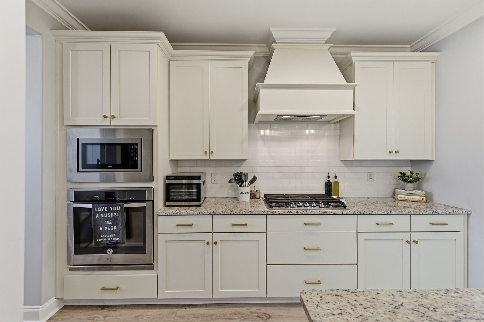 - Built-In Electric Oven, Cooktop, Dishwasher, Microwave, Stainless Steel Appliance(s)
