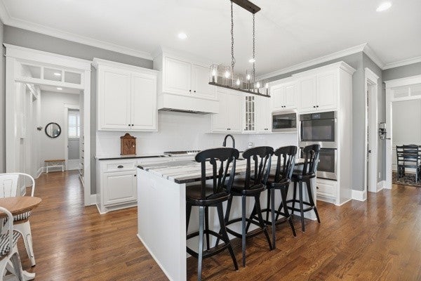 - Double Oven, Built-In Gas Range, Dishwasher, Disposal, Microwave