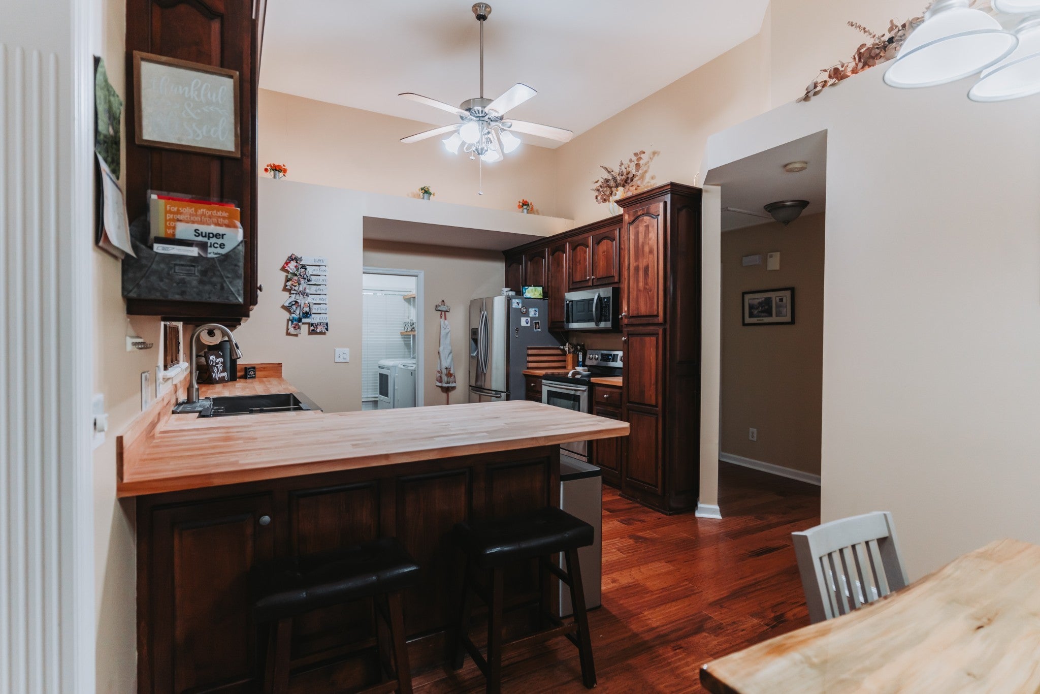 - Electric Oven, Electric Range, Dishwasher, Disposal, Dryer, Microwave, Refrigerator, Stainless Steel Appliance(s), Washer